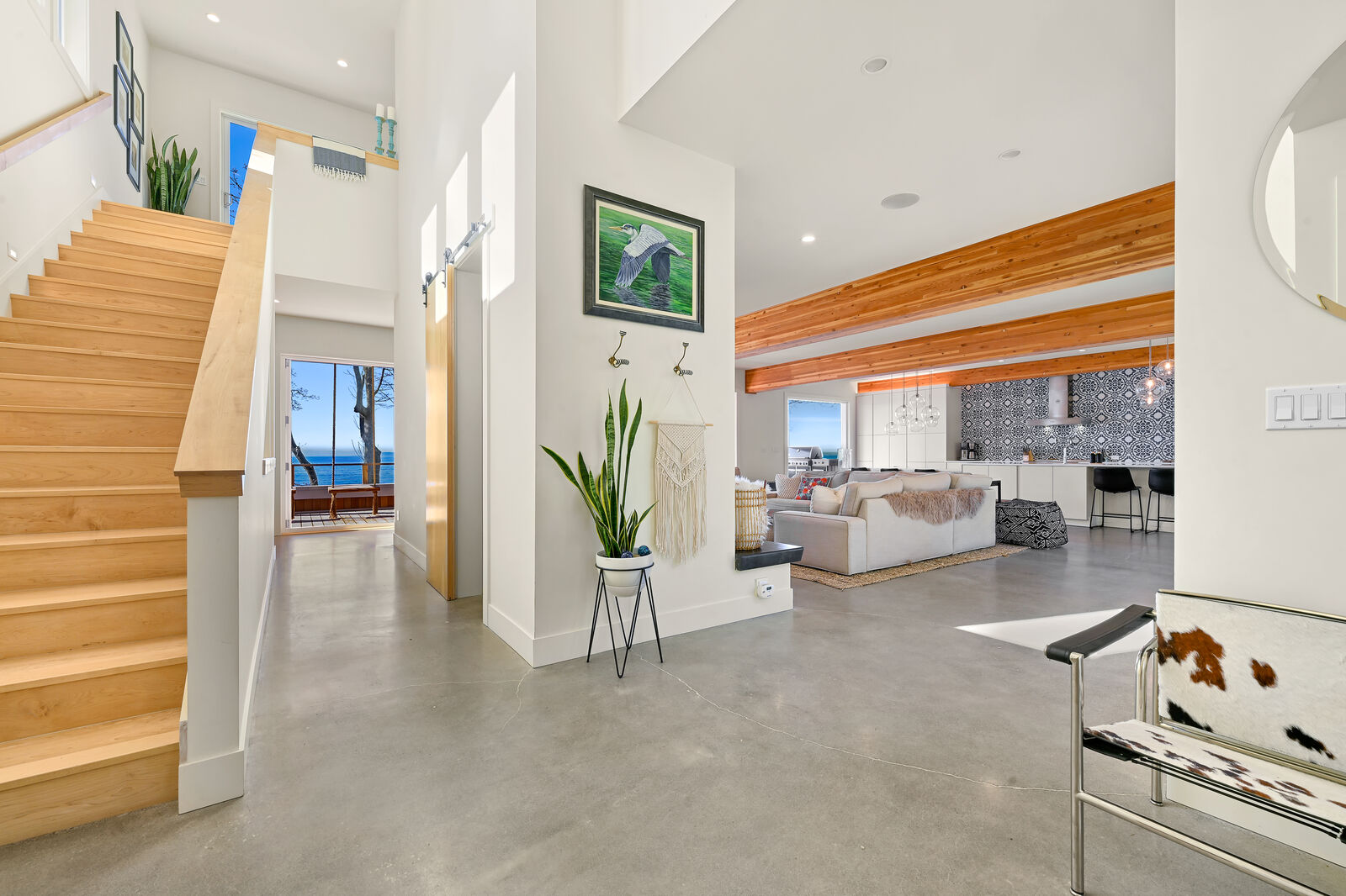 THE EPITOME OF COASTAL BEACHFRONT LUXURY! This highly detailed contemporary waterfront custom home with an inspiring design, immerses you in a world of breathtaking ocean views of the San Juan & Gulf islands. Tucked away at the end of a quiet lane & only steps from your privately owned beach, this home is truly extraordinary. Hear the sounds & smells of the ocean with open walls of folding glass from a massive great room, a penthouse primary suite, plus 3 additional bedrooms with ensuite baths. Other features include, 2,500 sqft of decks & patios flooded with sun & a detached 3 car garage. A stone’s throw from Semiahmoo resort & two world class golf courses. Rarely available, always treasured - A LEGACY HOME FOR GENERATIONS TO ENJOY!