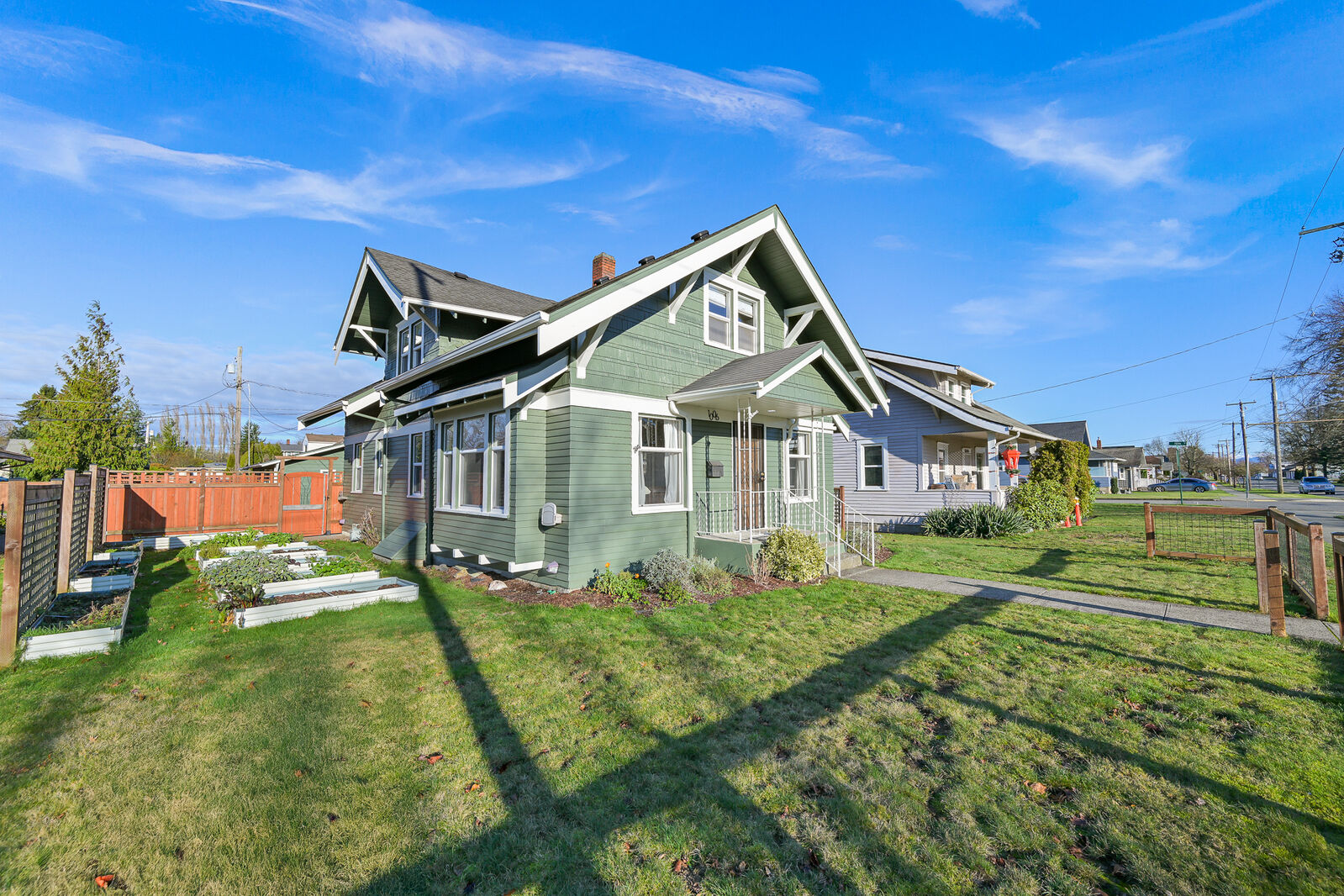 Charming, remodeled historic home on a level lot with 1,600+ sq ft of light-filled living space. This 4-bedroom home features a primary suite on the main and blends modern updates with timeless character - remodeled kitchen and bath, updated plumbing and electrical, tankless hot water heater, ductless mini splits, newer windows plus original built-ins, hardwood floors and beautiful trim work. Enjoy a fenced backyard with multiple garden beds, a chicken coop, and a beautiful cherry tree. Heated alley-access garage offers potential for an ADU or home office. Located in an amazing central Lynden neighborhood just steps to downtown, the new Schoolyard park and the Jim Kaemingk Sr. trail!