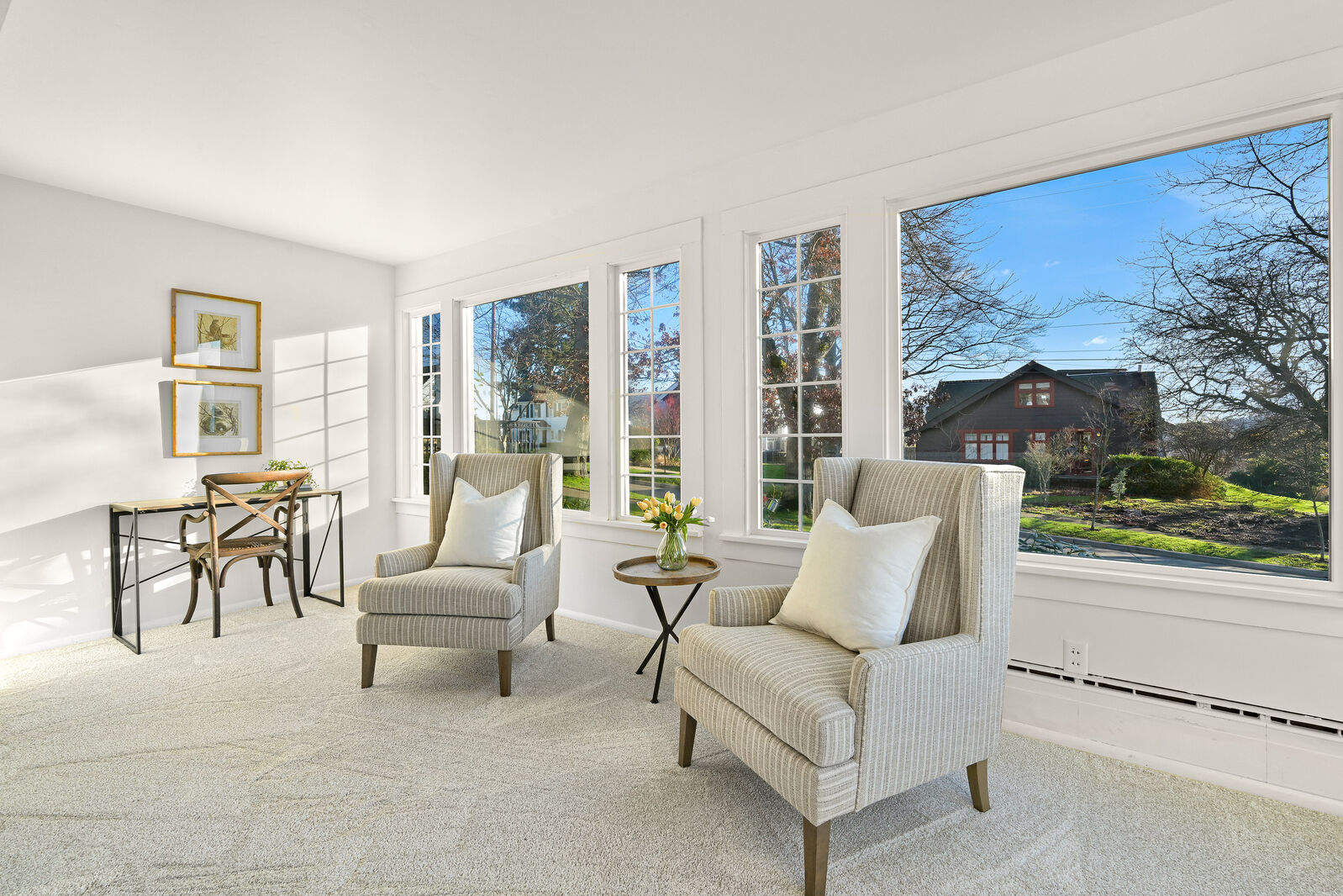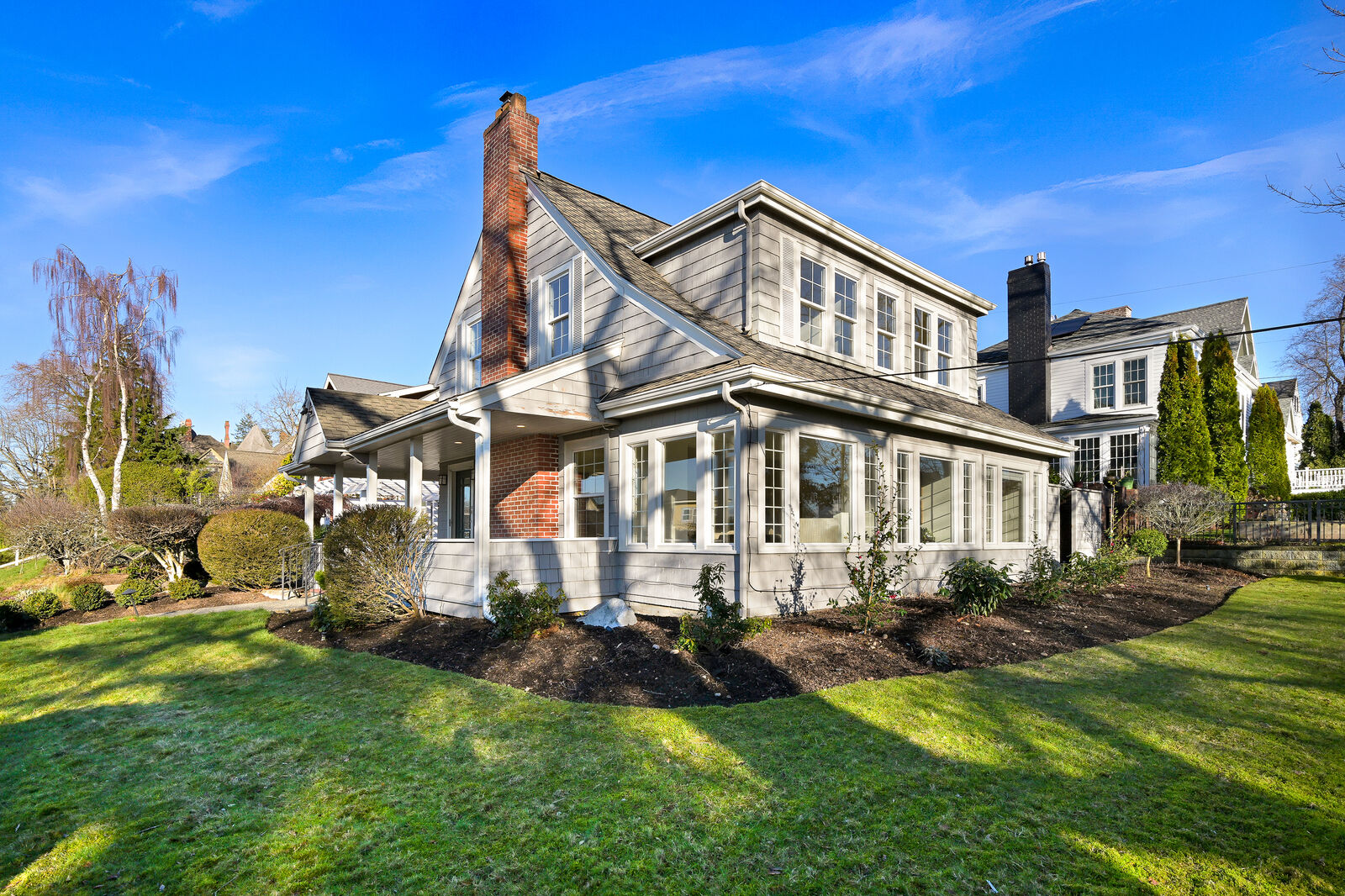 Classic 1923 South Hill home with Nantucket charm and partial bay views that's as welcoming as it is timeless. This cared for home has been in the same ownership for over 55 years and is located in one of Bellingham’s most sought-after neighborhoods. It features 3 bedrooms, 3 baths with nearly 2,200 square feet of character and is flooded with South and West facing natural light. The living room flows seamlessly into a sun-filled sunroom wrapped in windows, creating a bright, inviting space to relax or entertain. Off the dining room double doors lead to a charming nook framed by large windows, perfect for a café table, home office or reading corner. The kitchen features hardwood floors with easy access to a cozy tiled back patio. A comfortable family room anchored by a brick fireplace provides a retreat at the end of the day, while the adjacent laundry room includes a built-in desk area for added functionality. Upstairs, all three bedrooms are thoughtfully placed, along with a full bath and an additional half bath. Outside, a large, covered porch wraps around and connects to a patio with a picturesque trellis that's surrounded by mature landscaping offering privacy and year-round beauty. This is South Hill living at its best, walkable to Fairhaven, and close to everything that makes Bellingham feel like home.