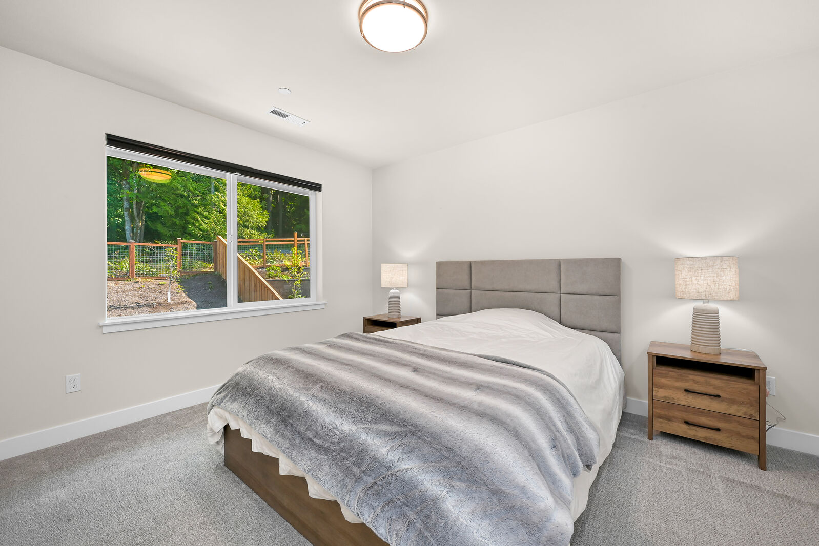Desirable Skeers-built 2,633 square foot home in Hannah Creek, set on a fenced lot backing to beautiful treed and protected city-owned acreage for added privacy. Just a short walk to Whatcom Falls Park, Bloedel Donovan Park on Lake Whatcom, and only steps from Galbraith Mountain with its renowned miles of biking and hiking trails. Thoughtfully designed with 4 bedrooms, an office, and 3 baths, the great room layout flows seamlessly into the kitchen, ideal for everyday living and entertaining. A mud room with adjacent walk-in pantry keeps life organized, while the spacious primary suite offers a quiet retreat. Enjoy the covered front porch year-round, plus a garage with a dedicated area for bikes, gear, or weekend toys. Nearly new, slightly lived in, and truly move-in ready, this home offers the perfect blend of comfort, function, and access to the best of Bellingham’s outdoor lifestyle.