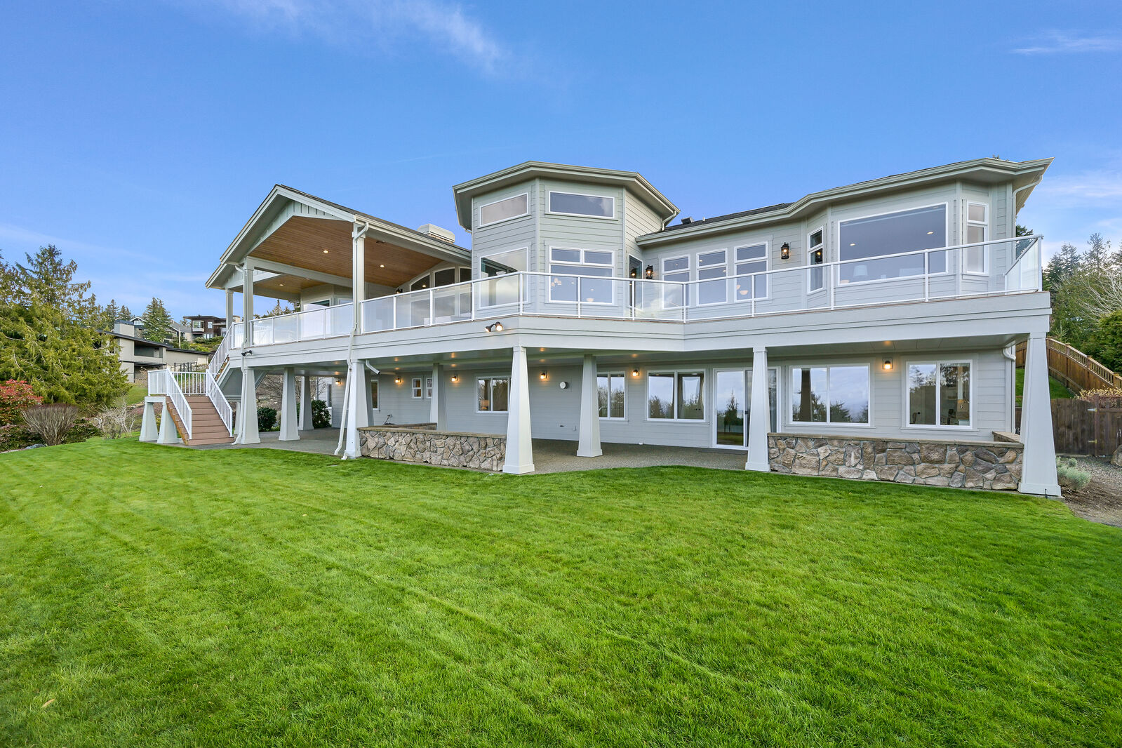 Enjoy forever, endless views of Bellingham Bay and the San Juan Islands from this custom-built home set on a private 3/4 acre lot in the highly coveted & sought after Samish Crest Highlands neighborhood. Three years ago, the owners vacated for a year and spent close to $900,000 dollars on a complete renovation creating the perfect balance between classic and fresh with a light, airy aesthetic incorporating rich design details and refined interiors. Enjoy walls of windows that flood over 6,000 square feet of living space with light & tranquility while the extensive 1,350 square feet of deck & covered patio provide unparalleled outdoor living spaces that are perfect for entertaining. A highly desirable main floor living plan with a chef's kitchen, butlers pantry, two primary suites & the perfect home office while the lower level, accessed by an elevator, has a large entertainment room and 3 additional bedrooms, 2 with baths. In addition, there is over 600 square feet of storage in the home and a large 900 square foot three-car garage. Nothing is missing in this one of a kind oasis, including beautifully manicured gardens and fruit trees. STUNNING & IRREPLACEABLE!