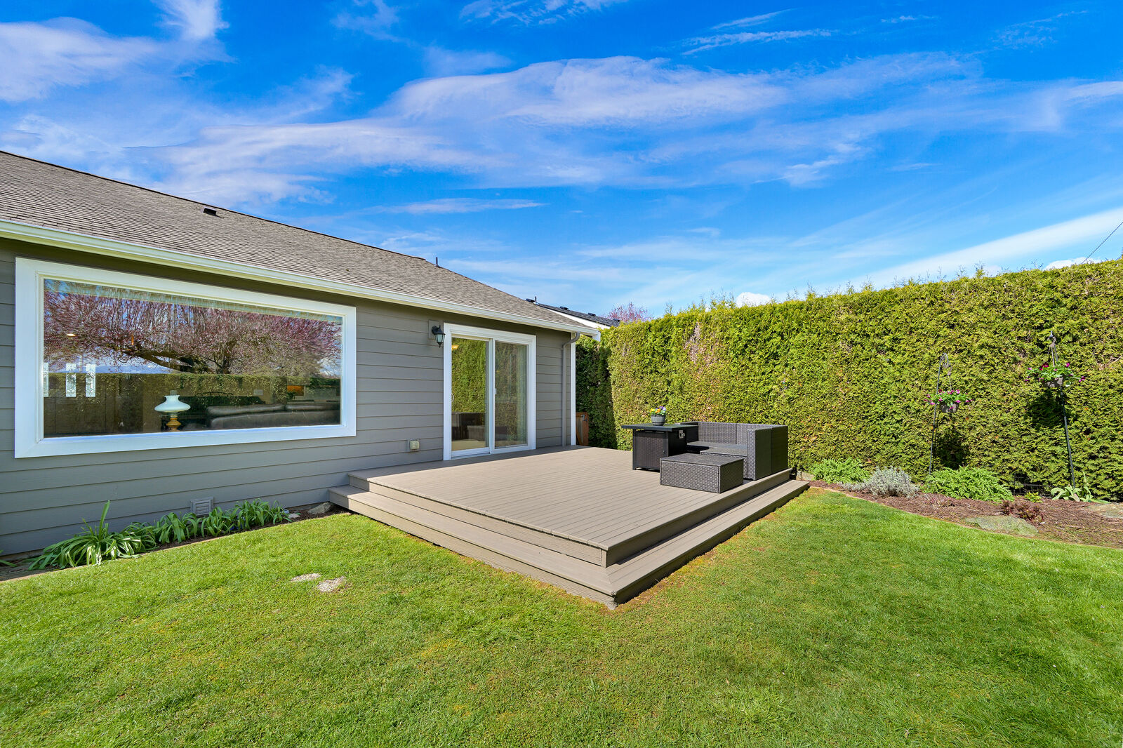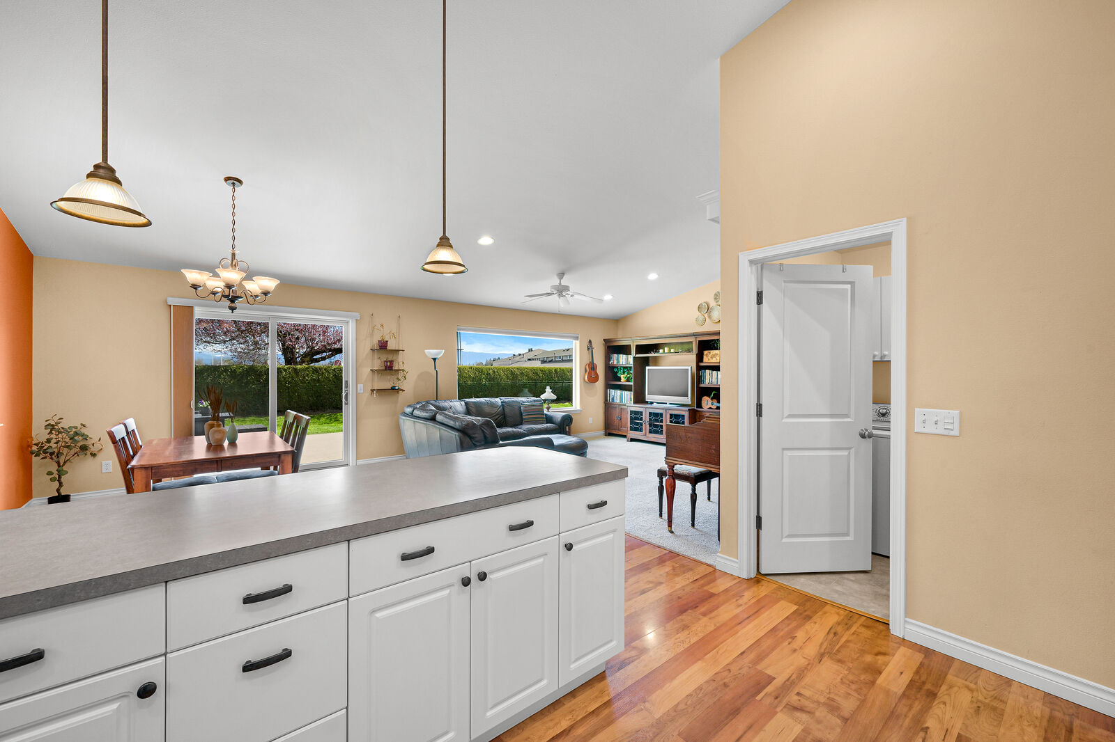 Ideal Lynden location for this very well kept single level home featuring an open layout, flooded with light, and beautiful fenced backyard with large deck. Vaulted ceilings and large windows make the main living space bright and open, flowing easily between the living room, dining area, and kitchen with eating bar. Nice primary with ensuite bath, and a walk-in closet, while two additional bedrooms offer flexibility for guests, office, or lifestyle needs. Outdoors, the spacious backyard provides room to relax, garden, or play, with a deck perfectly positioned to enjoy the sun and views of Mount Baker. Conveniently located near Bender Fields and nearby trails, this home also offers easy access to outdoor space and recreation. With a two-car garage and a layout designed for simplicity and comfort, this home is both practical and inviting. As an added plus a new roof is being installed this week!