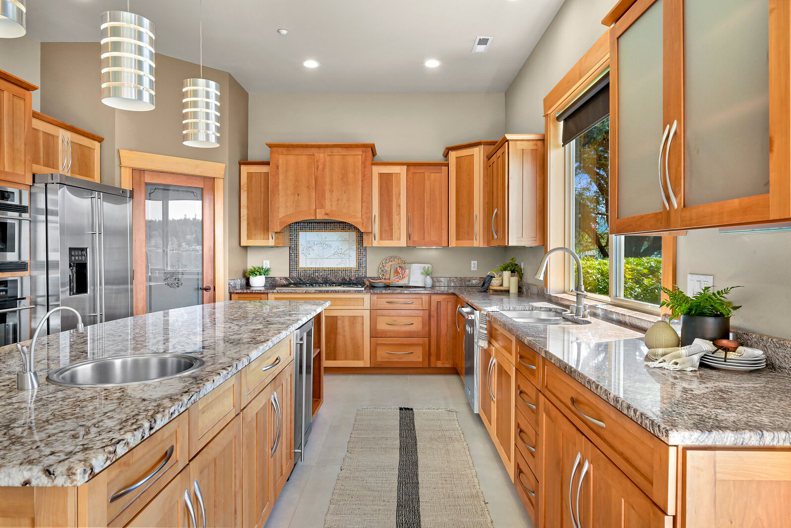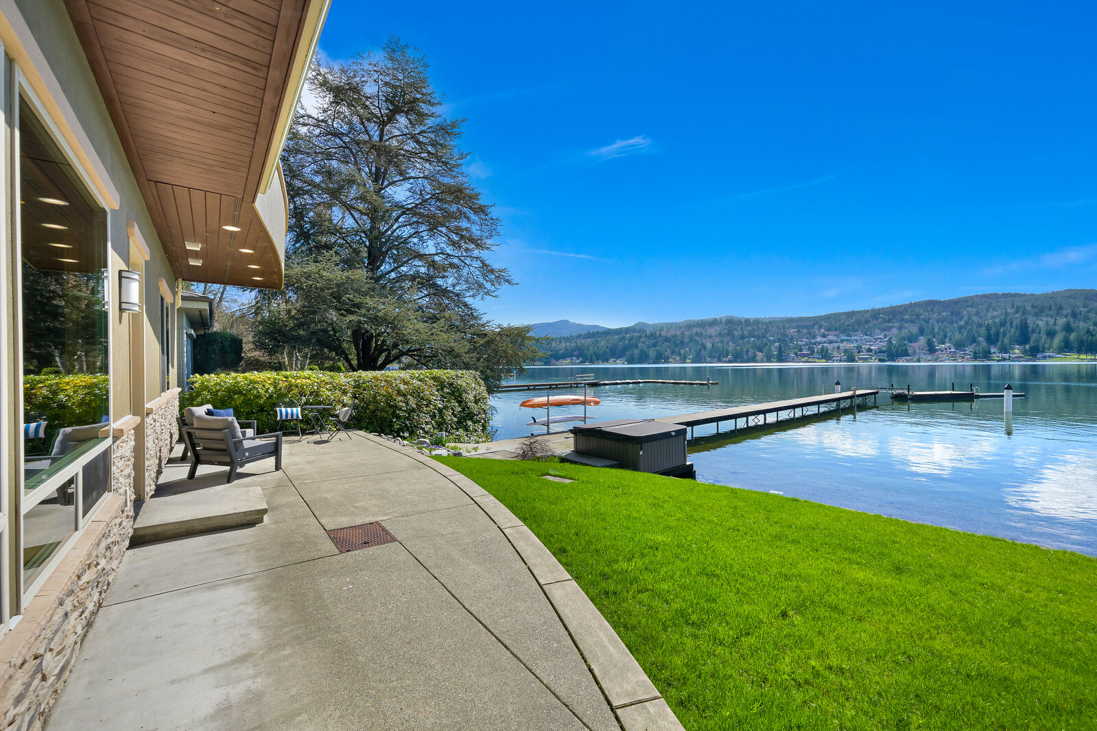 Experience rare beachfront lake living in desirable Dellesta Park, featuring a sandy shoreline, mature trees for exceptional privacy, and premium south-facing exposure for all-day sun. This custom-built, first-time-on-the-market home offers a fantastic floorplan with 4,200+ square feet, 5 bedrooms, a den and multiple living spaces, enhanced by dramatic floor-to-ceiling glass capturing expansive water views and breathtaking sunsets. Level, newly landscaped yard with bulkhead, beach, and an extended dock. Recent upgrades include a new hot tub set to capture the starry nights, newer roof, dual heating/AC units, plus kitchen and bath updates. Timeless craftsmanship shines throughout with Brazilian cherry floors, Italian-imported granite, marble mosaic art, and high-end cabinetry. Make this summer unforgettable on beautiful Lake Whatcom!
