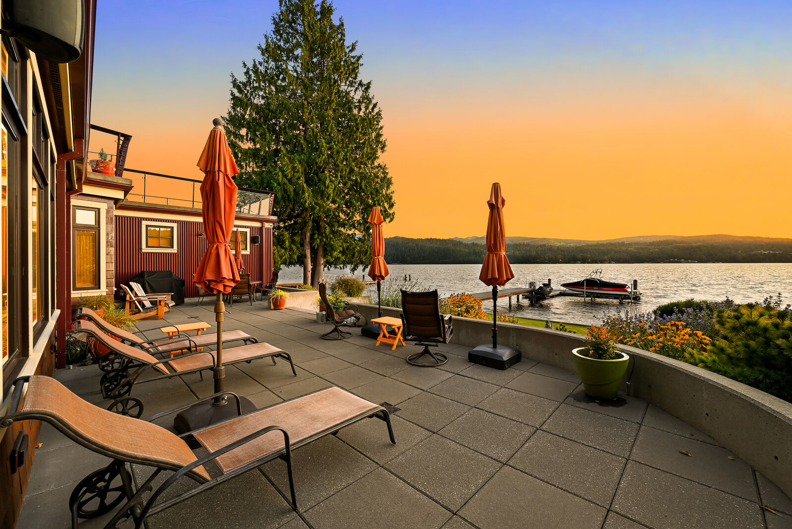 One of Lake Whatcom's most unique properties with epic views and sunsets offering unparalleled privacy with 120 feet of no bank waterfront and a picturesque creek. From the show stopping entry gate to the rusted steel garage doors, this property is the thoughtful and artistic result of a collaboration of Northwest architects, metalsmiths, artists, and constructed without a budget in mind. With over 4,000 sqft, features include a stunning steel and concrete staircase, exposed steel beams, sumptuous primary suite with fireplace and hot tub, heated concrete floors, soaring wood ceilings, boat and jet ski lifts, additional fenced parking area, and so much more. Enjoy THE ultimate lake house with a rare drive-thru boat house and boat launch!
