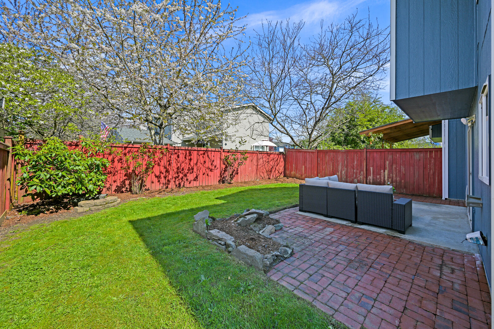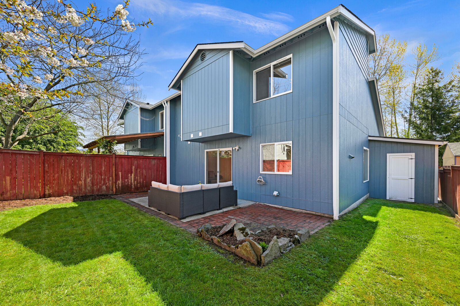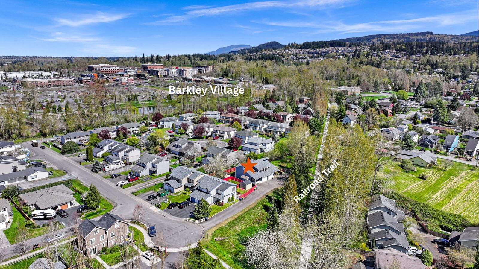 Tucked back from the street and set by the tree-lined railroad trail, this beautifully maintained 3-bedroom, 2.5-bath home offers both privacy and connection to nature. Thoughtful updates throughout include fresh interior and exterior paint, new carpet, and newer appliances. Inside, the vaulted ceilings and skylight bring in an abundance of natural light, enhancing the home’s open feel. Out back, the private setting with a concrete patio and a fully fenced backyard creates a low-maintenance outdoor space that’s usable year-round. Just steps from your front door, the trailhead connects you to an expansive trail system leading to Whatcom Falls, downtown Bellingham, and beyond. Located in the highly sought-after Barkley neighborhood, known for its walkability and convenient access to shopping, dining, and daily amenities. A rare blend of seclusion and accessibility.
