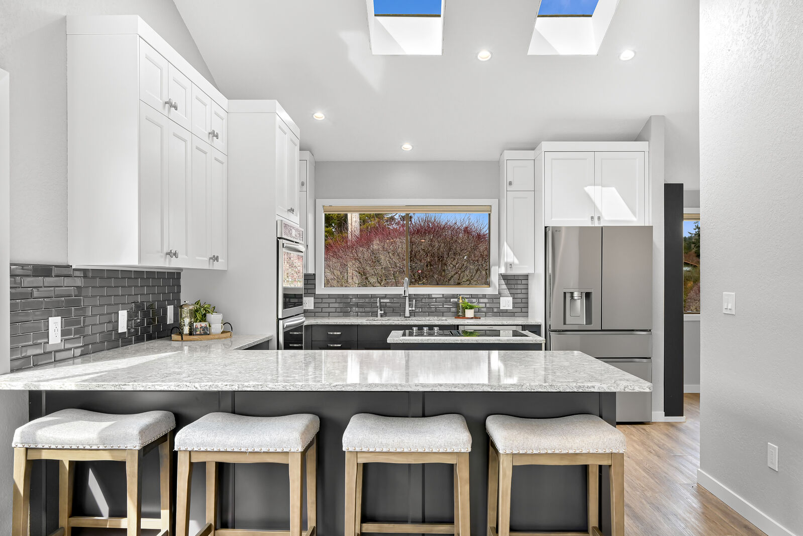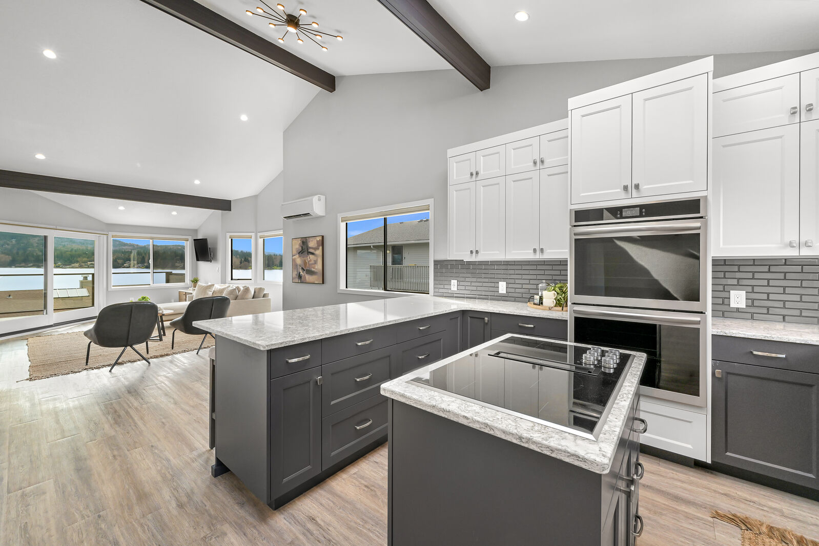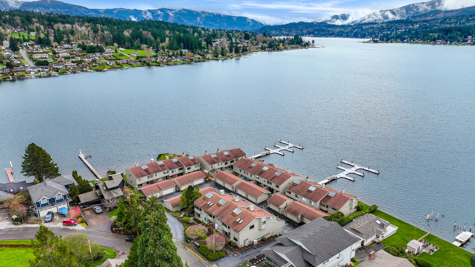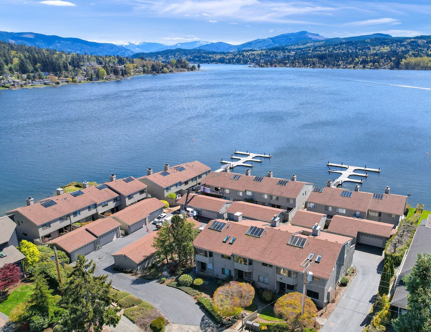Don’t miss this rare opportunity to own at Lakeside North - Lake Whatcom’s premier condominiums, located on sunny Northshore Drive, close to town & across the street from two new restaurants and store . This is a 3 bedroom, 3 bath, South facing end unit that's flooded with sun, and includes a private boat slip. It's the largest unit in the complex with nearly 2,500 square feet, two massive private sun decks a private 2-car carport. Completely remodeled throughout featuring a brand-new kitchen, bathrooms, flooring throughout, fireplace, new trim and doors, modern lighting, and upgraded hardware—every single detail has been thoughtfully refreshed! Other features include a wall of windows facing West for light, vaulted beamed ceilings, multiple skylights, wet bar & many versatile interior spaces that can be used for a den, gym, media room, office, bunk room... you name it! Be on vacation year-round & enjoy the lake lifestyle at half the cost without the maintenance of a single family home!