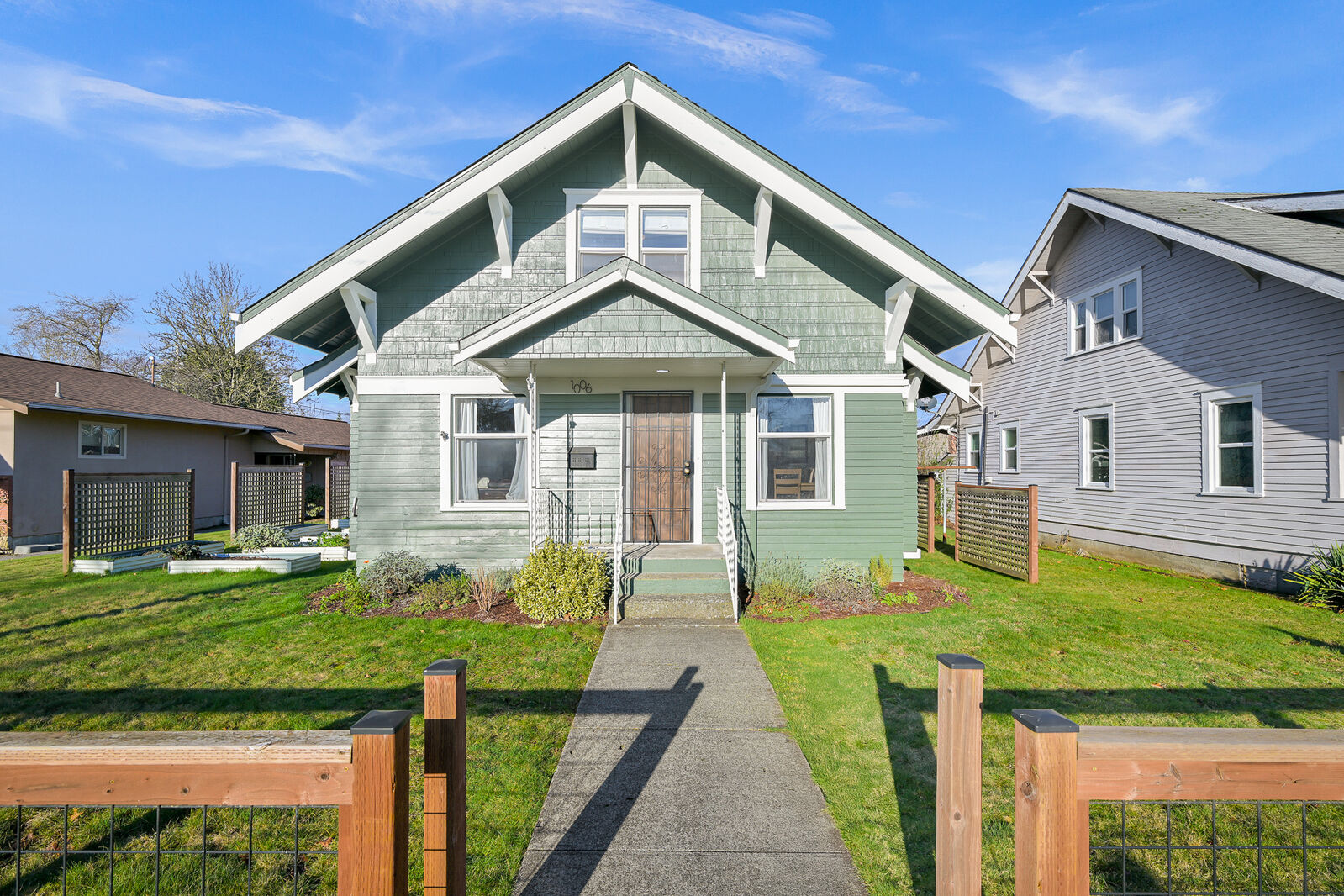 Charming, remodeled historic home on a level lot with 1,600+ sq ft of light-filled living space. This 4-bedroom home features a primary suite on the main and blends modern updates with timeless character - remodeled kitchen and bath, updated plumbing and electrical, tankless hot water heater, ductless mini splits, newer windows plus original built-ins, hardwood floors and beautiful trim work. Enjoy a fenced backyard with multiple garden beds, a chicken coop, and a beautiful cherry tree. Heated alley-access garage offers potential for an ADU or home office. Located in an amazing central Lynden neighborhood just steps to downtown, the new Schoolyard park and the Jim Kaemingk Sr. trail!