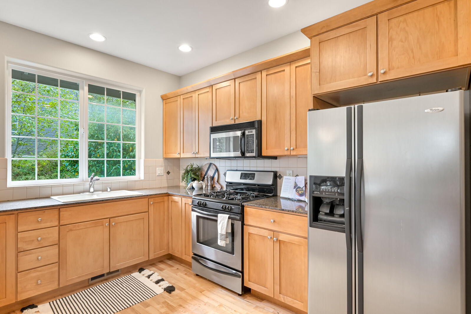 Easy, one level living in a great central Bellingham location, just minutes to Whatcom Falls, Lake Padden, Galbraith Mountain’s bike trails and shopping. This 3 bedroom home includes an office with French doors, 9 foot ceilings with a vaulted great room and primary bedroom, gas fireplace, granite countertops, hardwood floors, new carpet and interior paint. This property includes a large front porch, covered back deck, and a very private backyard, that looks out into trees. A turn key home at this price and in this prime location doesn’t come on the market often!