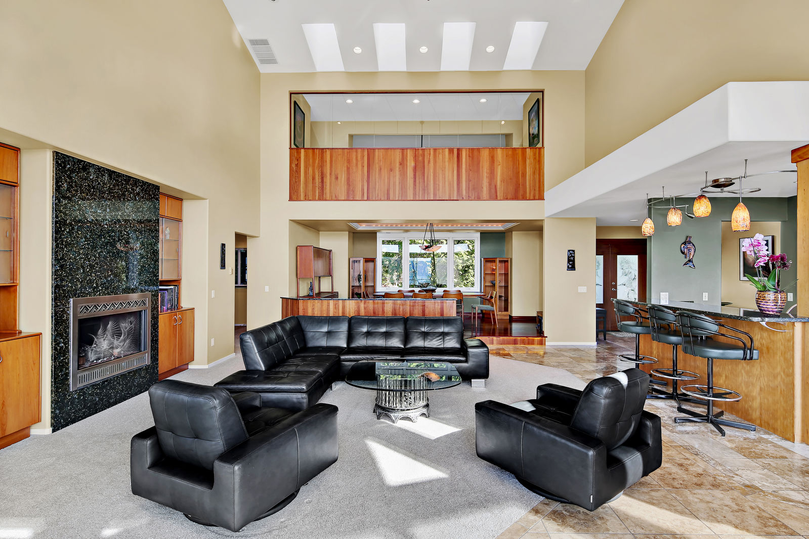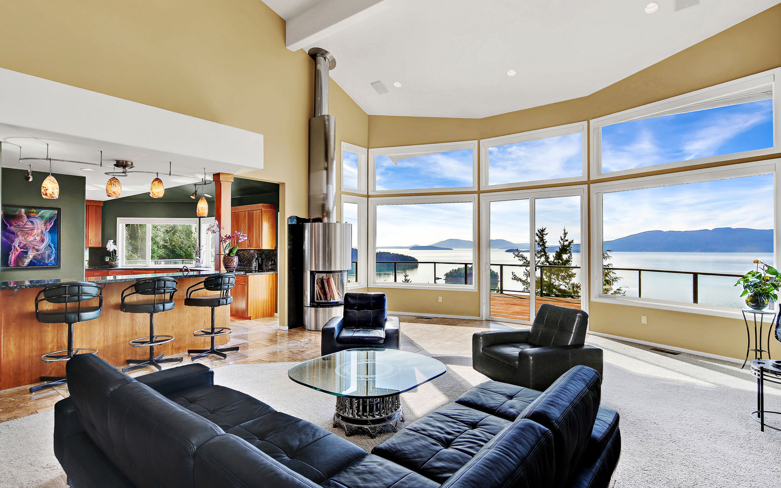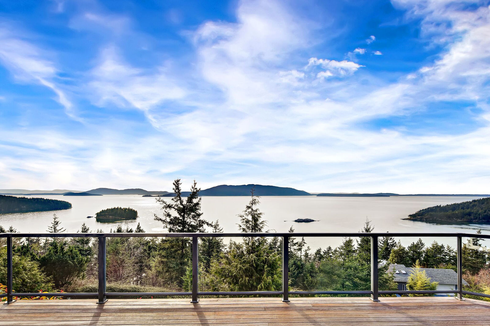 Stunning Northwest contemporary with 180 degree world class views of the bay and San Juan Islands. Artistically designed with nearly 5,000 square feet capturing endless and unobstructed views and sunsets from almost every room. Features include soaring ceilings, walls of glass, 3 fireplaces and high end custom finishes throughout including all 4 bedrooms featuring ensuite baths. Well situated on over 1 acre in a gated community with an adjacent tennis court. INCREDIBLE and IRREPLACEABLE!