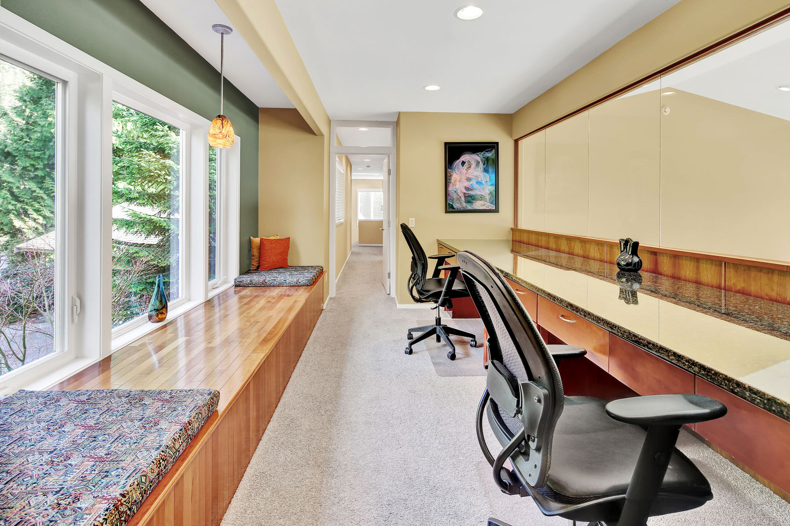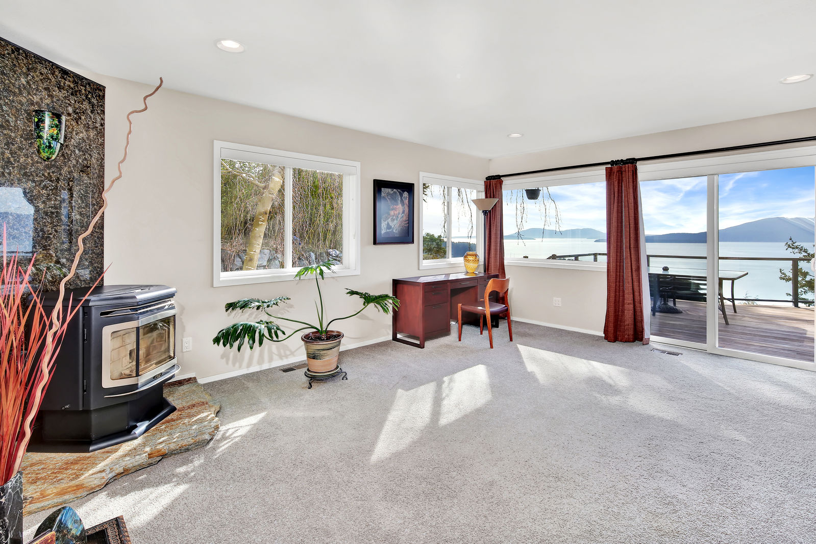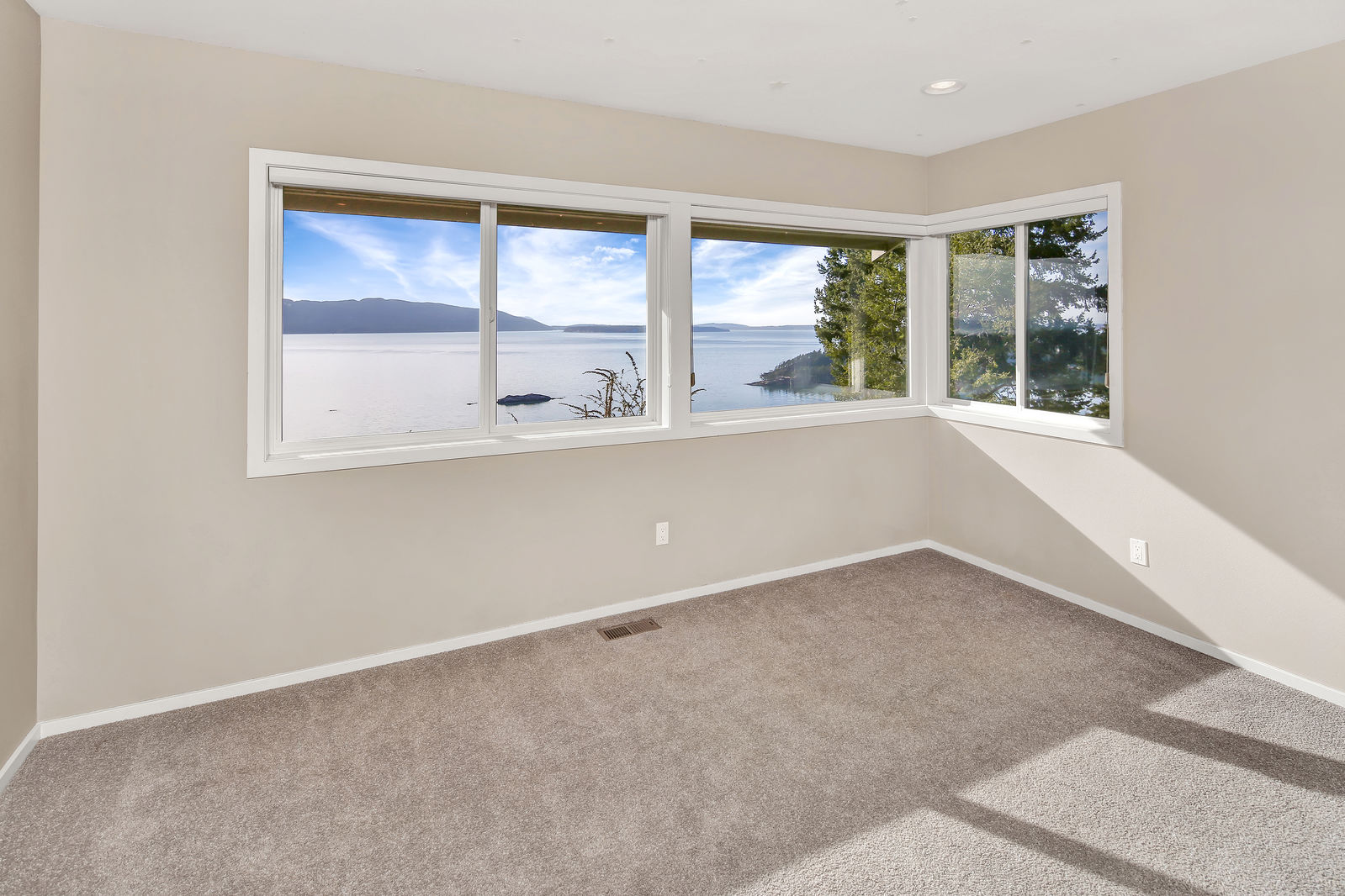 Stunning Northwest contemporary with 180 degree world class views of the bay and San Juan Islands. Artistically designed with nearly 5,000 square feet capturing endless and unobstructed views and sunsets from almost every room. Features include soaring ceilings, walls of glass, 3 fireplaces and high end custom finishes throughout including all 4 bedrooms featuring ensuite baths. Well situated on over 1 acre in a gated community with an adjacent tennis court. INCREDIBLE and IRREPLACEABLE!