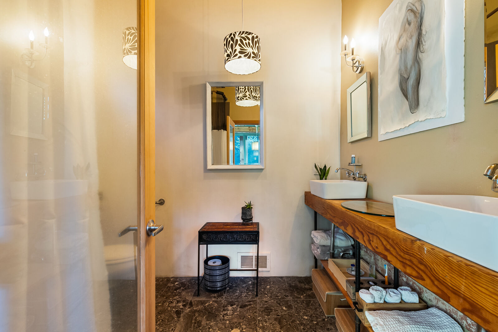 Serenity off Chuckanut Drive, including 5 private ocean beaches! The perfect setting on over 1/2 acre, with desirable Western sun exposure. This property is only a short walk from the interurban trail, accessing miles of hiking & biking trails. This is a true custom home, architecturally designed with thoughtful & loving input from the owner, an artist. Enjoy easy living in a one level home, with low maintenance featuring a metal roof, steel & concrete siding. Lots of thought & character has gone into the interior design, with walls of glass, including 5 sets of sliding doors opening to a huge covered patio and a spacious 24x30 outbuilding, perfect for hobbies or your favorite toys. One of Bellingham's premier areas - minutes to Fairhaven!