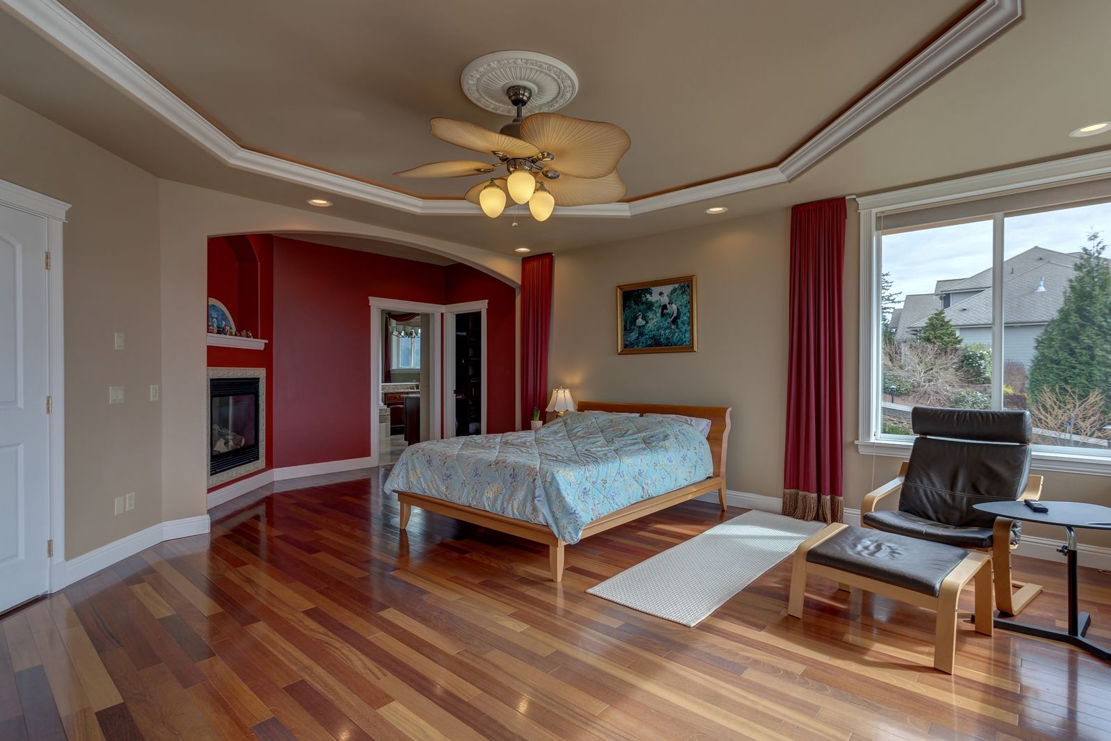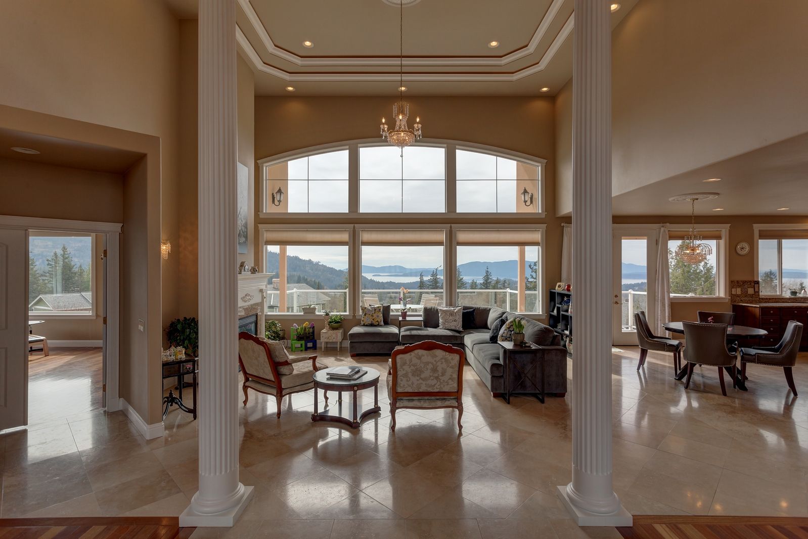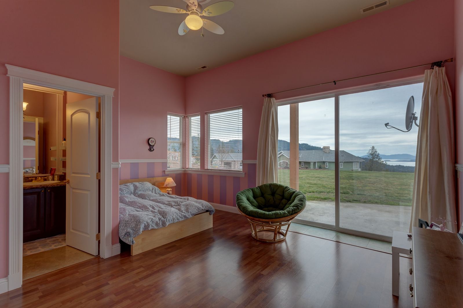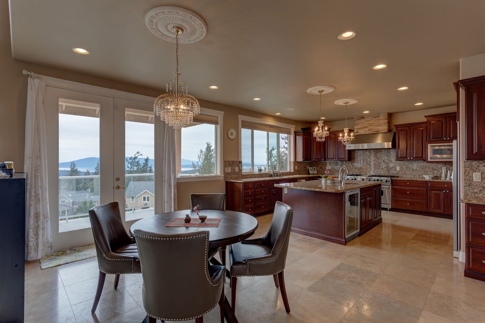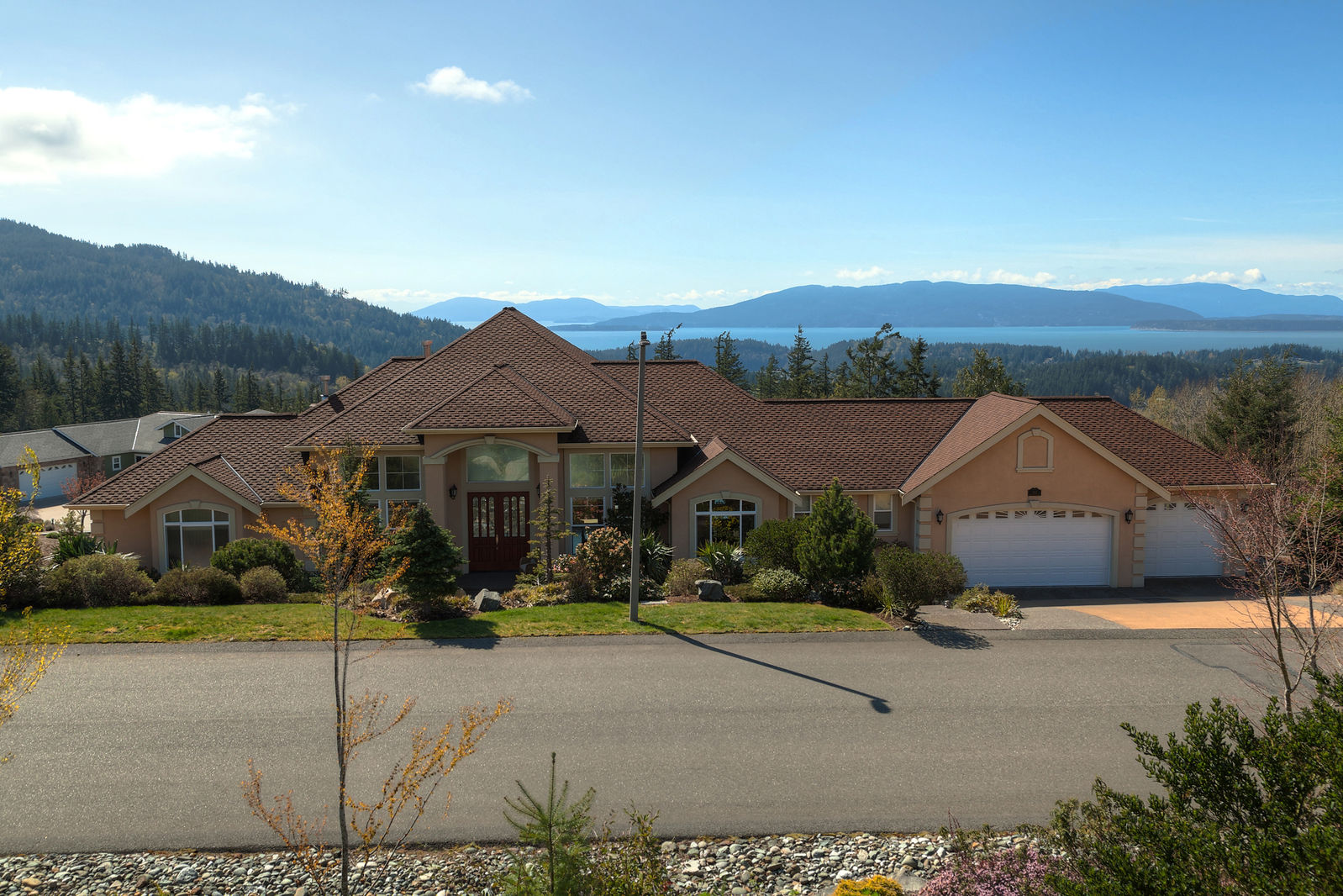 Incredible Samish Highlands custom home with panoramic view of Bellingham Bay, the San Juans, Mountains, and City from every room in the home! Meticulous detail throughout including trayed ceilings, Brazilian hardwood & travertine floors, granite counters & custom cherry cabinetry. Chefs kitchen includes S/S Viking range, oversized refrigerator/freezer, wine cooler, and more. Situated on professionally landscaped .94 Acre Lot with a beautiful water feature. Welcome home.