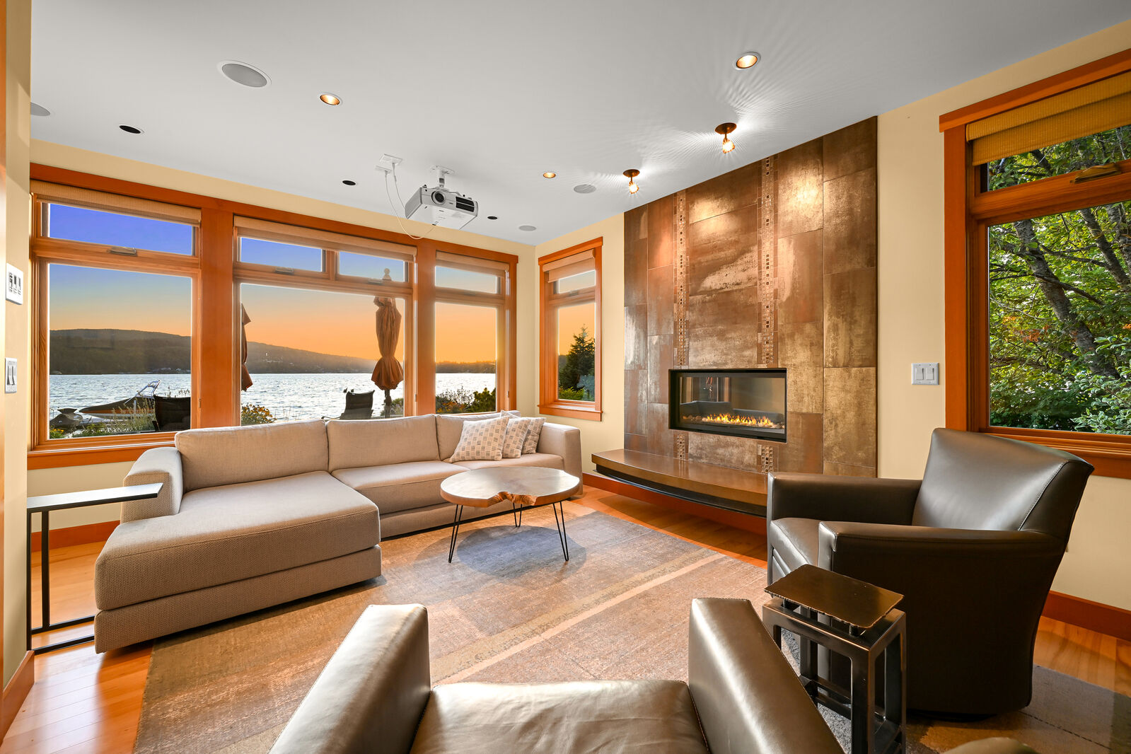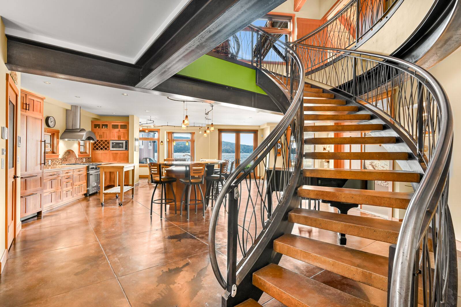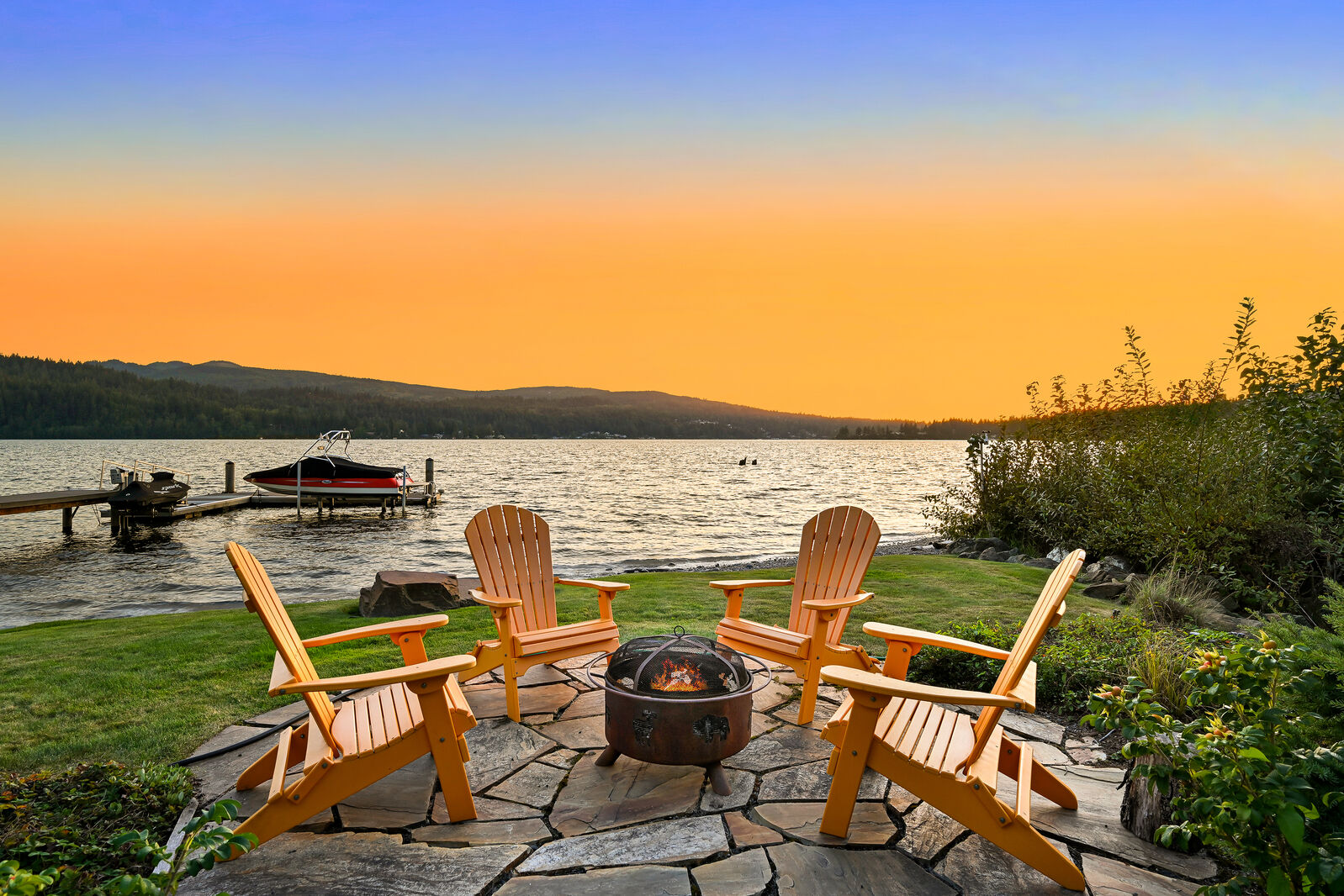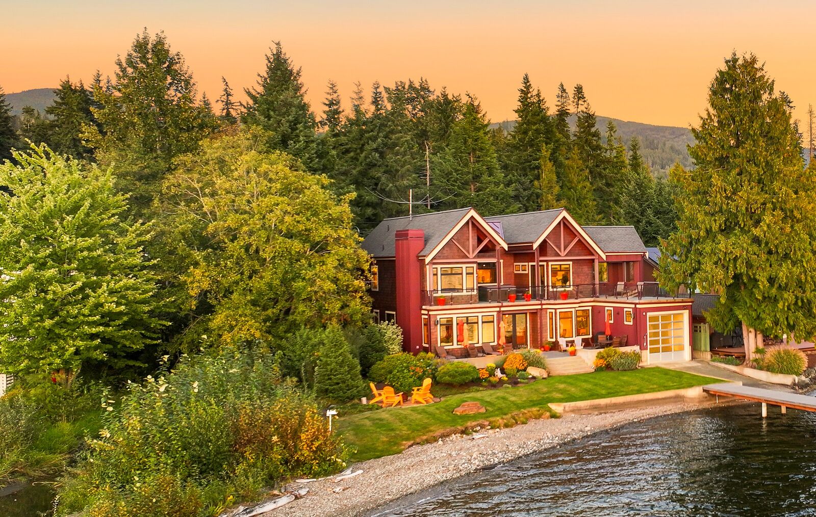 One of Lake Whatcom's most unique properties with epic views and sunsets offering unparalleled privacy with 120 feet of no bank waterfront and a picturesque creek. From the show stopping entry gate to the rusted steel garage doors, this property is the thoughtful and artistic result of a collaboration of Northwest architects, metalsmiths, artists, and constructed without a budget in mind. With over 4,000 sqft, features include a stunning steel and concrete staircase, exposed steel beams, sumptuous primary suite with fireplace and hot tub, heated concrete floors, soaring wood ceilings, boat and jet ski lifts, additional fenced parking area, and so much more. Enjoy THE ultimate lake house with a rare drive-thru boat house and boat launch!