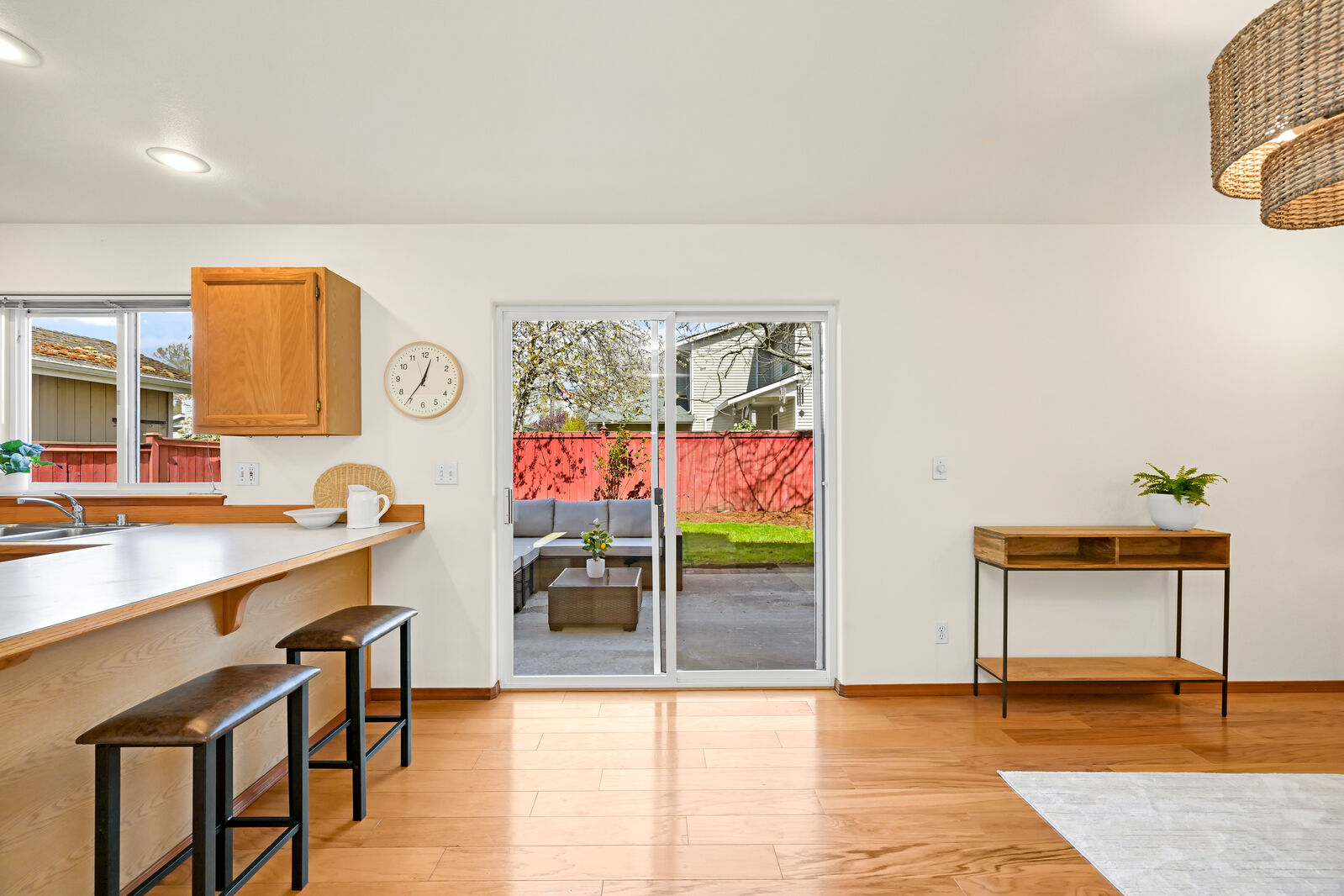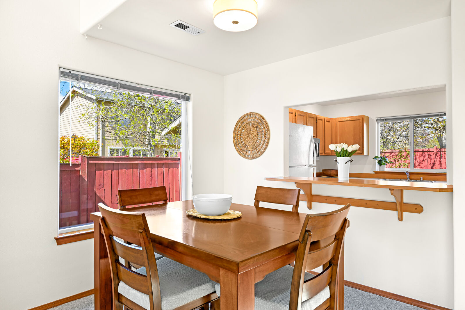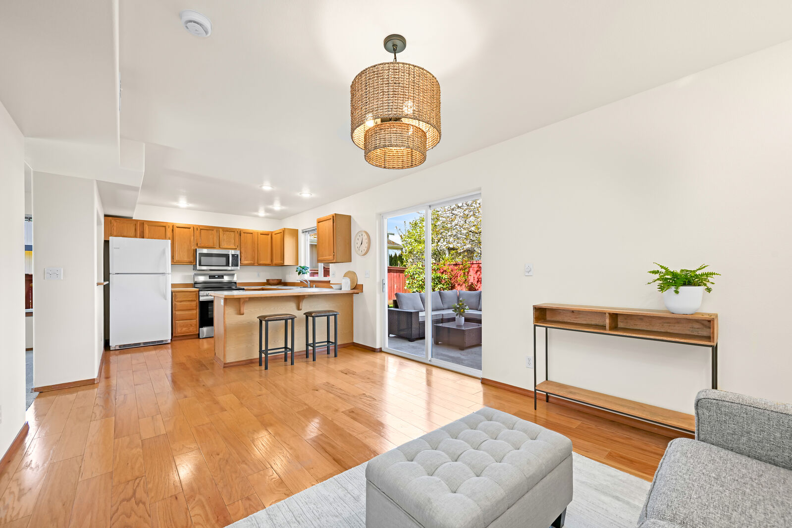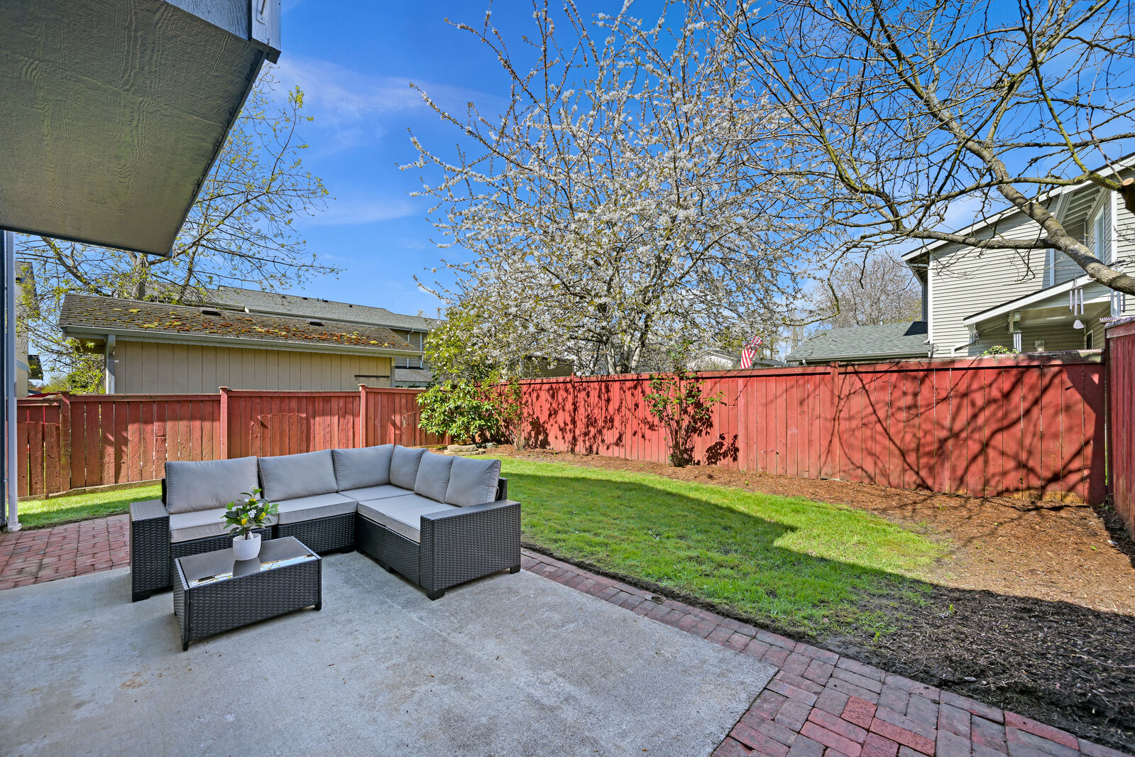 Tucked back from the street and set by the tree-lined railroad trail, this beautifully maintained 3-bedroom, 2.5-bath home offers both privacy and connection to nature. Thoughtful updates throughout include fresh interior and exterior paint, new carpet, and newer appliances. Inside, the vaulted ceilings and skylight bring in an abundance of natural light, enhancing the home’s open feel. Out back, the private setting with a concrete patio and a fully fenced backyard creates a low-maintenance outdoor space that’s usable year-round. Just steps from your front door, the trailhead connects you to an expansive trail system leading to Whatcom Falls, downtown Bellingham, and beyond. Located in the highly sought-after Barkley neighborhood, known for its walkability and convenient access to shopping, dining, and daily amenities. A rare blend of seclusion and accessibility.
