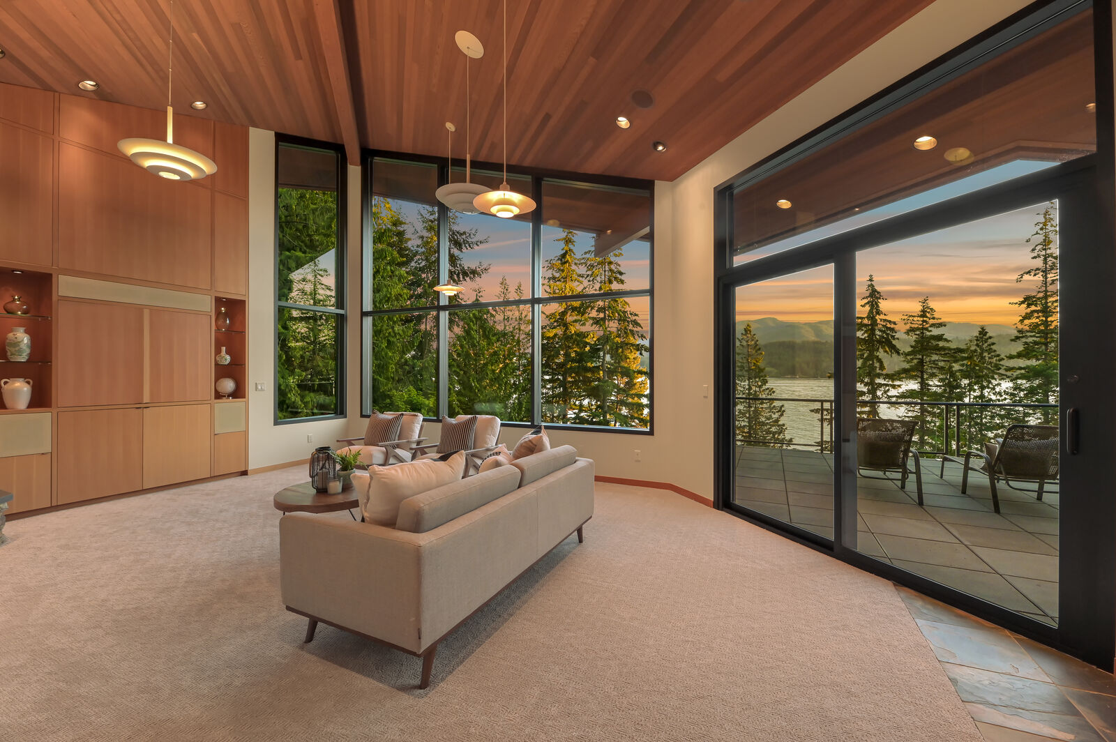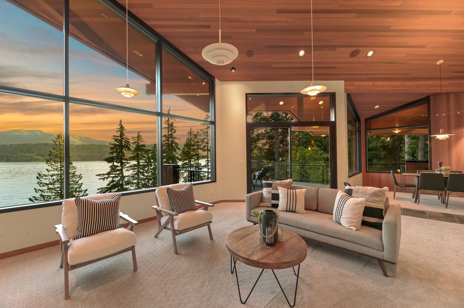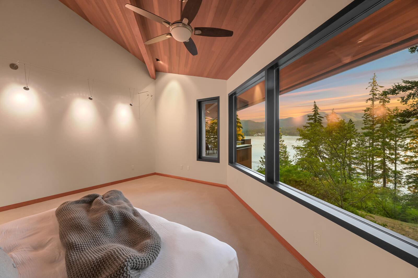 An iconic architectural statement by renown Chesmore/Buck Architecture of Kirkland. Sited on 2.5 private acres with over 200 feet of no bank waterfront on the shore of Lake Whatcom. This modern sanctuary offers the most spectacular South facing views the lake has to offer. Bold, disciplined lines connect the structure with walls of glass blurring the lines of indoor and out, creating a unique lifestyle at one with nature. Truly unrivaled build quality, stunning finishes and exceptional living and entertaining spaces at every turn. Enjoy lake living at its best with a private dock and rare boat house with boat lift. From a page in Dwell magazine and the first time on the market since it was constructed.