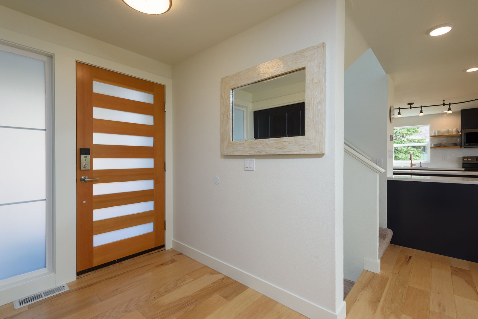Mid-century inspired home with spectacular bay view! Completely remodeled including windows, doors, trim, cabinets, flooring, tile, plumbing and light fixtures, hardware, and more. Located on a quiet, dead end street adjacent to city trail system. Modern master suite on the main floor, two living spaces, wet-bar for entertaining, fully fenced front and back yards, and so much more. Enjoy views of the bay, sunsets, and city lights on one of the two view decks. Don't miss this!