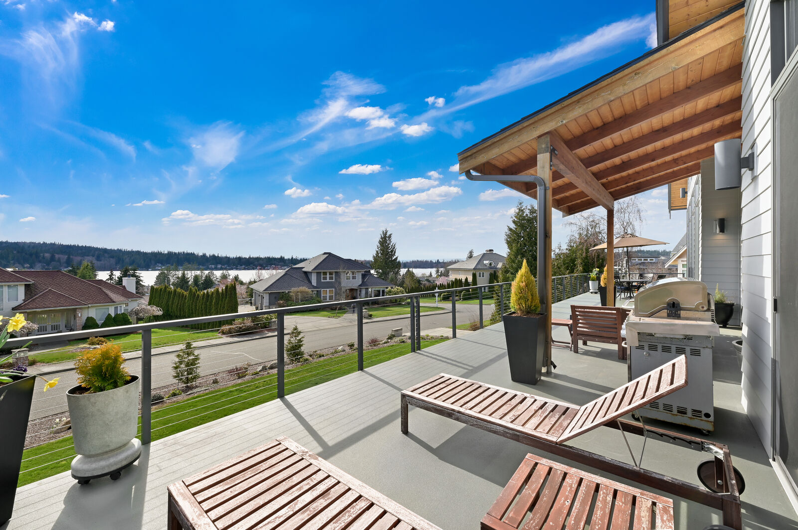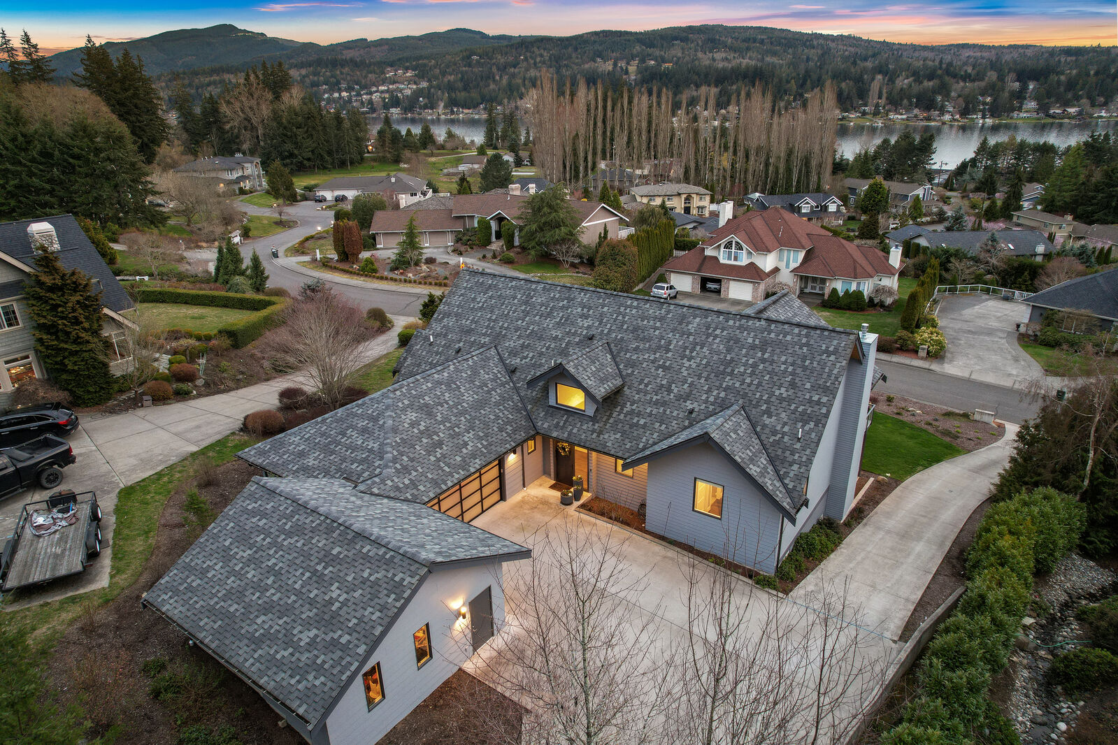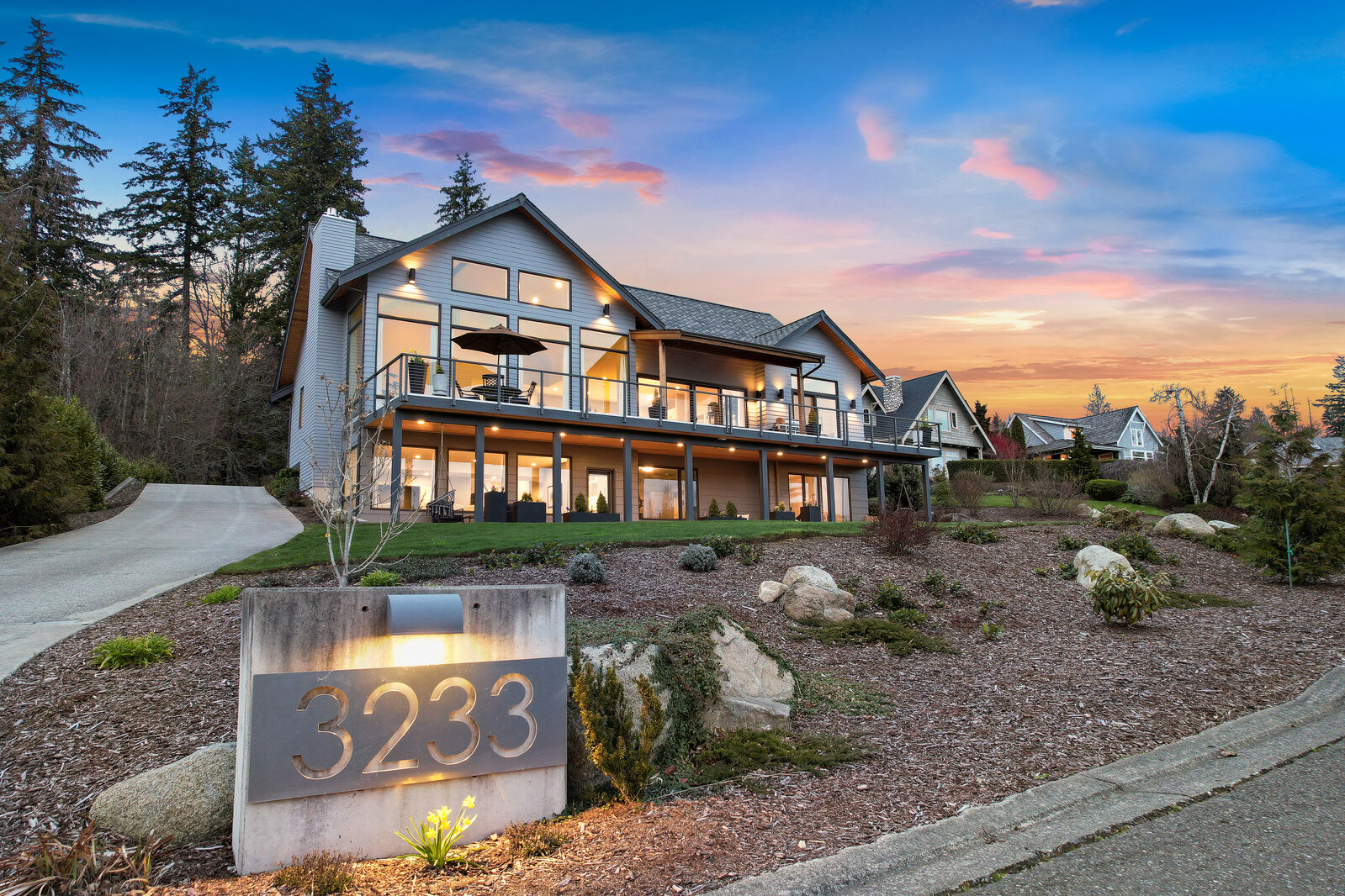 A modern sanctuary with Westerly views overlooking Lake Whatcom located in one of Bellingham's most desirable neighborhoods, Eagleridge. Impeccable, contemporary, light & bright, this 4,400 square foot newer custom home boasts sophistication with clean lines, high-end finishes & floor to ceiling windows. An expansive kitchen stands front & center, opening to the dining room, soaring great room with a towering fireplace & an expansive covered deck. Other features include, primary suite located on the main floor with a spa inspired bath and deck, oversized rec room opening to a large covered patio, 4 bedrooms, 4.5 baths, exercise/office, large storage room, and a 3 car garage. Close to vibrant dining, entertainment options and endless trails.