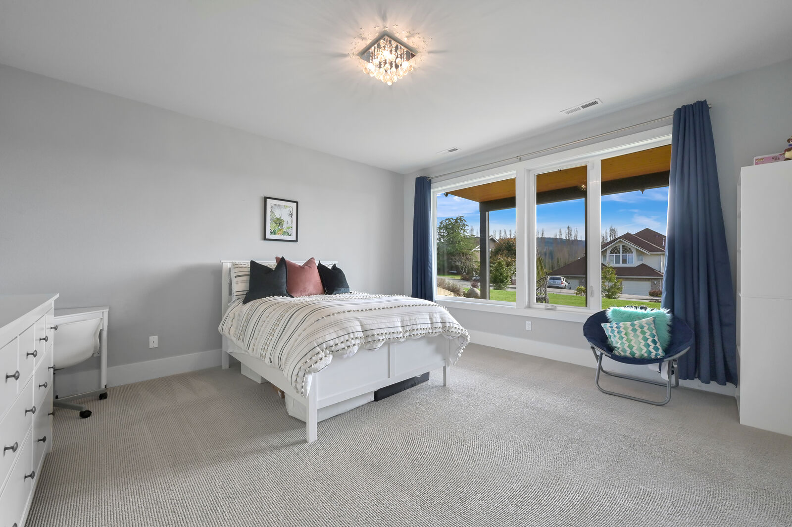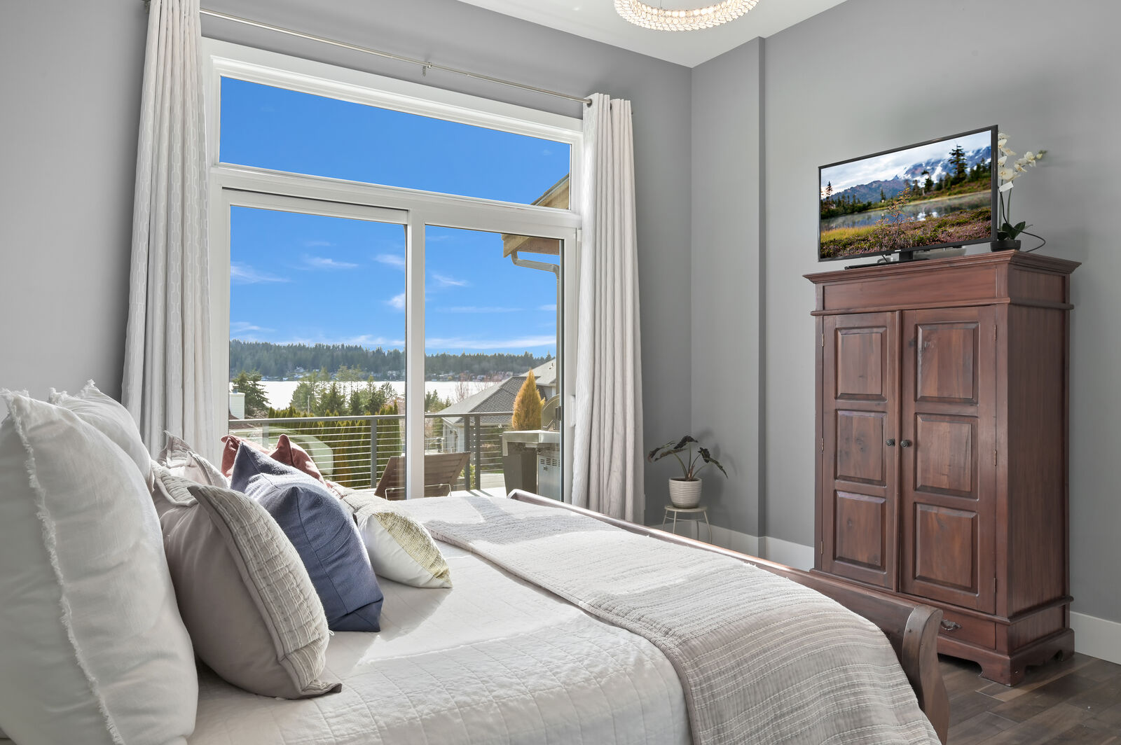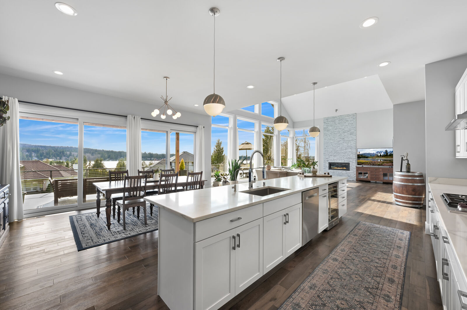 A modern sanctuary with Westerly views overlooking Lake Whatcom located in one of Bellingham's most desirable neighborhoods, Eagleridge. Impeccable, contemporary, light & bright, this 4,400 square foot newer custom home boasts sophistication with clean lines, high-end finishes & floor to ceiling windows. An expansive kitchen stands front & center, opening to the dining room, soaring great room with a towering fireplace & an expansive covered deck. Other features include, primary suite located on the main floor with a spa inspired bath and deck, oversized rec room opening to a large covered patio, 4 bedrooms, 4.5 baths, exercise/office, large storage room, and a 3 car garage. Close to vibrant dining, entertainment options and endless trails.