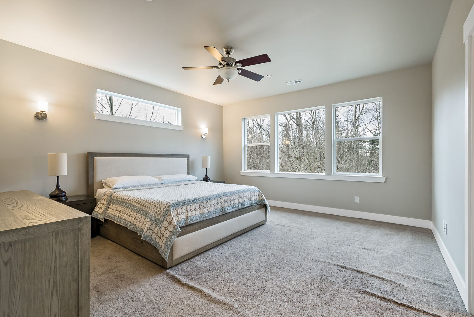 One of Bellingham's most desirable & convenient neighborhoods, Barkley Crossing! A hip, newer, 2,686 square foot beautiful architecturally styled contemporary home with quality finishes throughout, including full custom cabinetry, extensive tile work, upgraded lighting and trim packages. Features include a great room concept plus lower level rec room, 3 bedrooms plus an office, 2.5 bathrooms & two decks that overlook acres of trees. Designed so the entire upper floor is the primary suite. Tucked away in a small, quiet cul-de-sac & you can literally step out your backdoor onto the trail system. Only a short walk to shopping, restaurants, coffee shops & entertainment in Barkley Village. This home offers the utmost in privacy from every room!