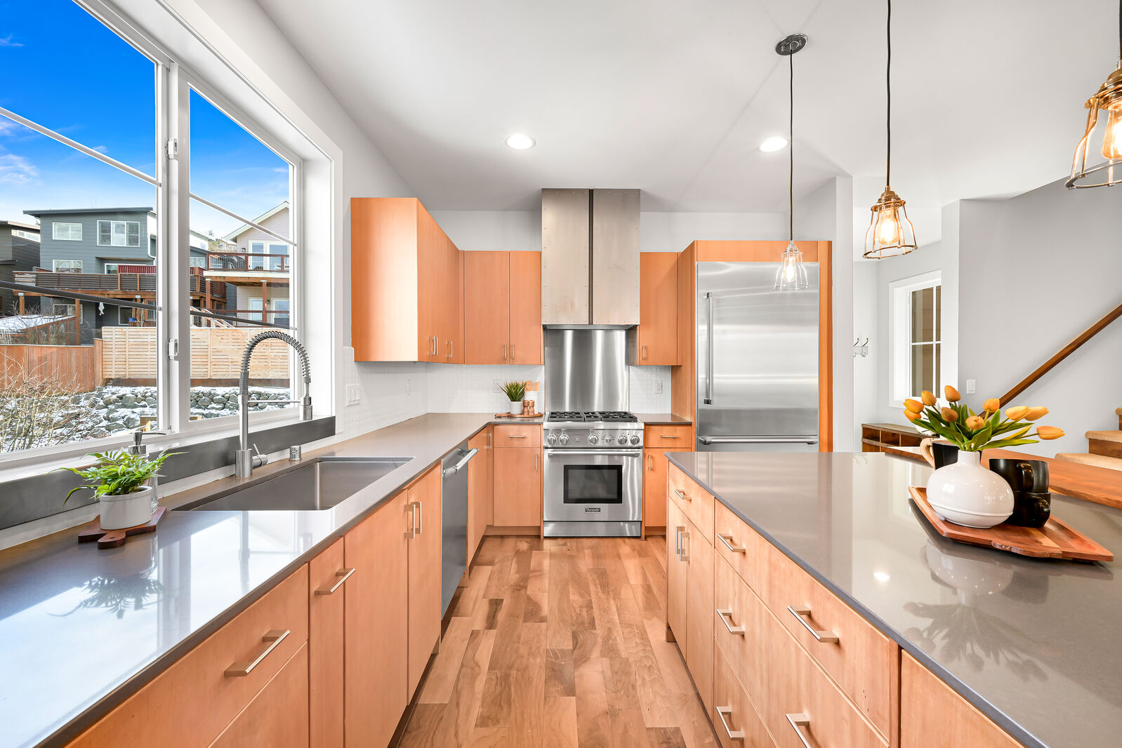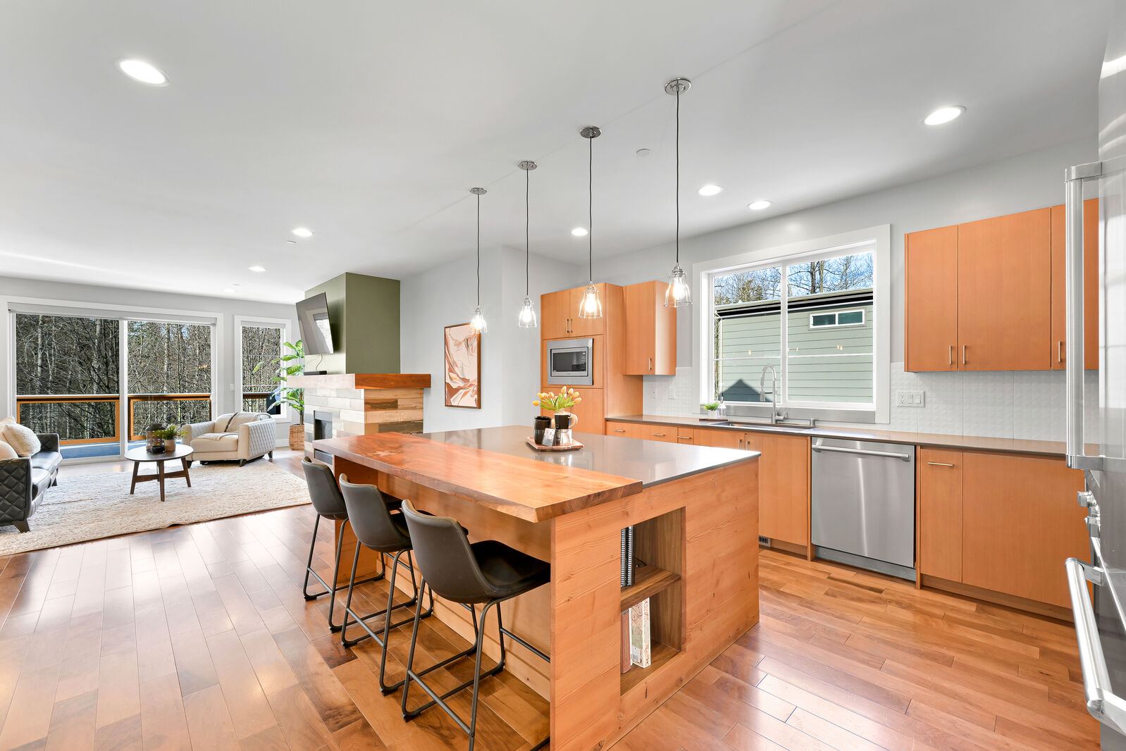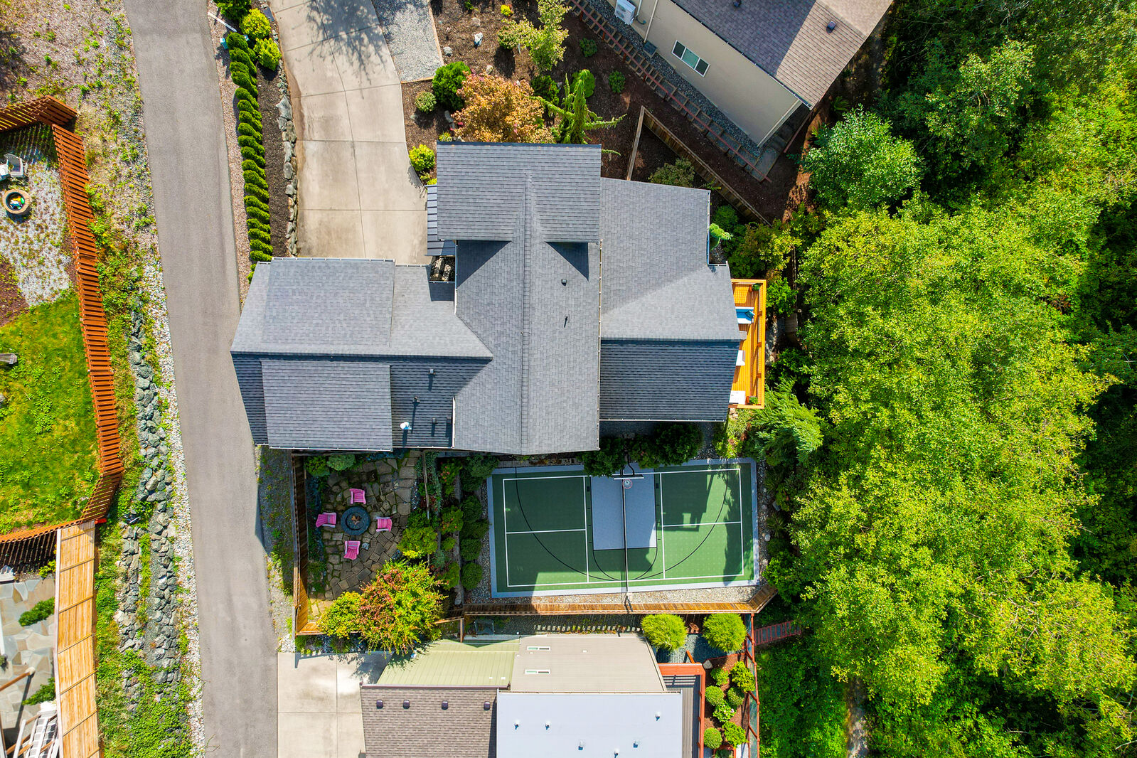 Located in one of Bellingham's most desirable & convenient neighborhoods, Barkley Crossing! This custom one owner home is a hip, newer, 3,662 square foot contemporary with a fully fenced back yard, fire pit and an awesome lighted sport court. Features include 5 bedrooms, 4 bathrooms, a great room concept with designer fireplace, wood beamed dining room, custom fir cabinetry, chef's kitchen with Thermador appliances, massive rec room, dog wash & two huge decks that overlook acres of trees. Tucked away on a quiet cul-de-sac, literally step out your backdoor onto miles of trails. Only a short walk to shopping, restaurants, coffee shops, theaters, & entertainment in Barkley Village. This home offers the utmost in privacy from nearly every room!
