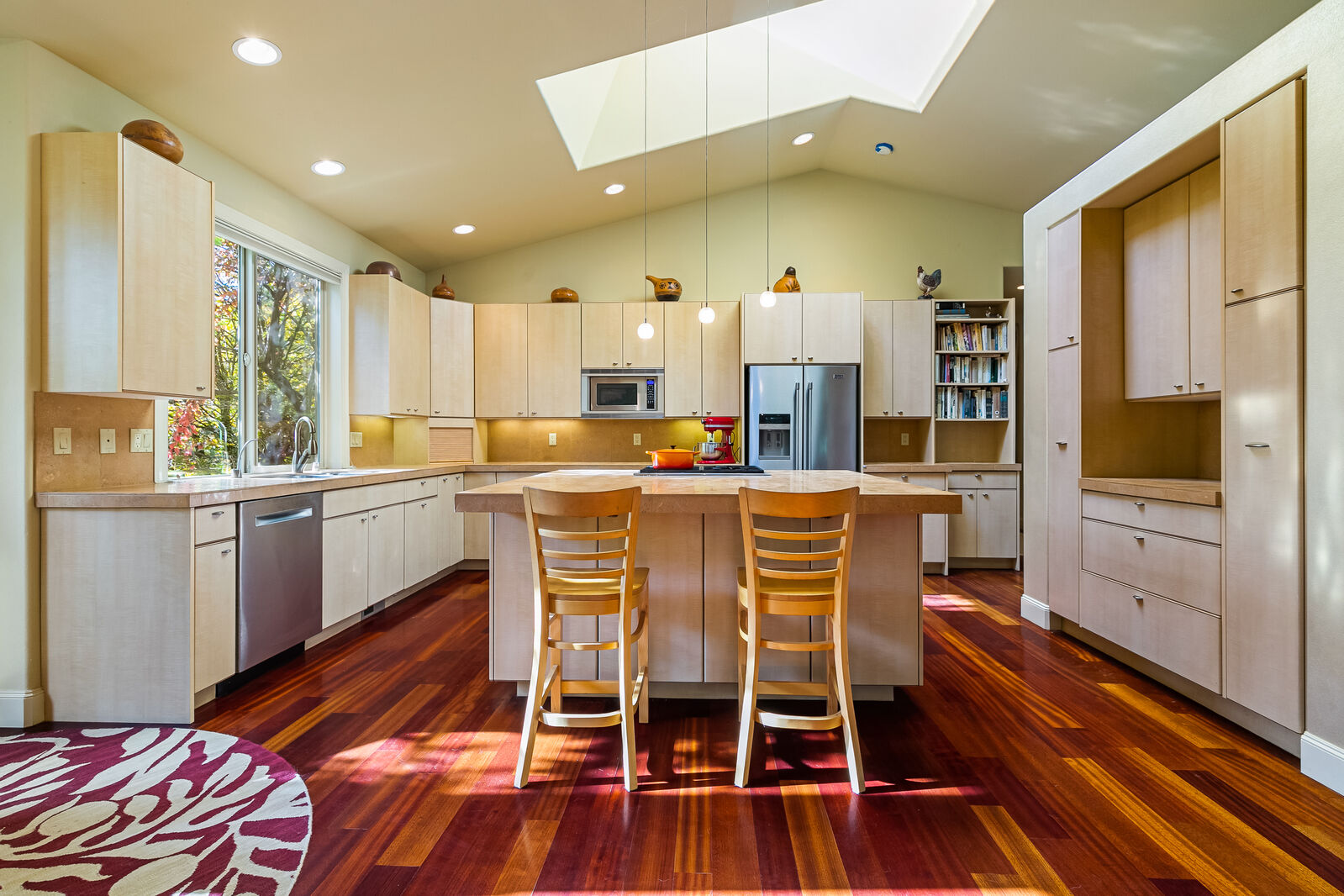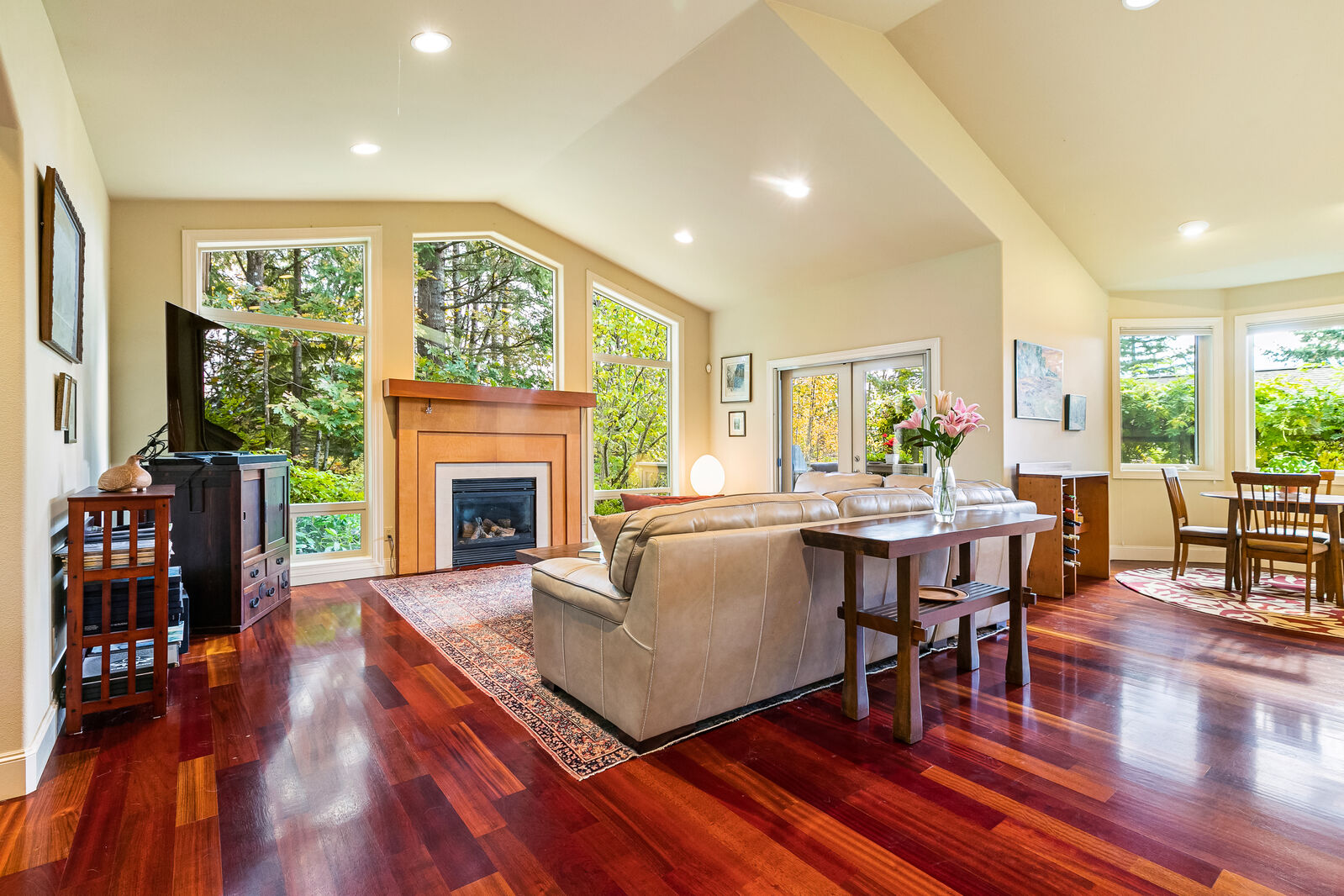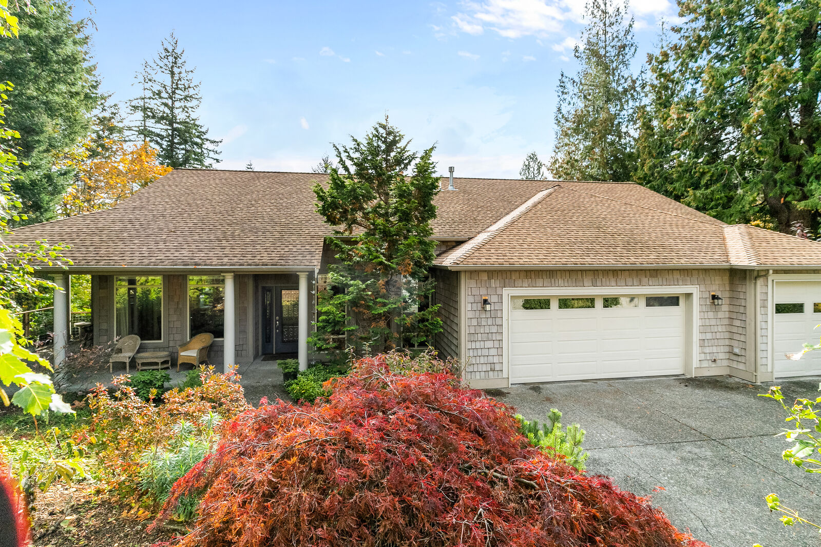 Rare, one level home with open floor plan, nestled above Lake Whatcom in a quiet and established neighborhood, but tucked away offering great privacy and serenity. Nearly a skylight in every room creating a light and bright atmosphere in this custom built home. Features include high and vaulted ceilings throughout, large office with fireplace, Brazilian cherry hardwood floors, gourmet kitchen perfect for entertaining, luxurious primary suite with a spa-like bath, tons of storage, built-in bookshelves and a 3 car garage. This 1/2 acre property has a fully fenced side yard and a wraparound patio and deck. A timeless build! Close to the lake, trails and The Fork restaurant.