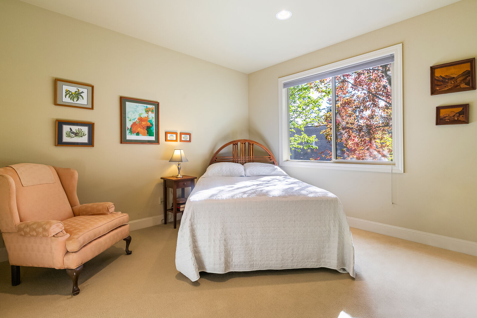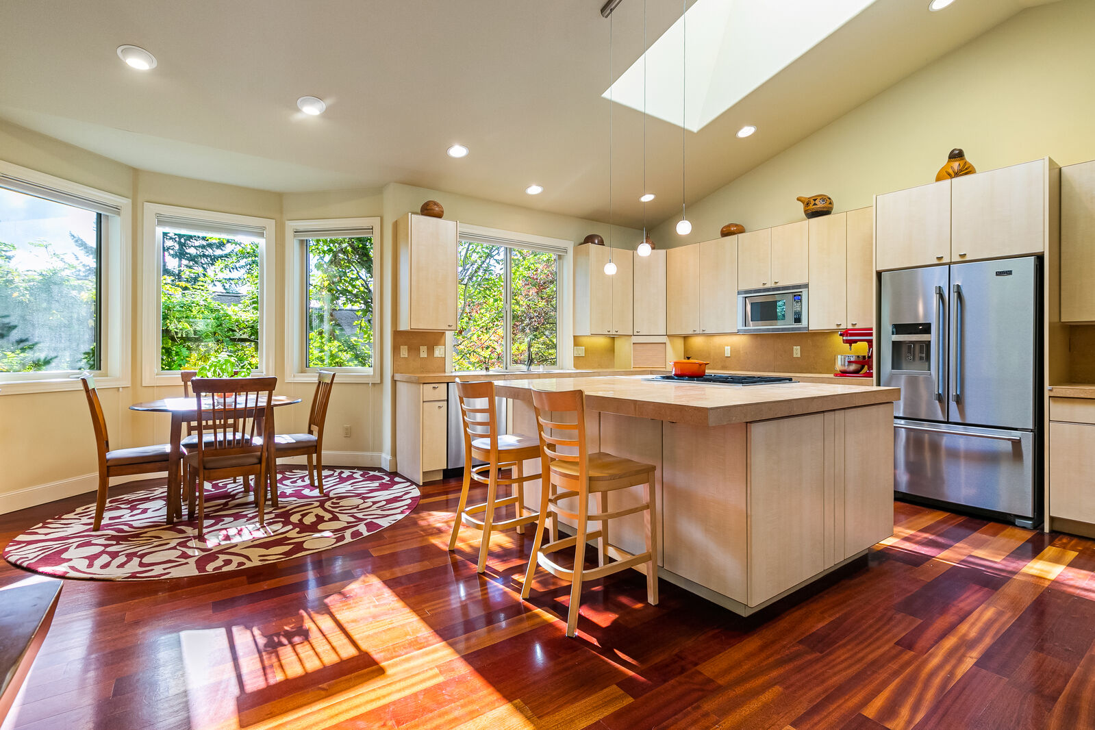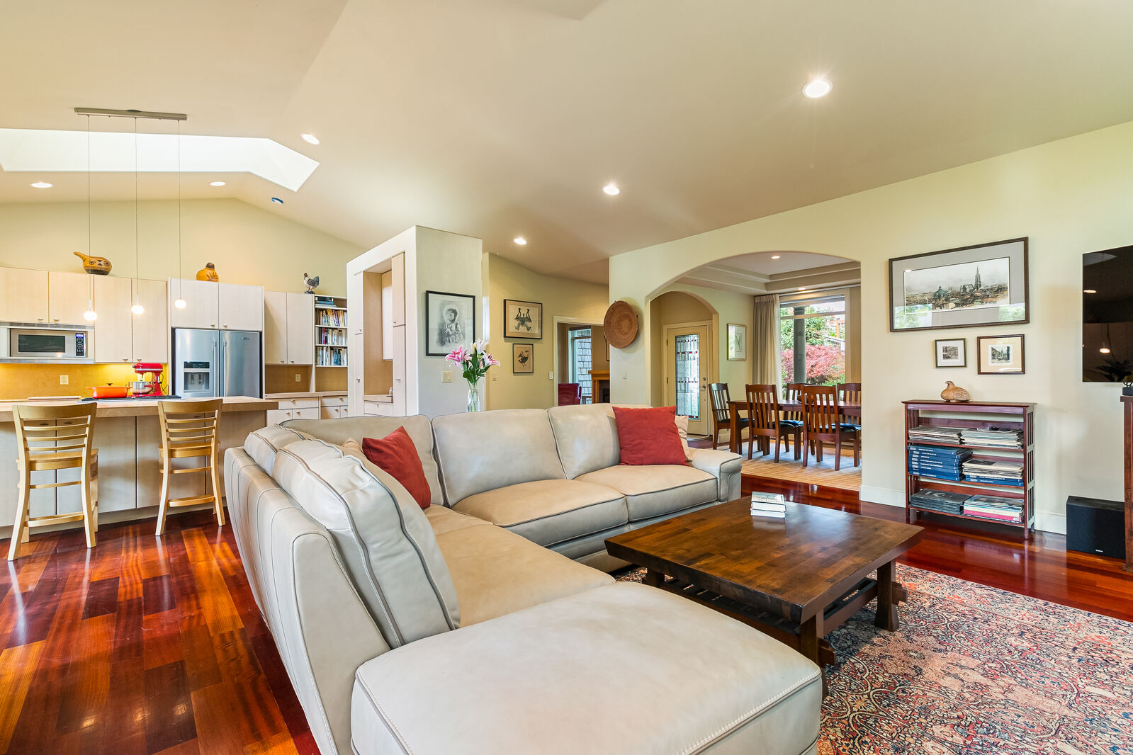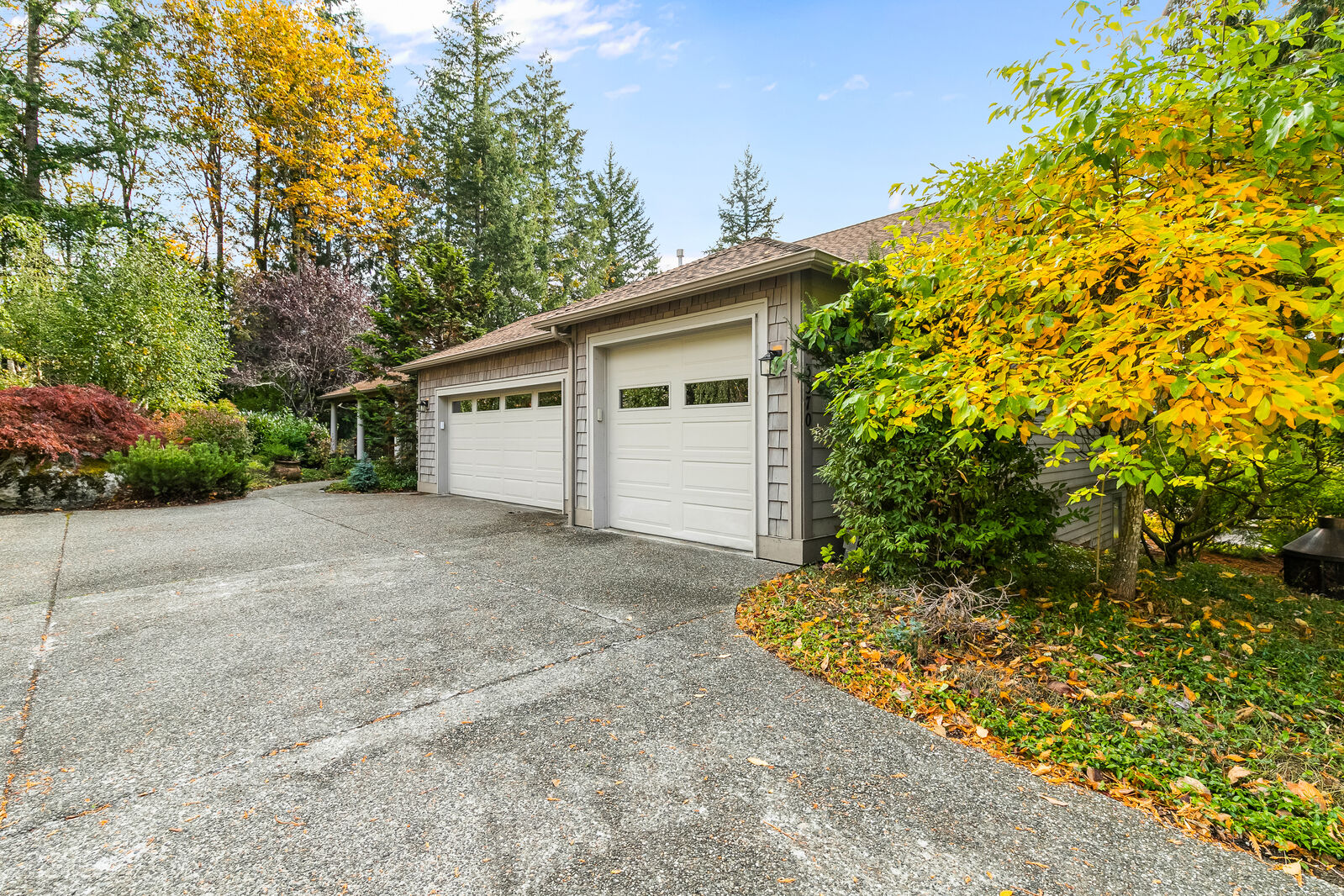 Rare, one level home with open floor plan, nestled above Lake Whatcom in a quiet and established neighborhood, but tucked away offering great privacy and serenity. Nearly a skylight in every room creating a light and bright atmosphere in this custom built home. Features include high and vaulted ceilings throughout, large office with fireplace, Brazilian cherry hardwood floors, gourmet kitchen perfect for entertaining, luxurious primary suite with a spa-like bath, tons of storage, built-in bookshelves and a 3 car garage. This 1/2 acre property has a fully fenced side yard and a wraparound patio and deck. A timeless build! Close to the lake, trails and The Fork restaurant.