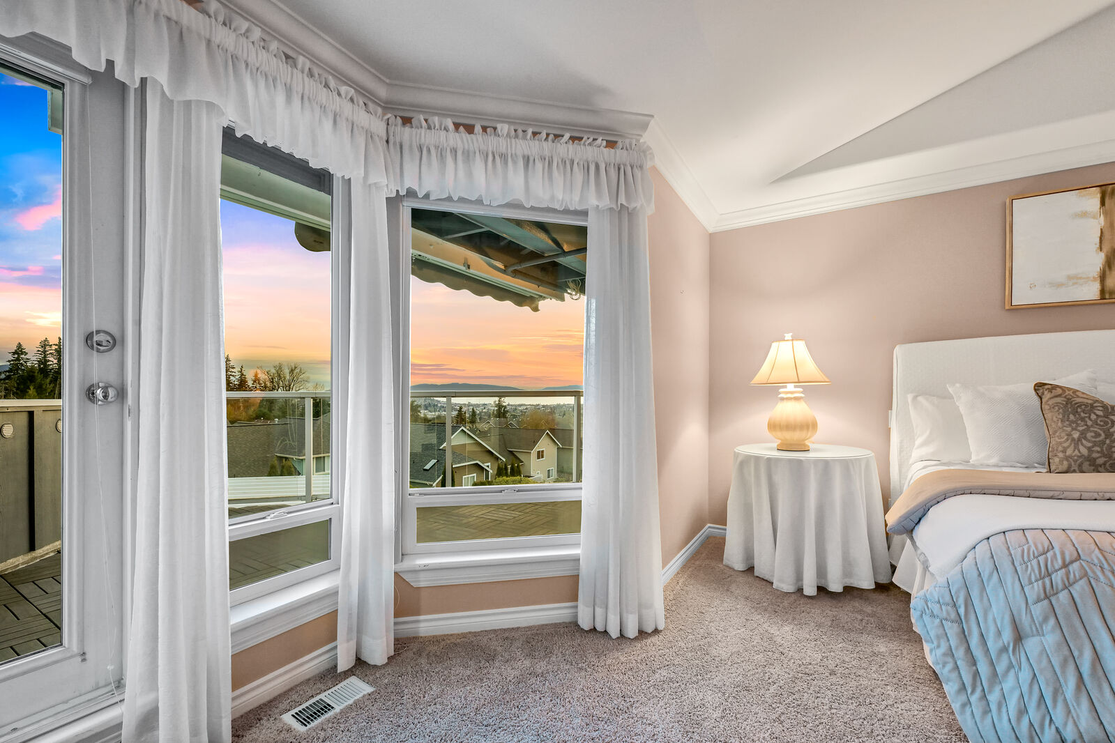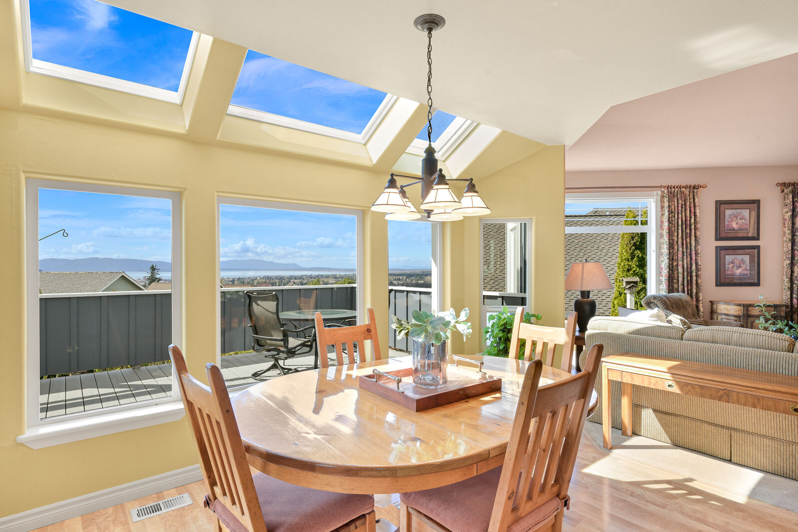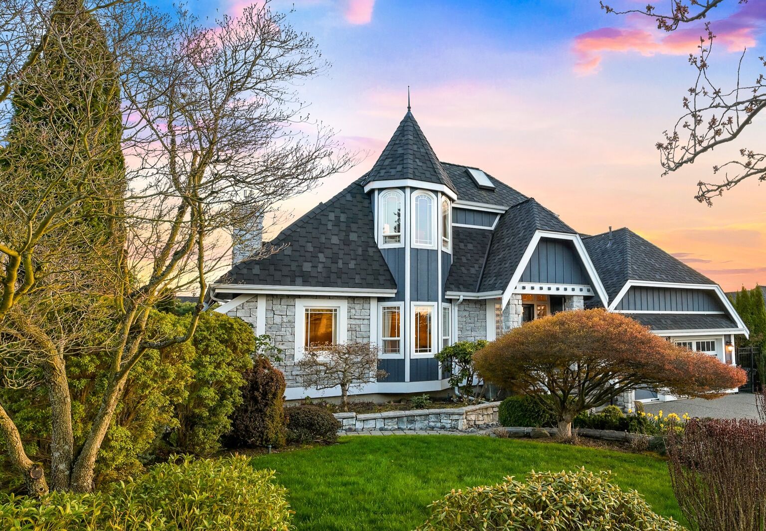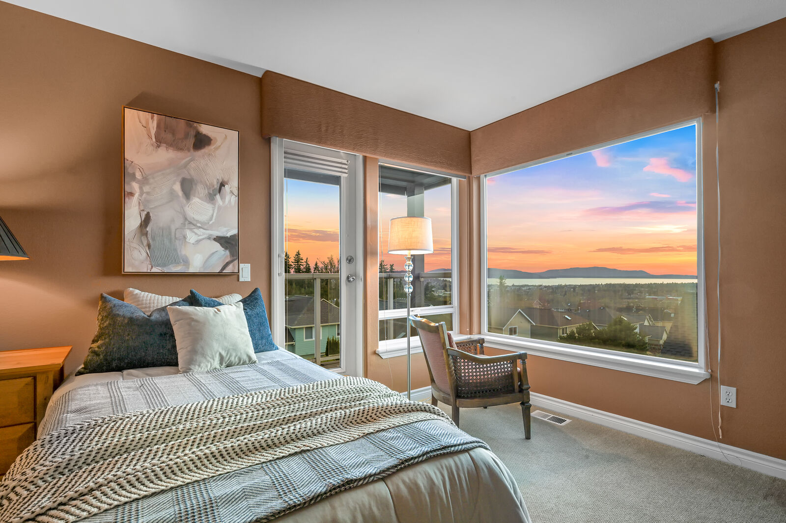 Perched high above Bellingham, this SW facing, 3,456 sqft custom built, one owner home provides picturesque views of the city, Bellingham Bay & the San Juan Islands. Located in the desirable Barkley neighborhood & adjacent to trails, parks & a quick walk to Barkley Village for dinner & shopping. You will be greeted by quality craftmanship, spacious living & family rooms both w/ cozy fireplaces, chefs kitchen & atrium dining room. The lower level is a fully separate room w/ bathroom & wet bar, perfect for exercise, guestroom or office. Outside features a large sundeck perfect for watching sunsets & summer dining. Enjoy a low maintenance, tranquil backyard accented by stone pathways & gorgeous greenery. This is a home not to be missed!
