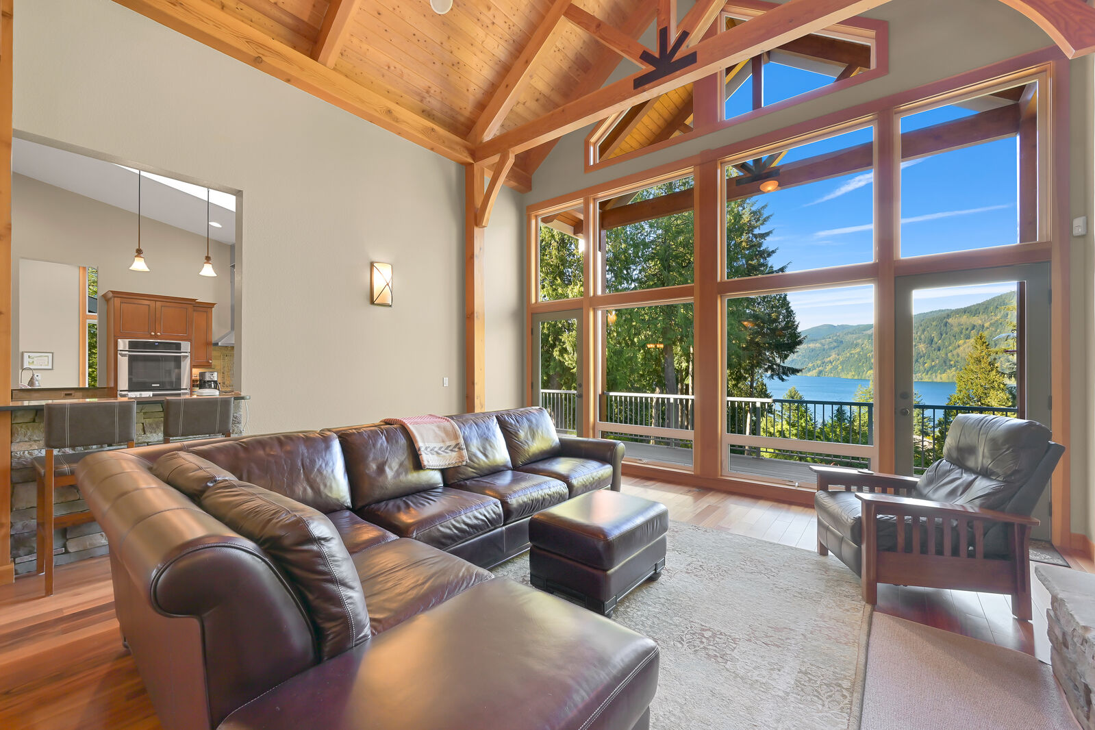 A STORYBOOK SETTING ON LAKE WHATCOM! Arrive through the gate to a long, meandering & paved tree-lined circular drive to your extraordinarily custom 4,600 sq/ft lodge-style estate enveloped by over 4 lush acres. The home flows seamlessly blending indoor and outdoor spaces that embraces nature's beauty. Uniquely all the wood trim and beams were milled from the property. Features include a grand covered entry, two story great room with 18 foot walls of glass, sumptuous primary suite, 3 stone fireplaces, multiple living areas and decks, and so much more. A rare opportunity to acquire a property with the utmost in privacy combined with the fun of waterfront activities on Lake Whatcom. An incredible property and your chance to experience it all!