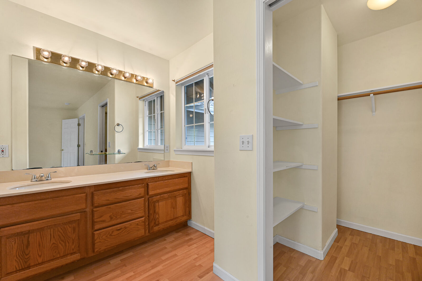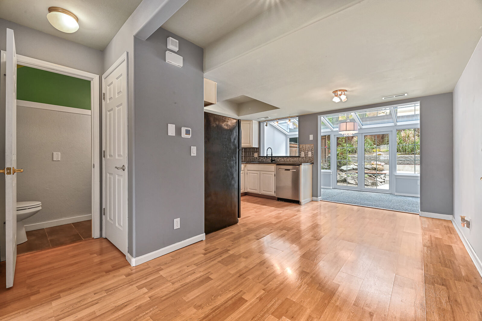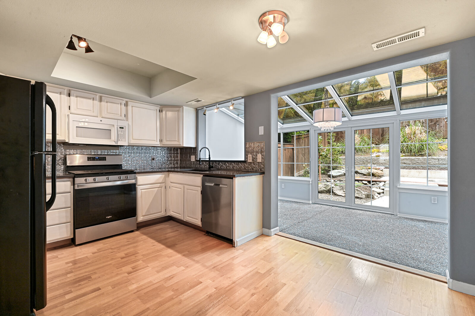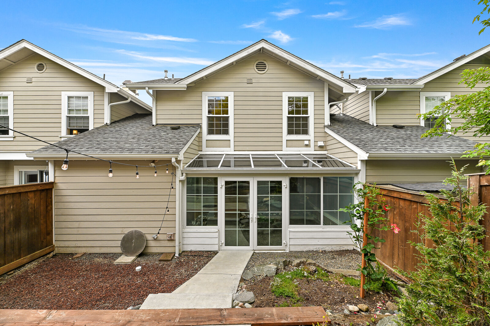 The most affordable opportunity to live on top of Barkley Hill! Great 2 bed/2.5 bath townhome with peek-a-boo bay views, nestled in a cul-de-sac in a quiet residential neighborhood. Designed for privacy and one of the only units with a solarium, creating an additional 135 square feet of light and bright space... perfect for a sitting room, dining room or morning yoga. Kitchen has been updated with a new stove & dishwasher, granite counters & painted oak cabinets. Both bedrooms have ensuite baths with either views of the bay or the beautiful backyard, which is landscaped with a built-in gas fire pit and is fully fenced.Great walkability by road or trails to Barkley Village - packed with restaurants, breweries, coffee shops & entertainment!