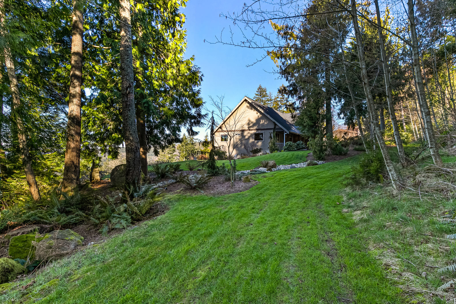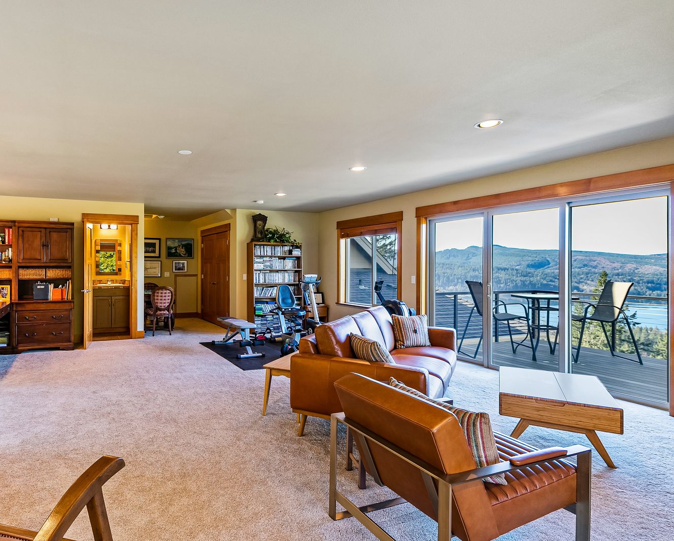 Stunning architecture combined with endless sunset views of Lake Whatcom, Bellingham bay and the San Juan islands. Sitting proud on 5 private, Westerly facing acres with beautiful mature landscaping including a large level yard. This breathtaking 4 bedroom, 3.5 bath 3,500 square foot home features custom craftsmanship with high end finishes with an expansive sun deck. 4th bedroom/bonus room is set up for a Mother In Law suite with separate entrance & deck overlooking views. Located in a very desirable and sought after gated community with over 500 feet of shared waterfront. Very seldom does a home come available in this neighborhood. Enjoy life on top of the world!
