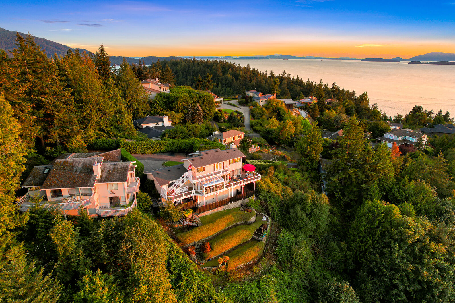 Wake up to PNW beauty every morning with unparalleled 180-degree views of Bellingham Bay, San Juan Islands & the Olympic Mountains. Located on a half-acre lot in the coveted Edgemoor community, this 2,700+ sqft custom home exudes quality craftsmanship & architecture. Bathed in sunlight from numerous windows, also allowing for bay views from every room in this home. Experience true grandeur & comfort in a primary suite that covers the entire second floor, boasting a private deck, cozy fireplace & a luxurious ensuite bath. Enjoy spectacular sunsets from multiple decks, perfectly curated for entertaining on those warm summer nights. All tucked away on a dead end lane offering privacy & serenity. Don’t miss out on the best views in Bellingham!