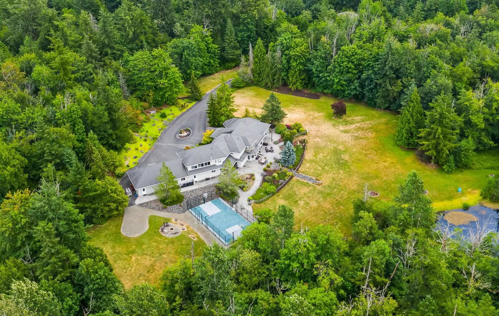 Unrivaled quality and enchanting surroundings lure you into this spectacular estate that is ideally located at the end of a private lane on over 14 secluded acres yet only minutes from restaurants, shopping, theaters, and Starbucks. Years spent in the planning, constructing, and landscaping of a 5,500+ oasis worth coming home to. Features include 4 bedrooms including spacious main floor master suite, 5 bathrooms, open floorplan with multiple living areas including bonus and exercise rooms, gourmet kitchen with two bars and 6 burner Viking range, radiant floor heat, air conditioning, generator, 4-car garage + shop and the list goes on. A true Northwest hideaway, including a sport court and private pond, where luxury and privacy converge!