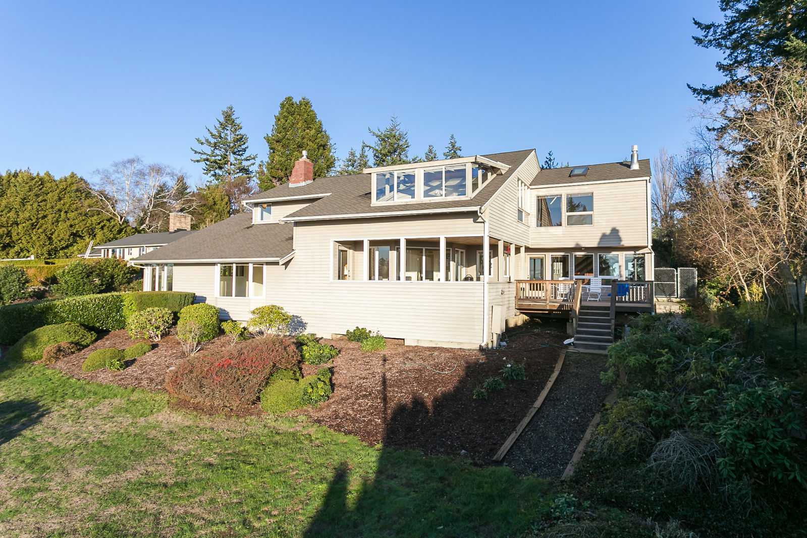 Edgemoor bay & island view home only minutes away from Fairhaven Village. Beautifully landscaped shy 1/2 acre with circular drive. Architecturally designed by Sid Nesbit with almost 4,000 square feet including an attached guest house. Features include curved staircase, large step down living room, office, exercise or bonus room with sauna, multiple covered decks and fenced back yard. Privacy and view… a hard combination to find and this home has both!
