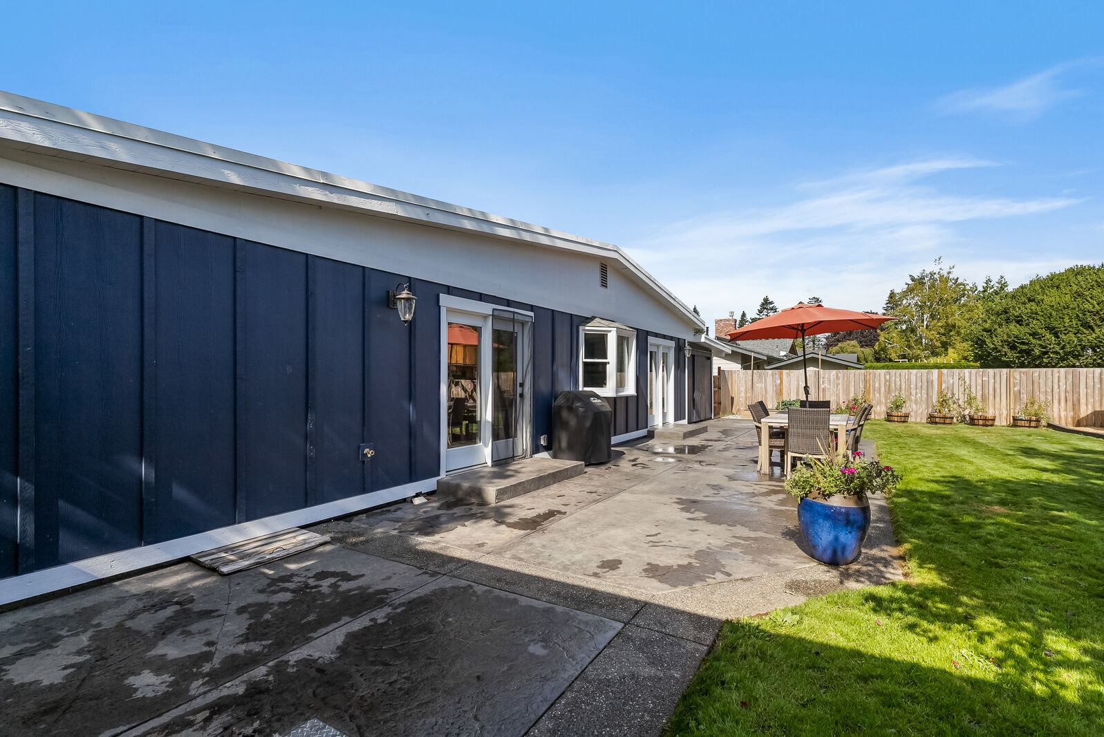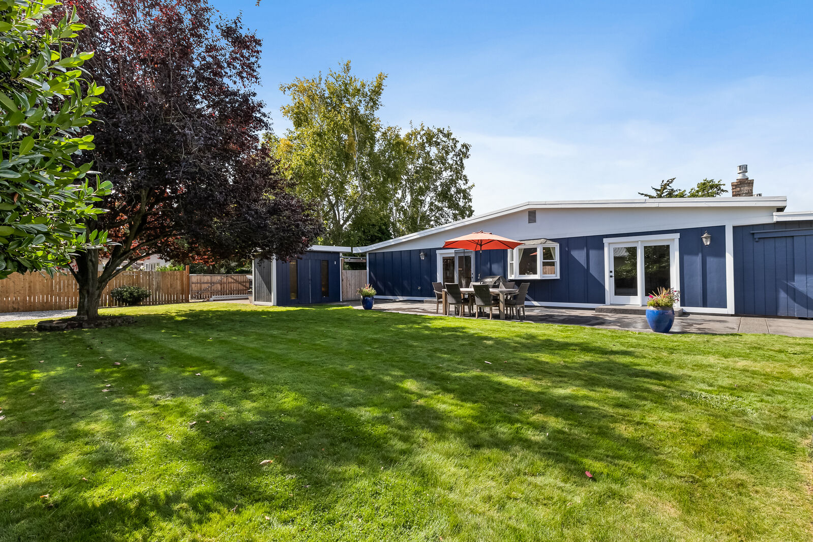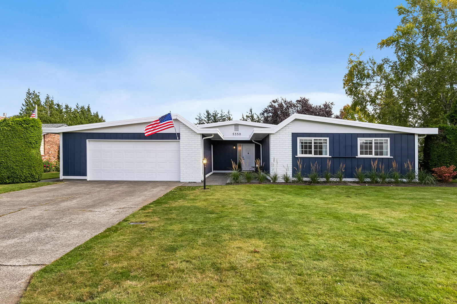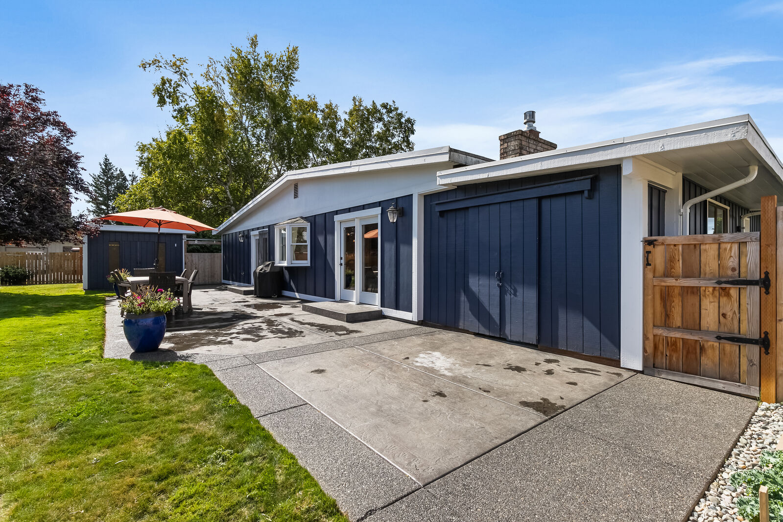 Unique design located on a private 1/4 acre, corner lot! This 3 bed, 1.75 bath has been completely updated with new paint inside and out, new flooring, gourmet kitchen with quartz countertops, remodeled bathrooms and brand new furnace plumbed for A/C. Open floorplan with 2 sets of french doors leading to the 900 square foot patio. Extra finished room with separate entrance, perfect for home office or gym. Large beautiful backyard surrounded by mature landscaping. Amazing mid-county location, just 10 mins to Bellingham.