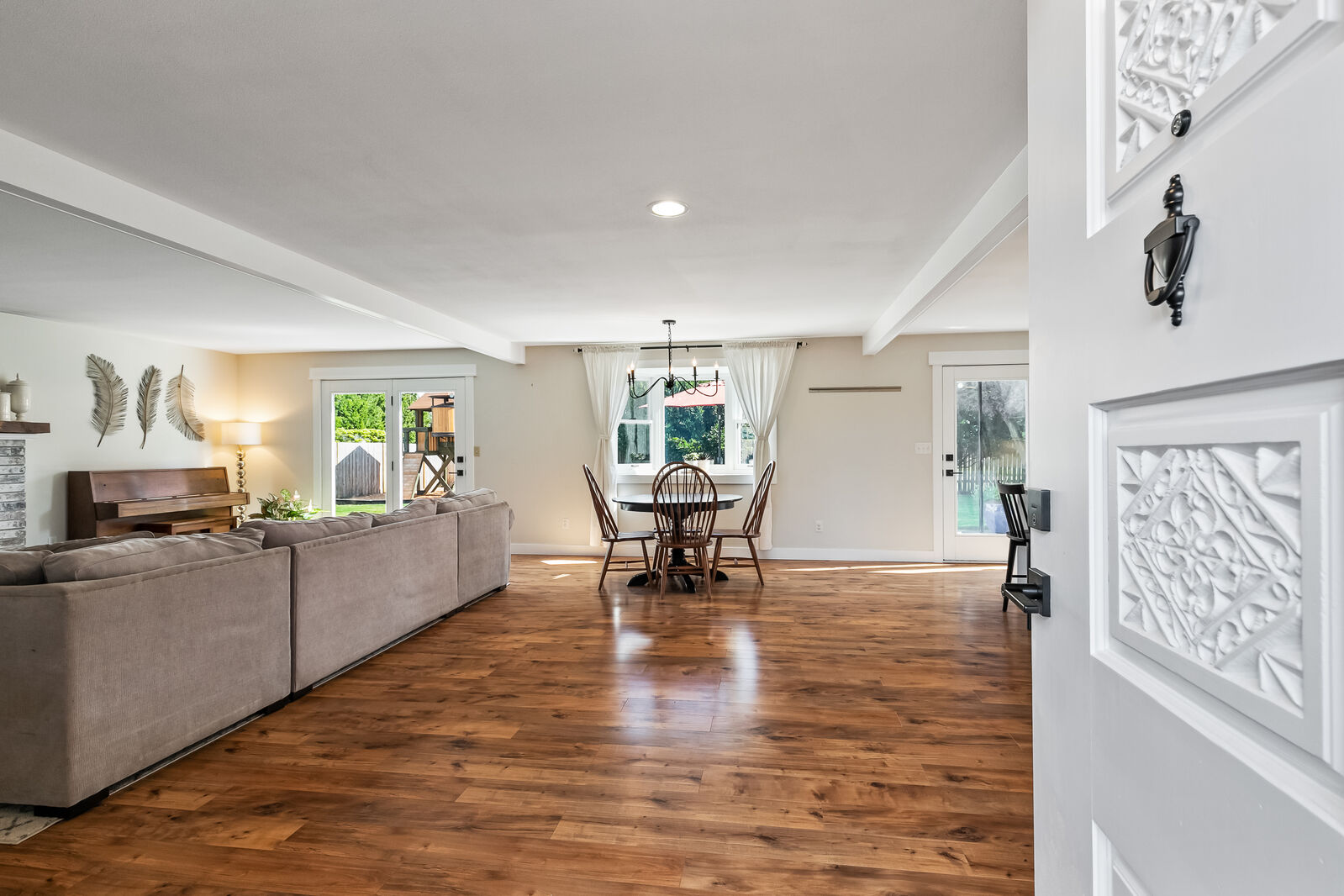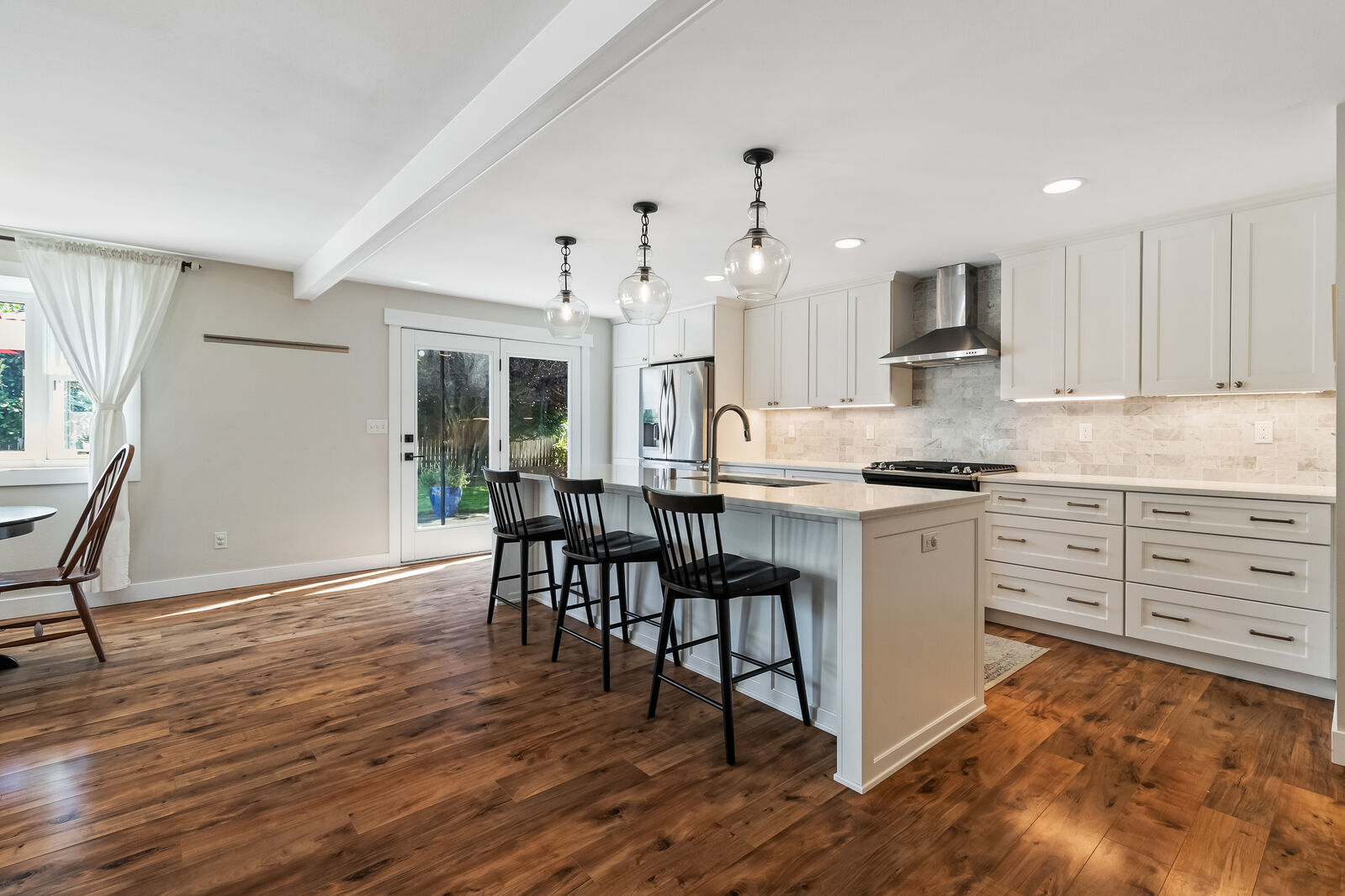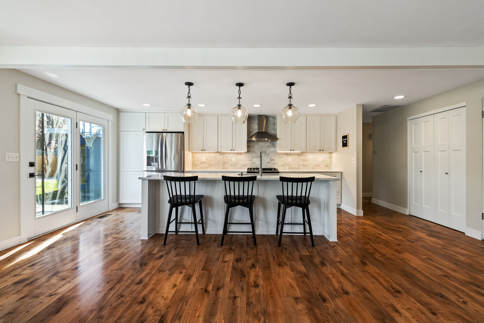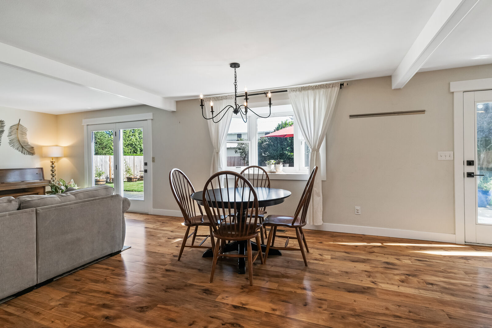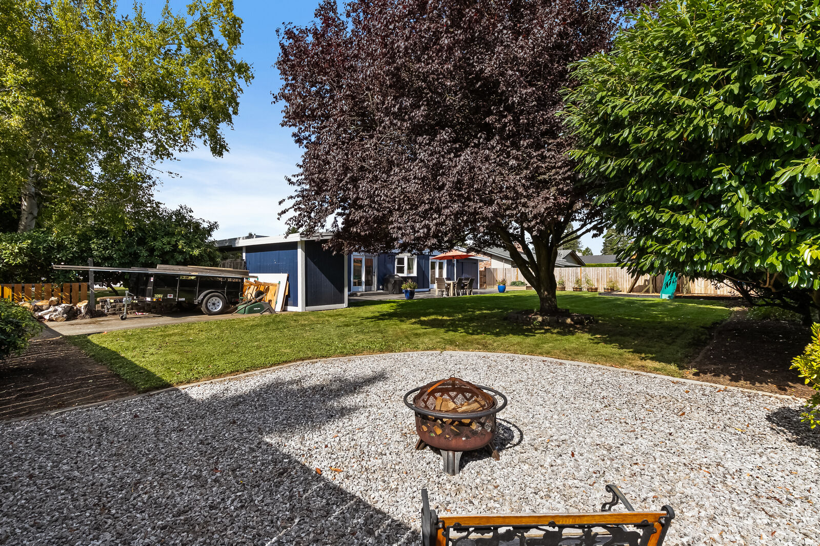 Unique design located on a private 1/4 acre, corner lot! This 3 bed, 1.75 bath has been completely updated with new paint inside and out, new flooring, gourmet kitchen with quartz countertops, remodeled bathrooms and brand new furnace plumbed for A/C. Open floorplan with 2 sets of french doors leading to the 900 square foot patio. Extra finished room with separate entrance, perfect for home office or gym. Large beautiful backyard surrounded by mature landscaping. Amazing mid-county location, just 10 mins to Bellingham.