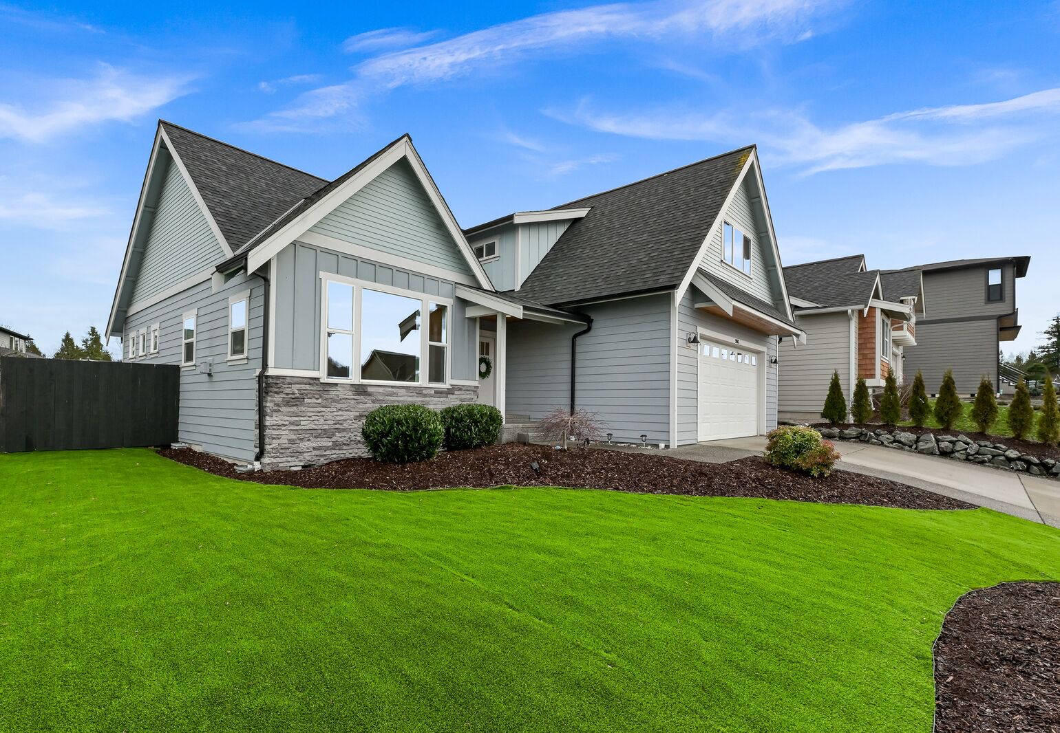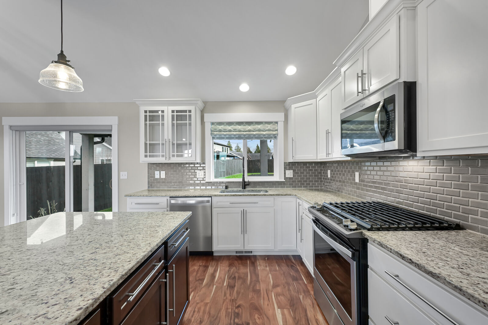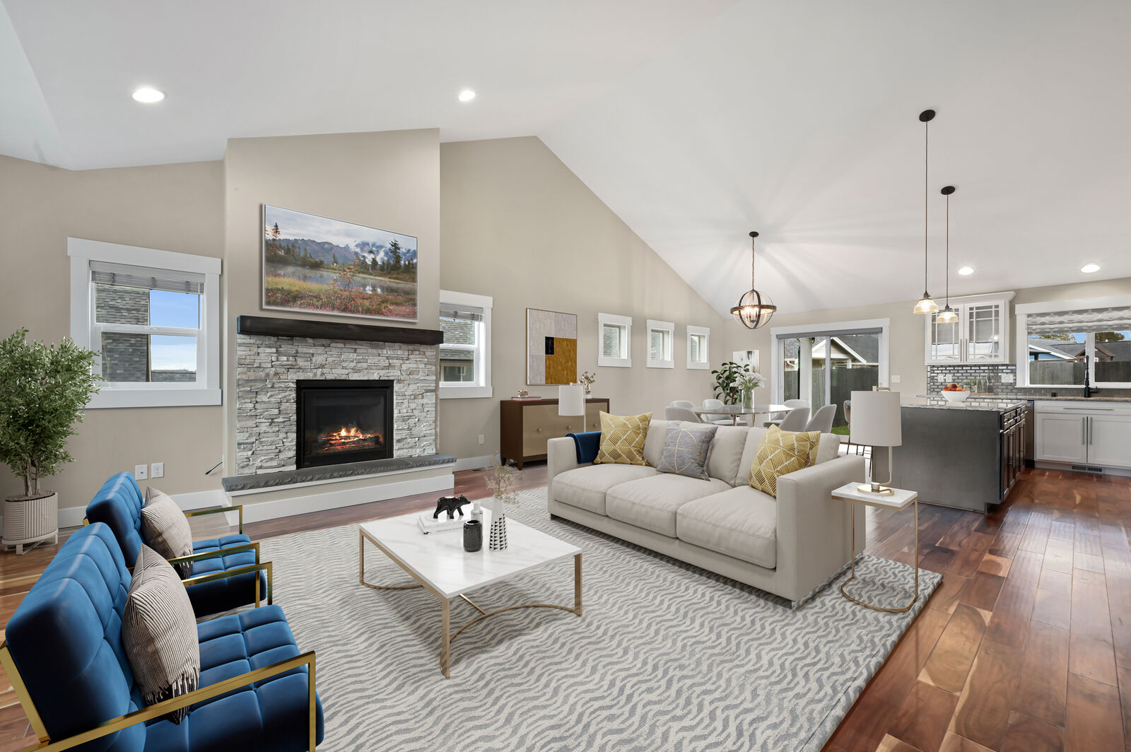 BETTER THAN NEW! Highly upgraded 4 bedroom home with nearly 2,100 square feet located in the very desirable MEADOWS neighborhood. An open concept design that lives very spacious and is nice and bright with lots of windows, vaulted ceilings, stone/gas fireplace, and a huge chef's kitchen with a large island. Hard to find floorplan with the primary bedroom on the main floor which opens to a big, covered patio overlooking the back yard. Extra features include central air conditioning, custom blinds, and granite counters throughout. Located on a large, prominent, and beautiful lot with a large level fully fenced back yard that is flooded with sun. This home offers so much and is definitely one not to miss!