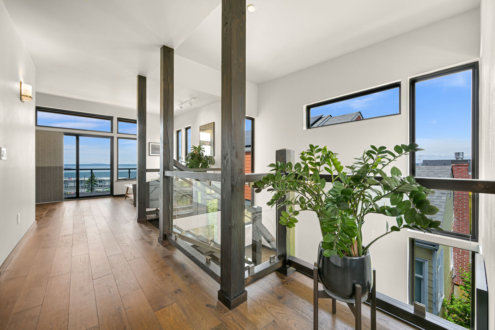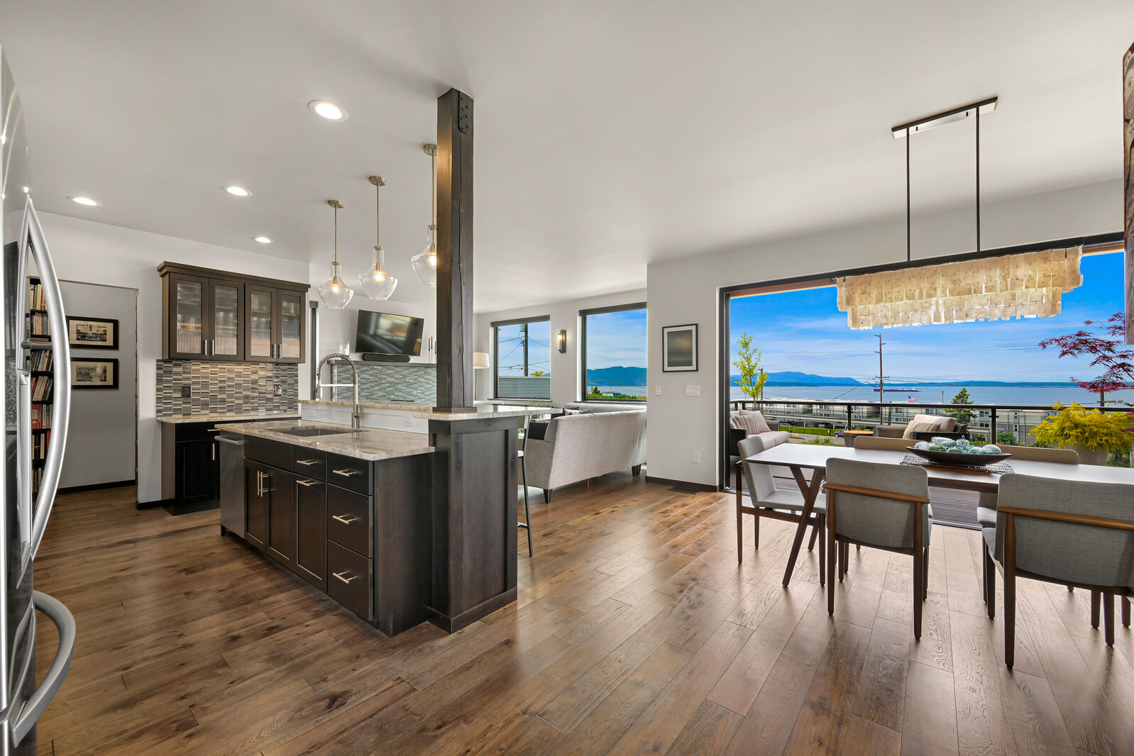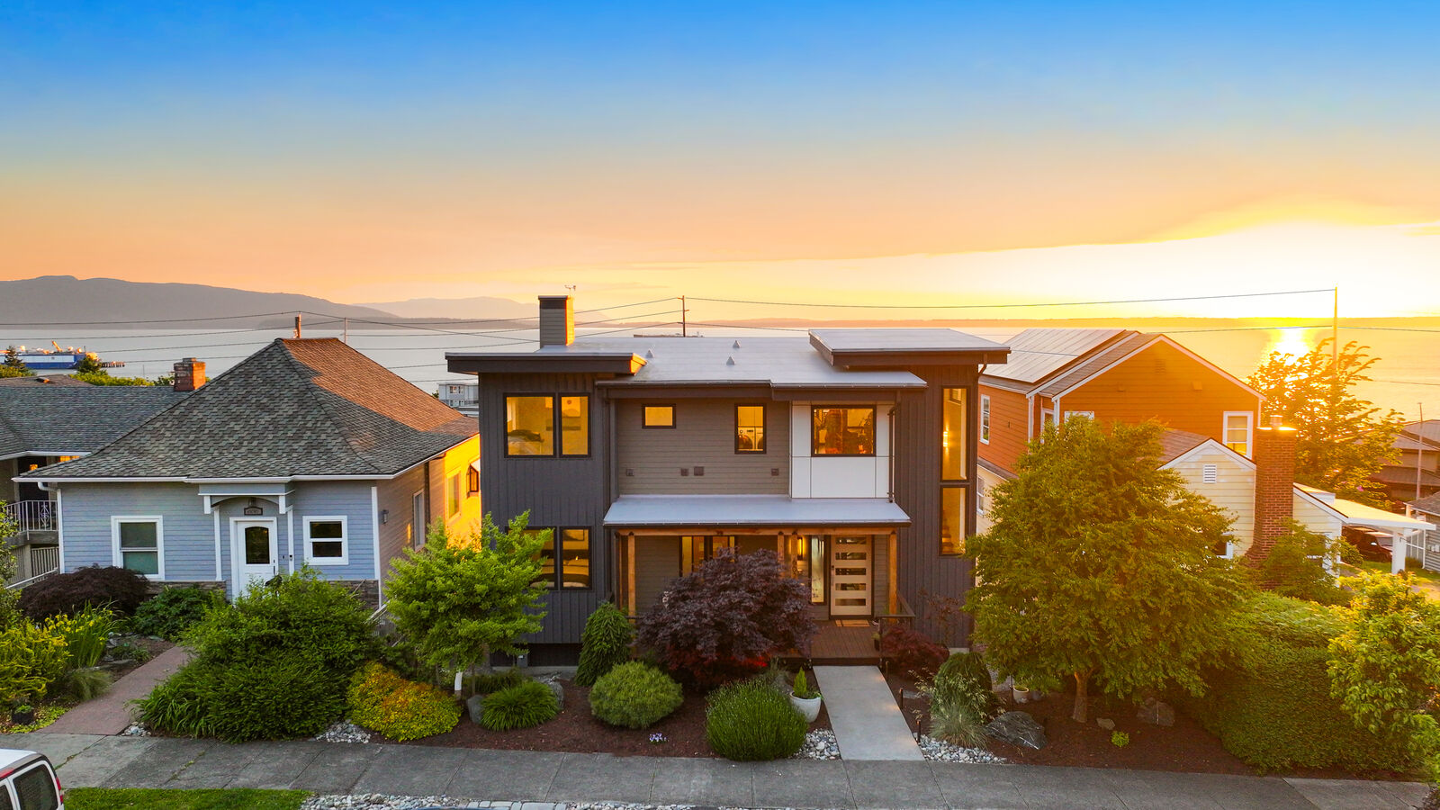 One of very few newer custom built homes on sought after South hill and only steps away from Boulevard Park, Taylor dock, and Fairhaven Village. This beautiful bay view home was designed by RMC Architects and is nearly 3,000 square feet, West facing and bathed in natural light featuring a folding glass wall opening to an outdoor living area, floating stair case designed for a future elevator, multiple fireplaces including one in the primary suite, and a sky lounge with an additional deck. Enjoy extra income with a rare legal ADU that has its own address. accessed off the alley, with dedicated parking, and a private sunlit courtyard. Imagine life with daily sunrise to sunset walks on the dock and dinner in Fairhaven...all at your doorstep!