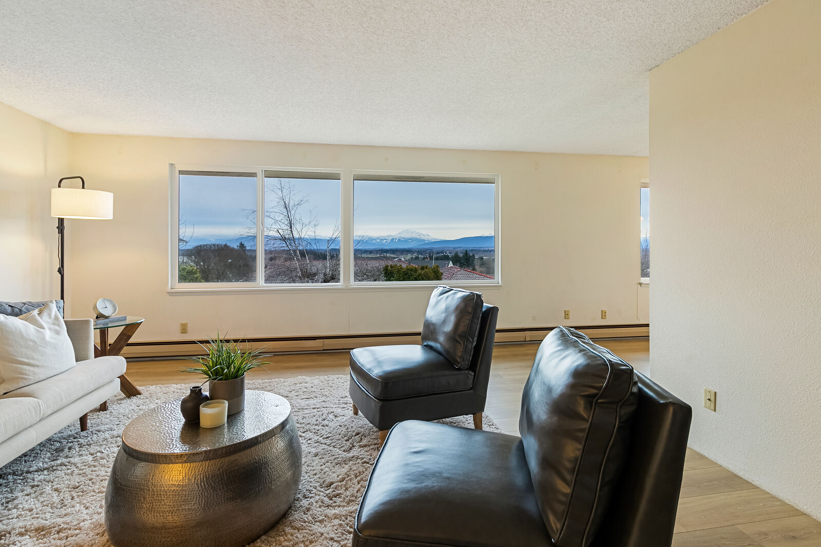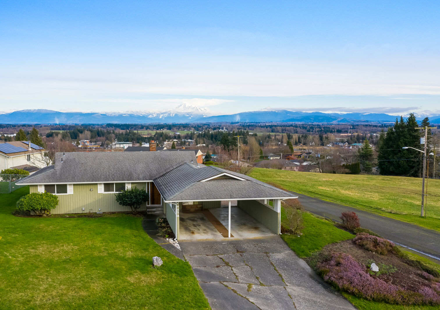 Amazing Mt. Baker vista views from this corner lot rambler with a daylight basement. First time on the market! One owner and thoughtfully maintained for over 50 years. Situated on over acre, this home boasts a great floorplan with 3 bedrooms (including master ensuite), 2.5 baths, brand new flooring throughout, newer windows, beautiful rock fireplace, radiant heat/wall radiators and unobstructed mountain views from nearly every room. Plus endless opportunities for basement use... extend living space or create possible mother-in-law. Includes separate ground floor entrance, bedroom, bath, fireplace and an oversized one car garage. Dont miss this unique opportunity - these special properties dont come on the market often!