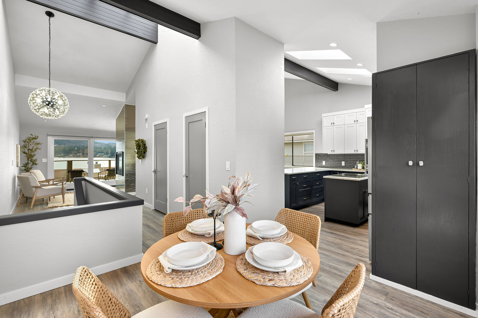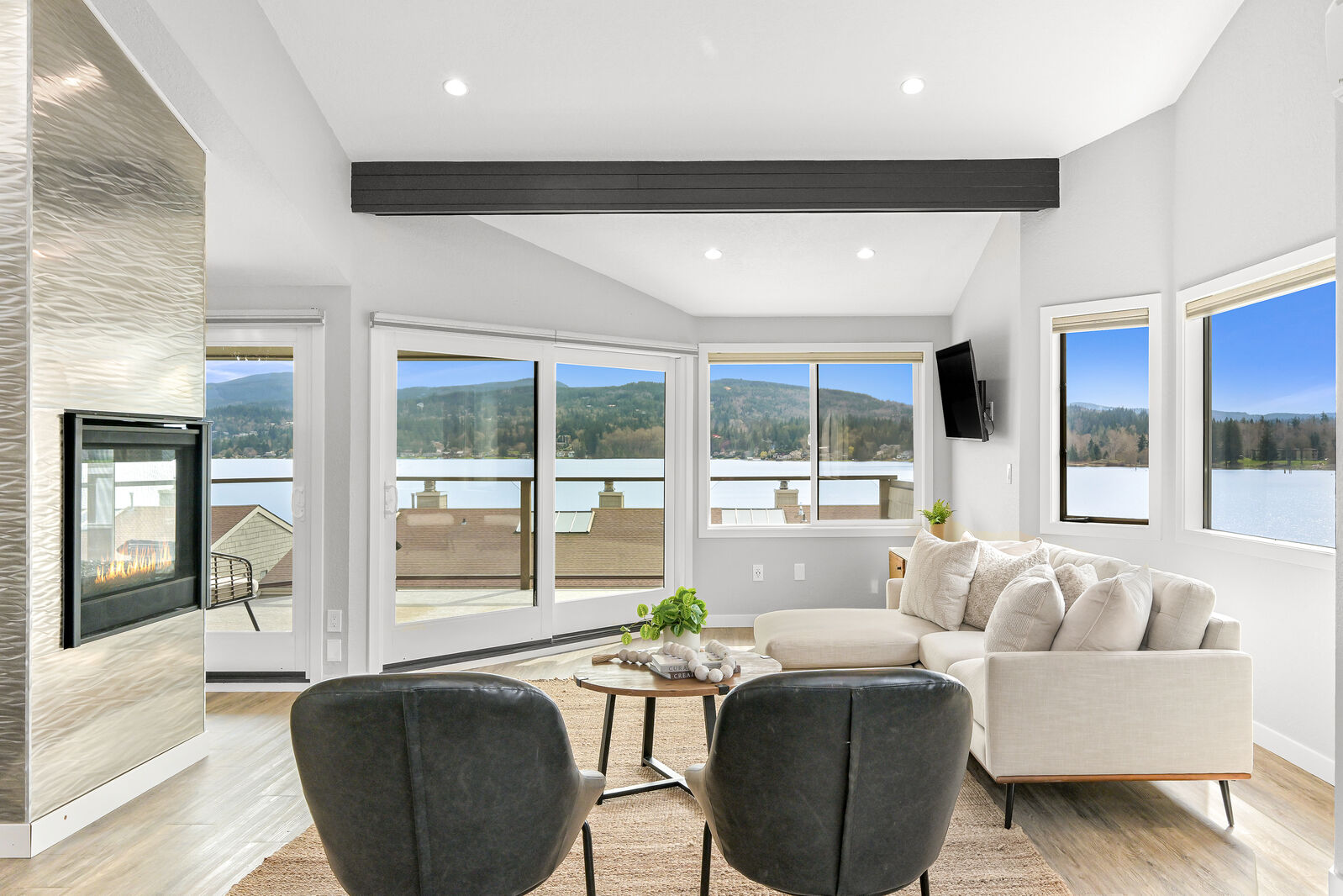 Don’t miss this rare opportunity to own at Lakeside North - Lake Whatcom’s premier condominiums, located on sunny Northshore Drive, close to town & across the street from two new restaurants and store . This is a 3 bedroom, 3 bath, South facing end unit that's flooded with sun, and includes a private boat slip. It's the largest unit in the complex with nearly 2,500 square feet, two massive private sun decks a private 2-car carport. Completely remodeled throughout featuring a brand-new kitchen, bathrooms, flooring throughout, fireplace, new trim and doors, modern lighting, and upgraded hardware—every single detail has been thoughtfully refreshed! Other features include a wall of windows facing West for light, vaulted beamed ceilings, multiple skylights, wet bar & many versatile interior spaces that can be used for a den, gym, media room, office, bunk room... you name it! Be on vacation year-round & enjoy the lake lifestyle at half the cost without the maintenance of a single family home!