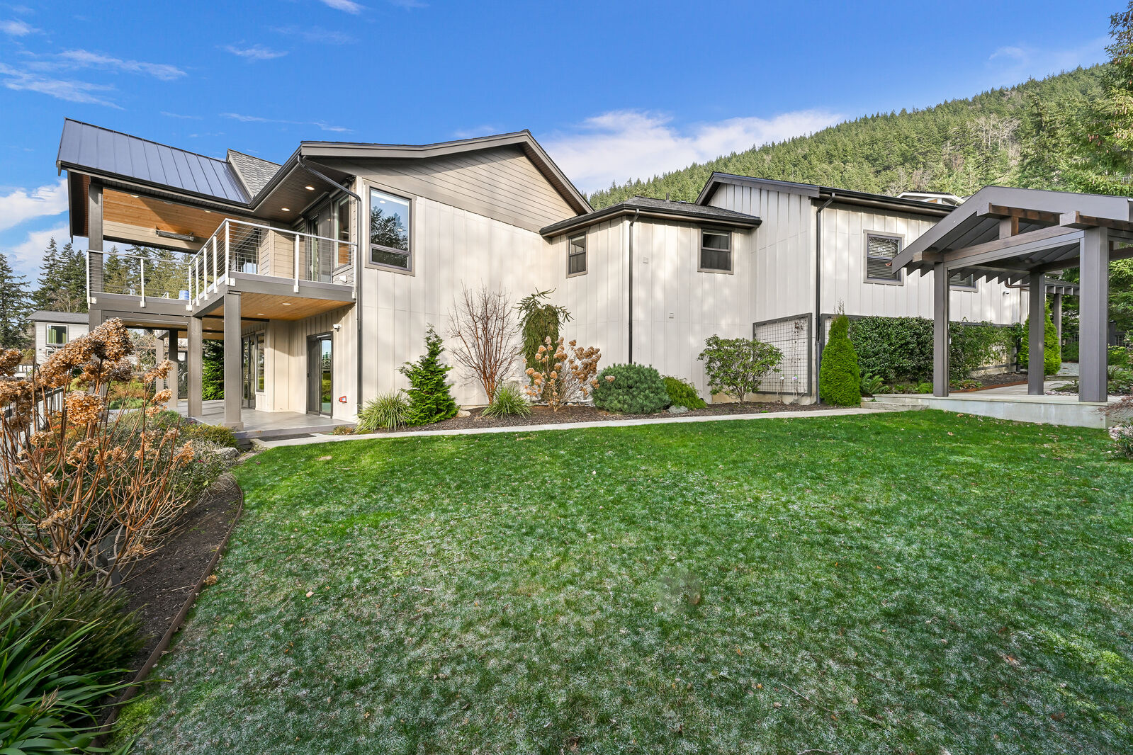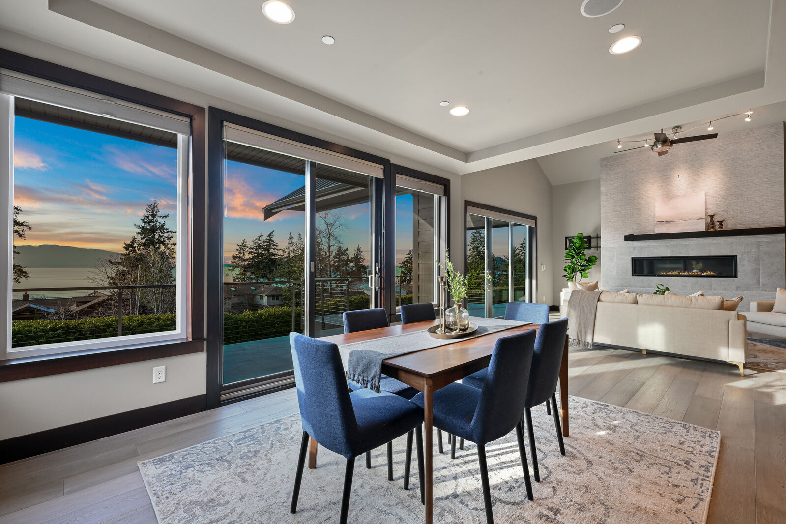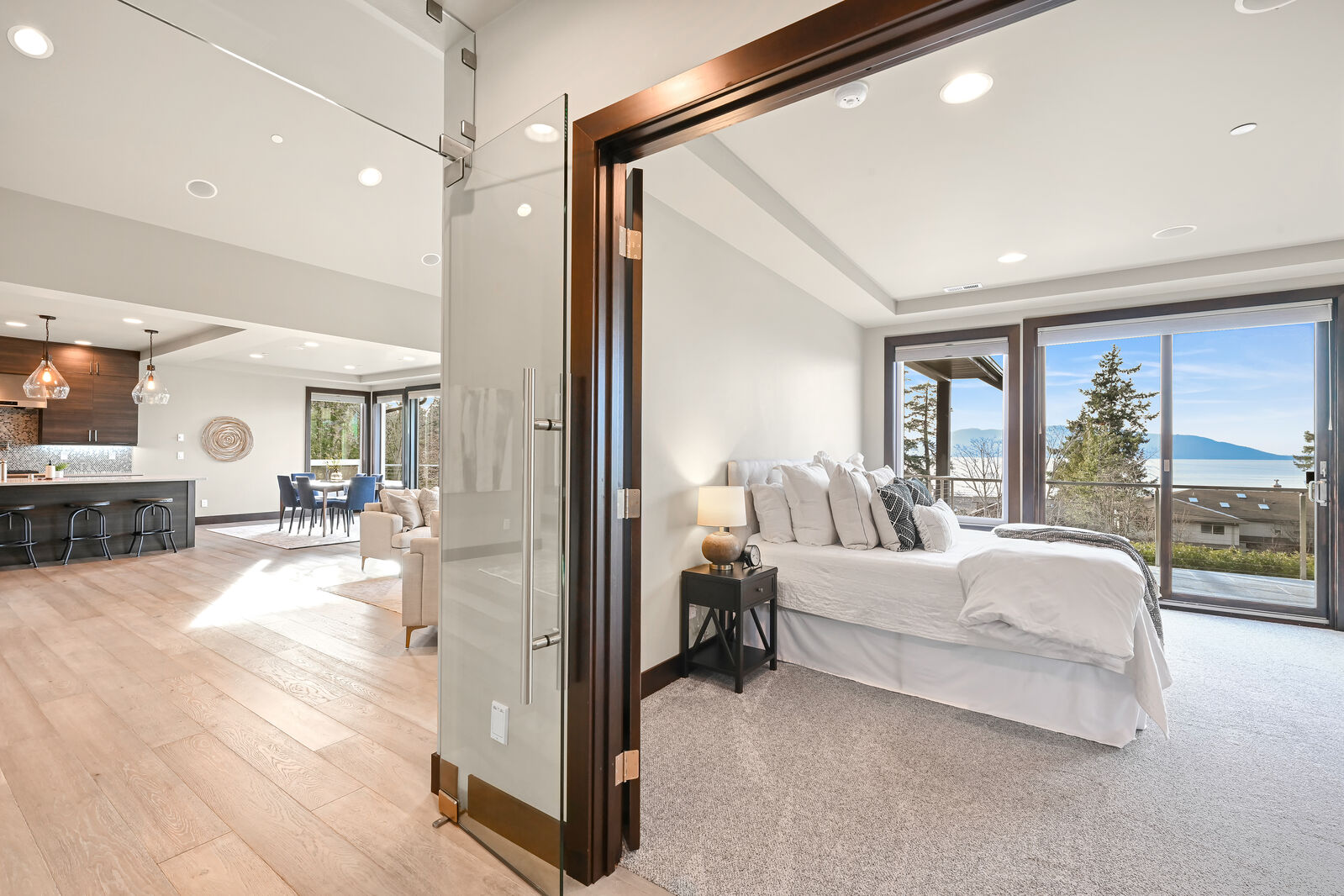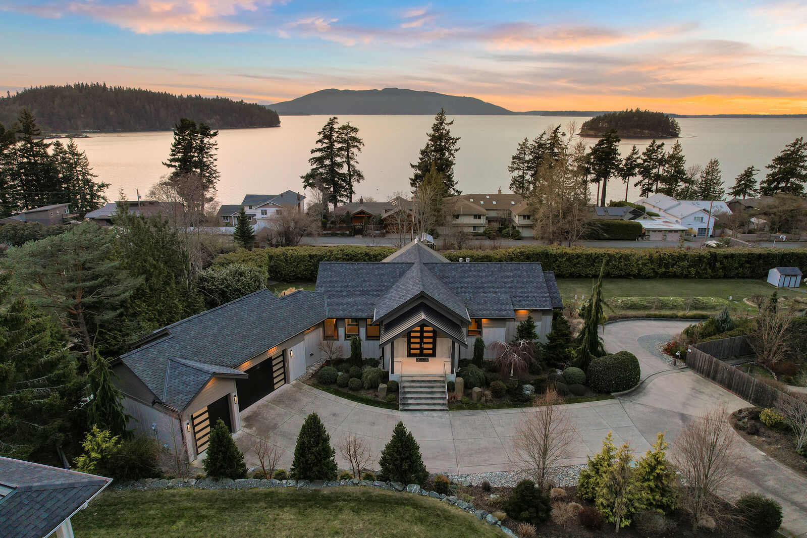 Endless sunsets will never grow old from this PNW Modern Masterpiece capturing 180 degree views of Chuckanut Bay & the San Juan Islands. Style, substance, & superior craftsmanship only begin to describe this generously appointed home located close to Fairhaven, trails, and only a 5 minute walk to a private beach with boat storage. Over 4,400 sq ft with walls of windows, plus nearly 1,000 square feet of heated covered deck and patio, and an oversized 3 car garage. Main level owners suite with spa like bath and two additional full suites, all with bay views. Modern & refined with attention to detail, clean lines, stunning finishes, and 2/3 acre of impeccable landscaping elevates to resort like living. This home is definitely one not to miss!!
