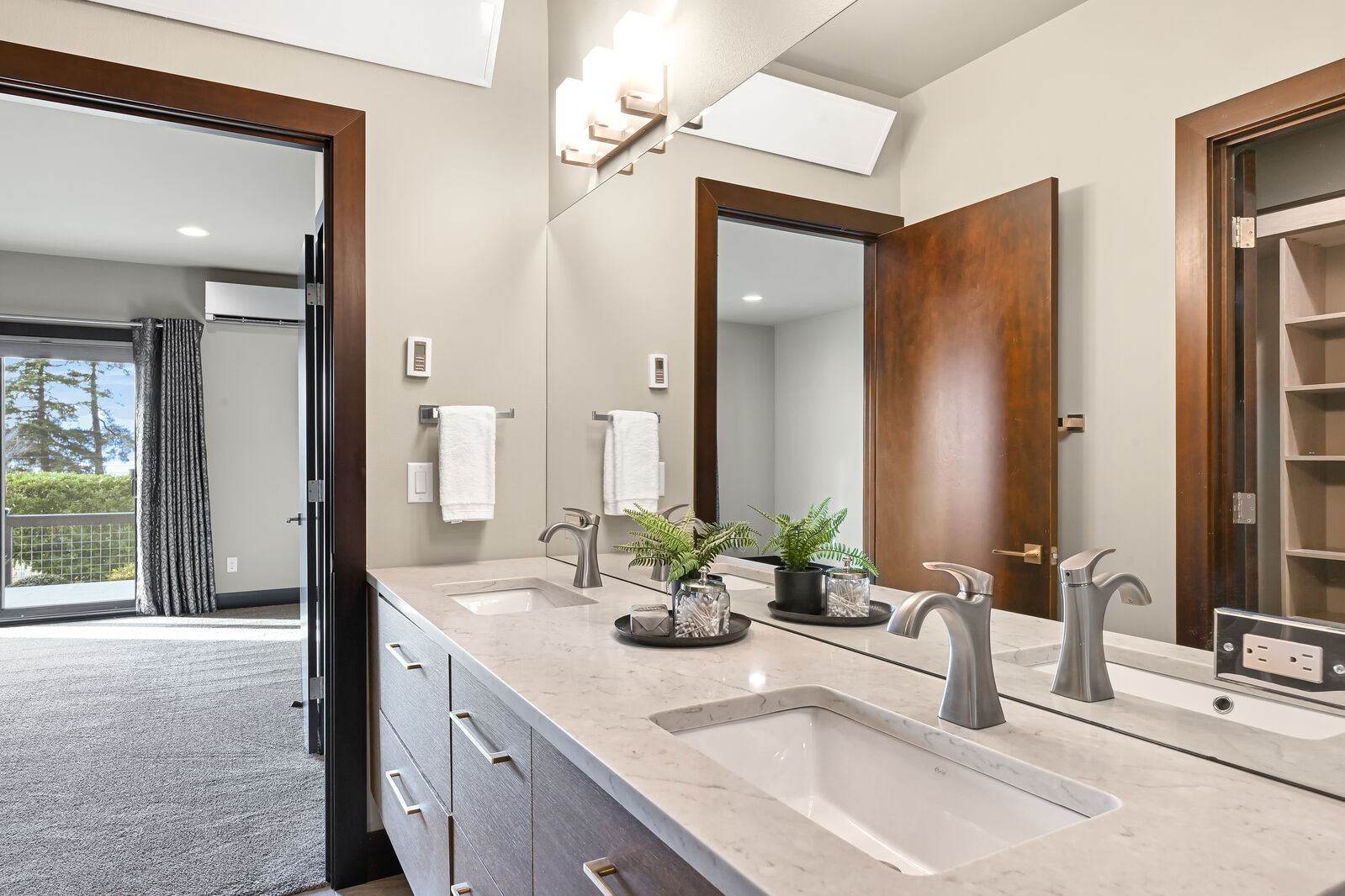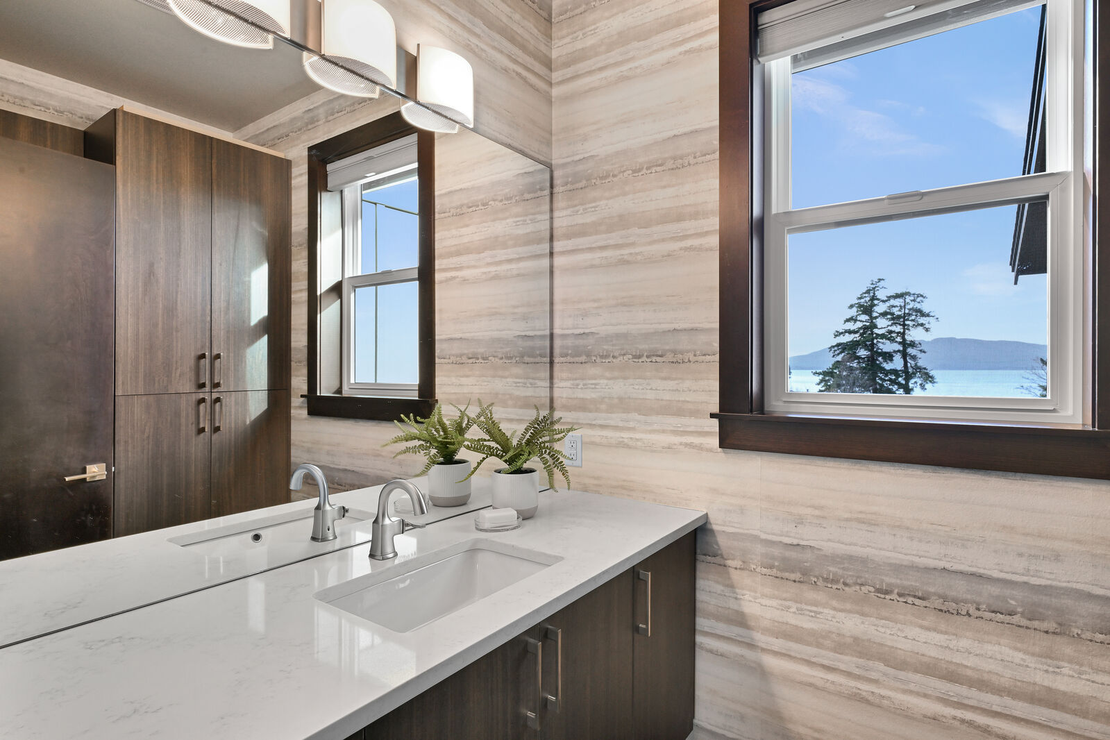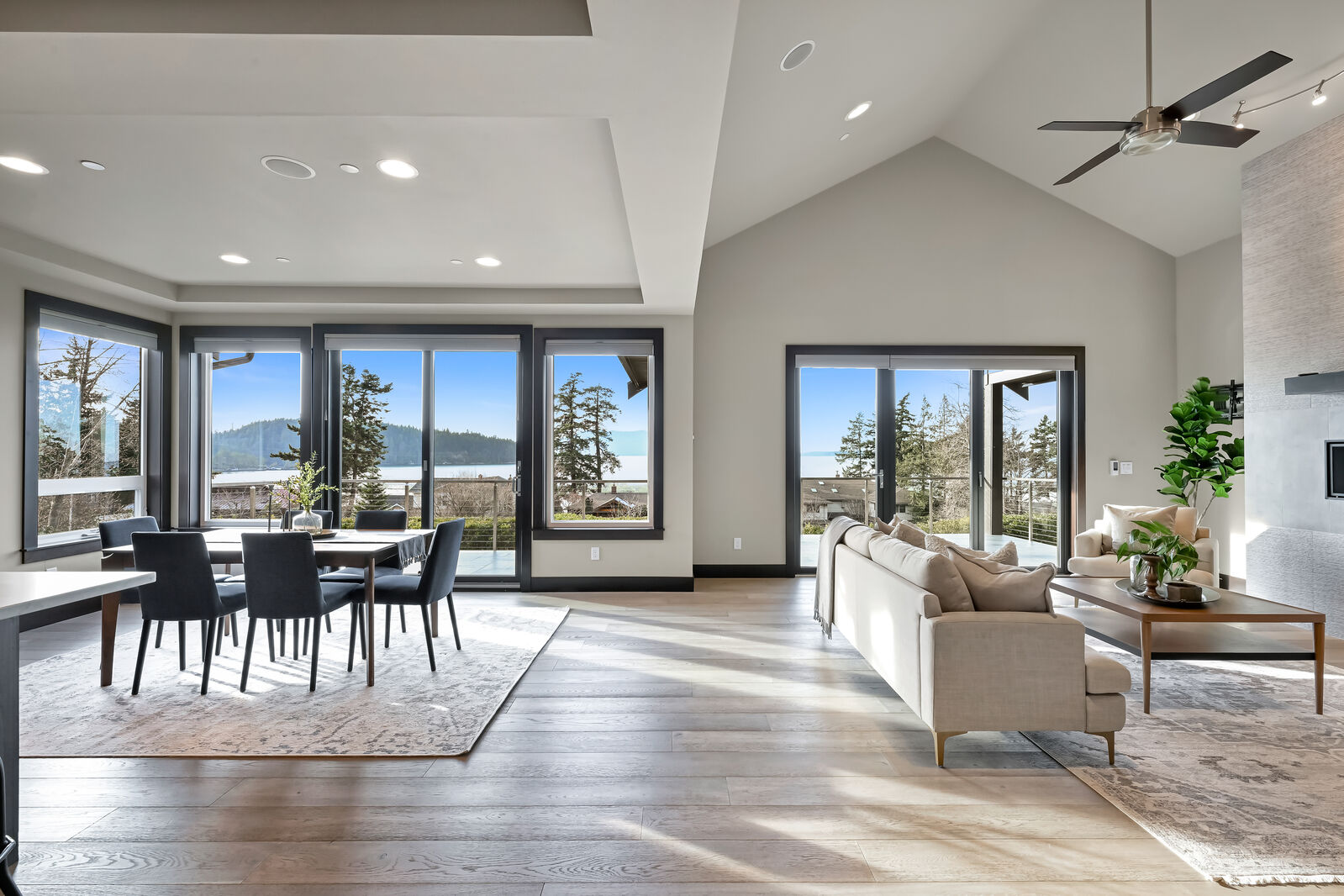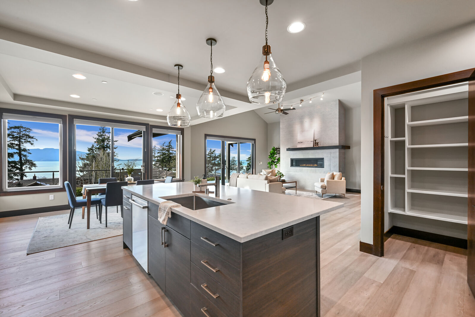 Endless sunsets will never grow old from this PNW Modern Masterpiece capturing 180 degree views of Chuckanut Bay & the San Juan Islands. Style, substance, & superior craftsmanship only begin to describe this generously appointed home located close to Fairhaven, trails, and only a 5 minute walk to a private beach with boat storage. Over 4,400 sq ft with walls of windows, plus nearly 1,000 square feet of heated covered deck and patio, and an oversized 3 car garage. Main level owners suite with spa like bath and two additional full suites, all with bay views. Modern & refined with attention to detail, clean lines, stunning finishes, and 2/3 acre of impeccable landscaping elevates to resort like living. This home is definitely one not to miss!!
