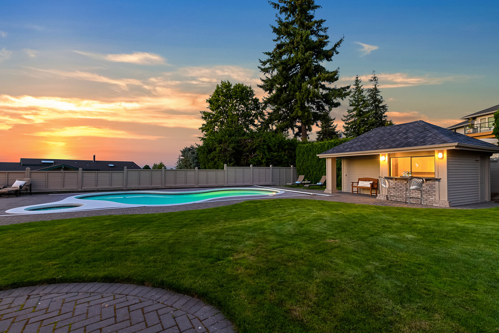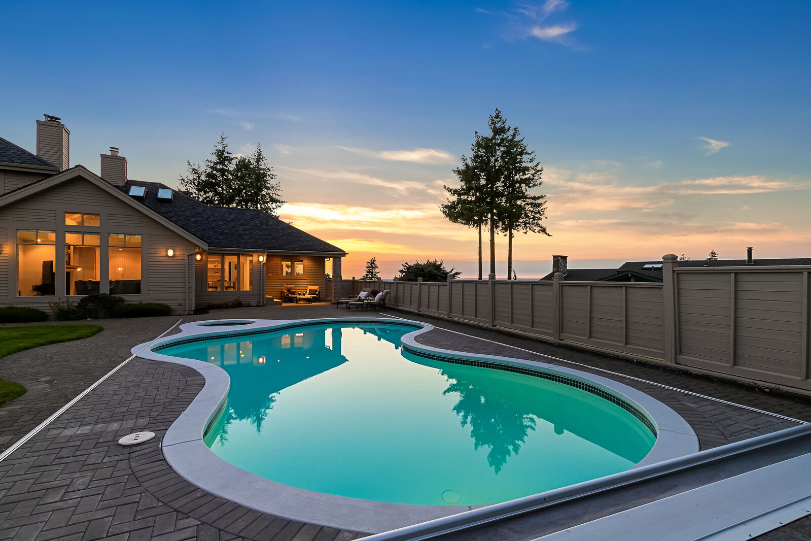 Never hear the words I'm bored again! Timeless architecture and resort living lies just beyond the front door of this 5,000 sq ft custom-built bay and city view home. An entertainer's paradise on over 1/3 acre with an inviting pool and hot tub, cabana with bath and kitchenette, lighted sport court and play structure. Light and airy, flooded with award-winning sunsets enhanced by walls of windows. Spacious main floor master suite, chef's kitchen and multiple living spaces. Not just a home, but an experience!