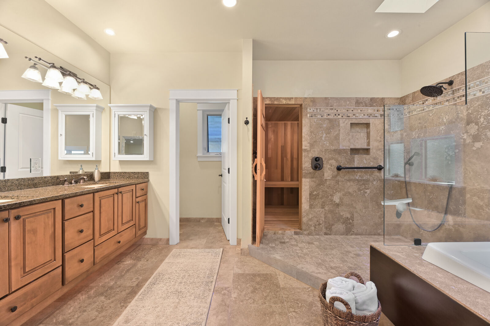 Exquisite 5,338 sq/ft home in famed Semiahmoo Resort's most desirable gated neighborhood, Boundary Ridge. Live where you play with only a short bike ride or walk to the resort hotel, beautiful beaches, marina & an Arnold Palmer designed golf course. This home boasts a chef's kitchen, gorgeous primary suite, plus two other en-suites, office, exercise room & bonus room. Enjoy unsurpassed quality with Heart Pine wide plank flooring, furniture grade cabinets & extensive millwork with attention to every detail. Other features include 3 indoor fireplaces & a covered patio with an outdoor fireplace. The upper floor includes a spacious room for entertaining with a wet bar & large inviting deck that captures that filtered bay view. ONE NOT TO MISS!