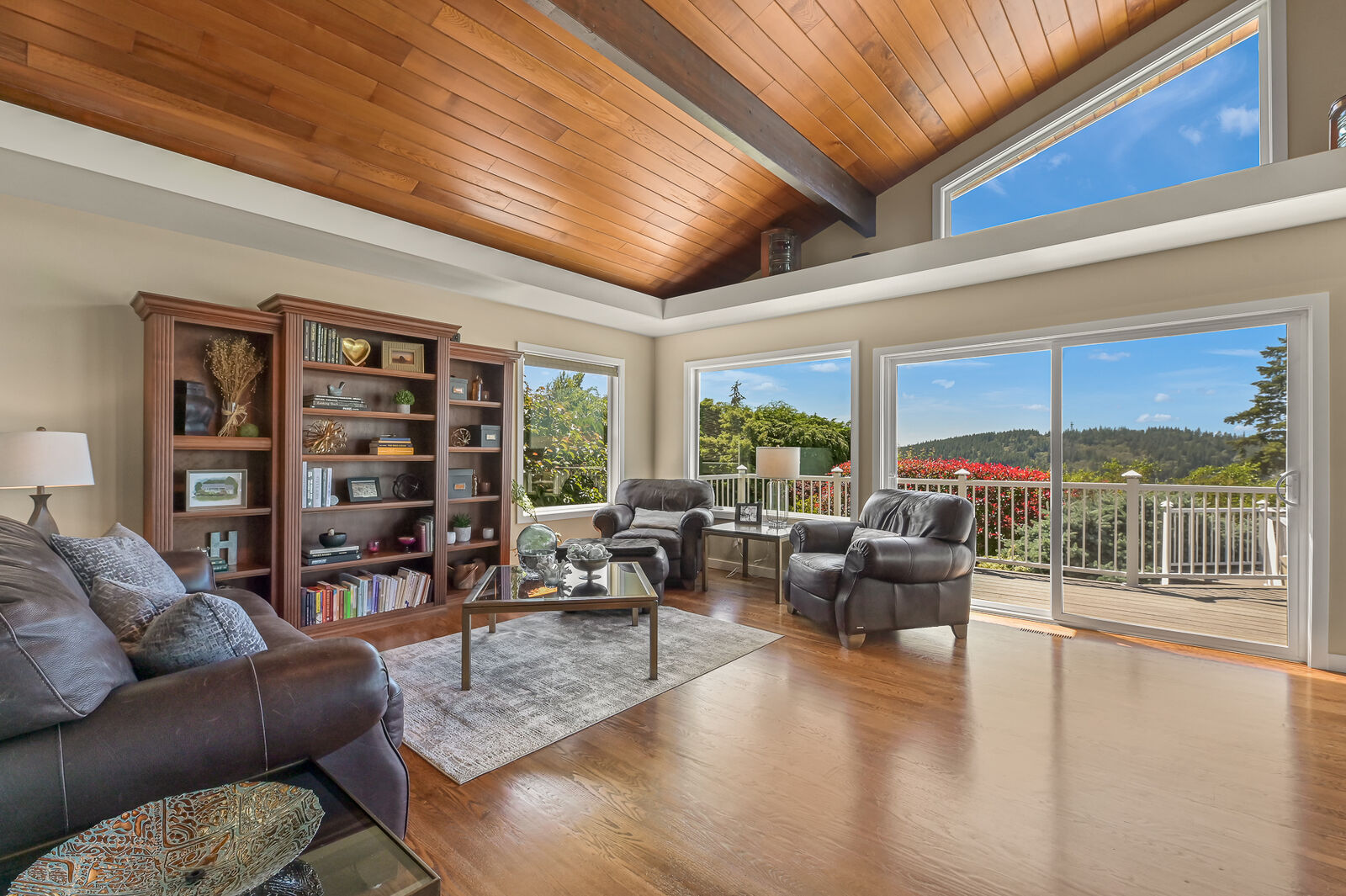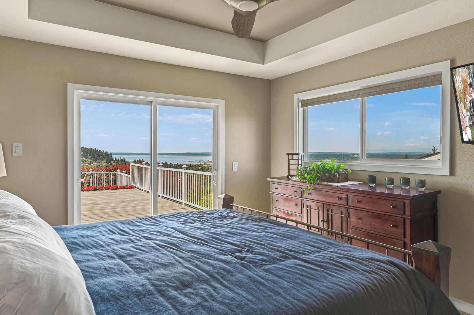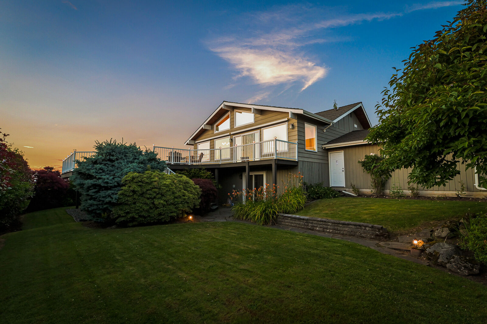 View is an understatement for this home! Enjoy sitting on your massive deck high atop Toledo hill with dramatic views of Bellingham Bay, the islands, and the Canadian mountains. Tastefully remodeled with solid oak flooring, custom cherry and mahogany cabinetry, cedar ceilings, spa like primary bedroom bath, an impressive entryway and the list goes on. This home lives extremely well, elegant but casual with comfort and style being the focus. Beautiful, manicured gardens with the ultimate in privacy, perfect for a summer party. Conveniently located, only minutes from town but feels like worlds away!