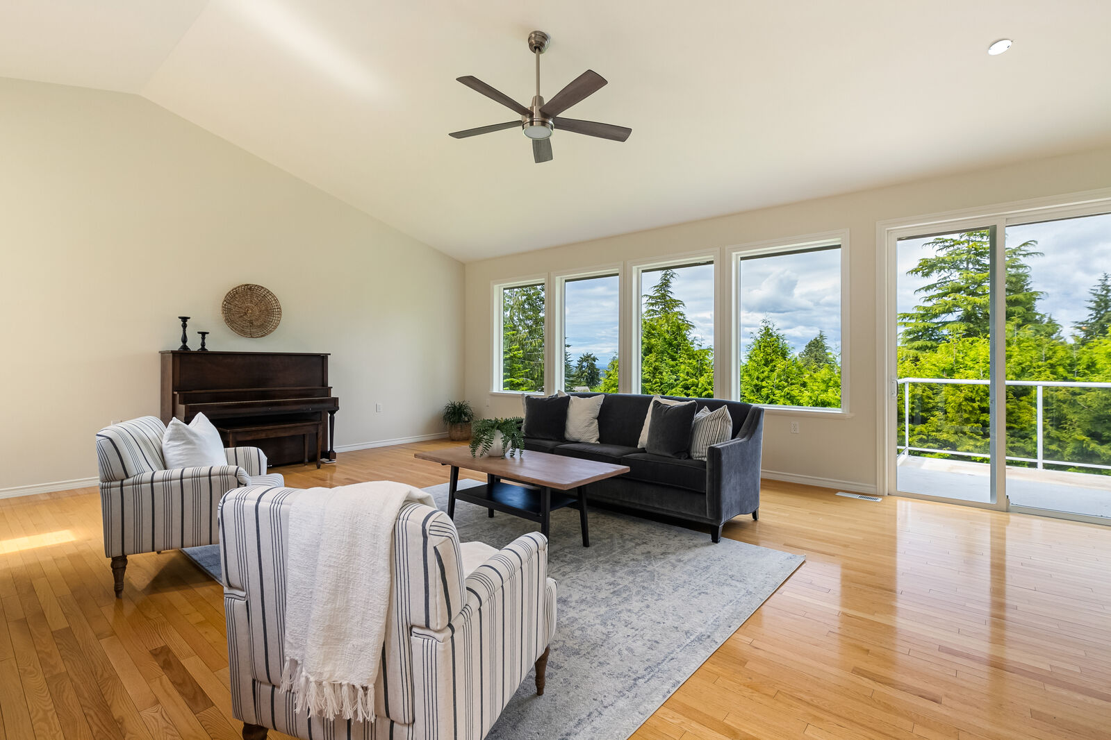 It starts with location! The owners searched for a year to find this premium 1/4 acre lot, high atop conveniently located Puget Hill, to design and build their dream home. Spacious rooms throughout with over 2,300 square feet on the main floor, plus another 1,000 square feet on the lower level AND an additional 1,548 square feet unfinished which is perfect for media, gym, bedrooms, shop and/or ??? Many custom features, including 7 skylights, extensive hardwood, massive deck & patio, over 900 sq/ft 3 car garage & shop, plus more. New interior paint & carpet throughout, plus impeccable landscaping, along with a hard to find private and level back yard makes this house move-in ready and checks all the boxes. First time offered on the market!