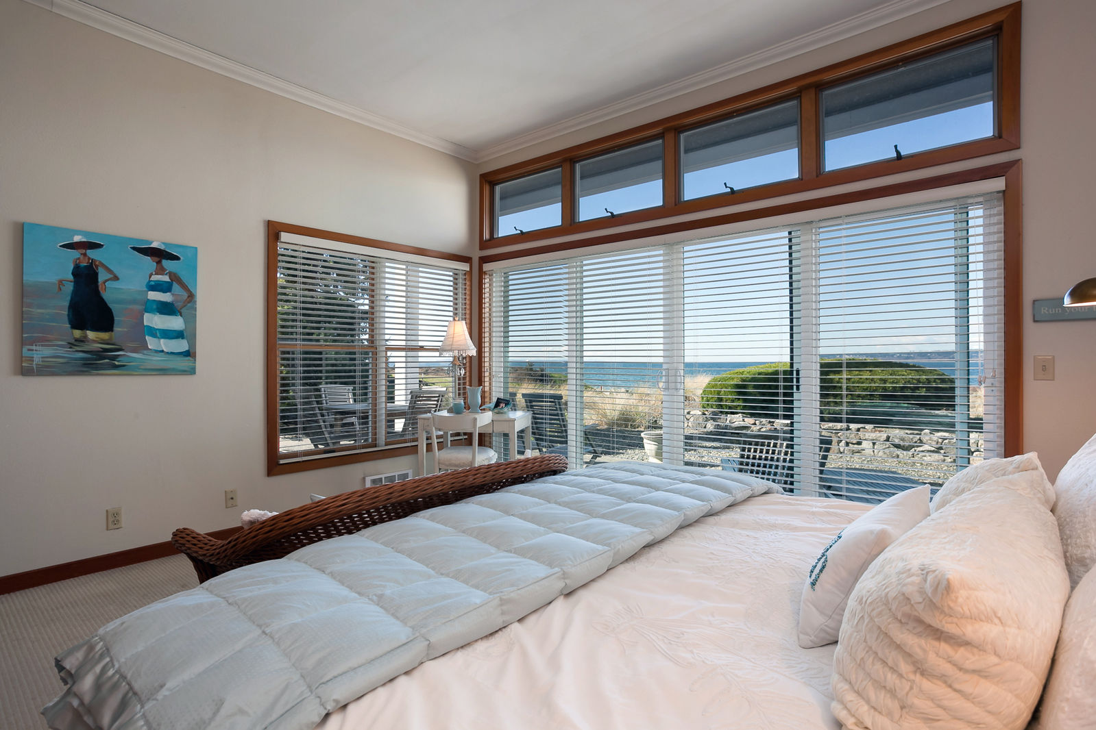 Highly sought after, ground floor, south-end location at Beachwalker Villas. Enjoy the lifestyle of waterfront living only steps to the water's edge. Features include south-facing side wall of glass for maximum sunlight, western exposure for endless views and spectacular sunsets, a fireplace and two patios. Miles of waterside trails, adjacent to 4-star Semiahmoo Resort and Spa, 300 slip Marina, 2 highly ranked golf courses and only miles to Canada. Enjoy the lifestyle!