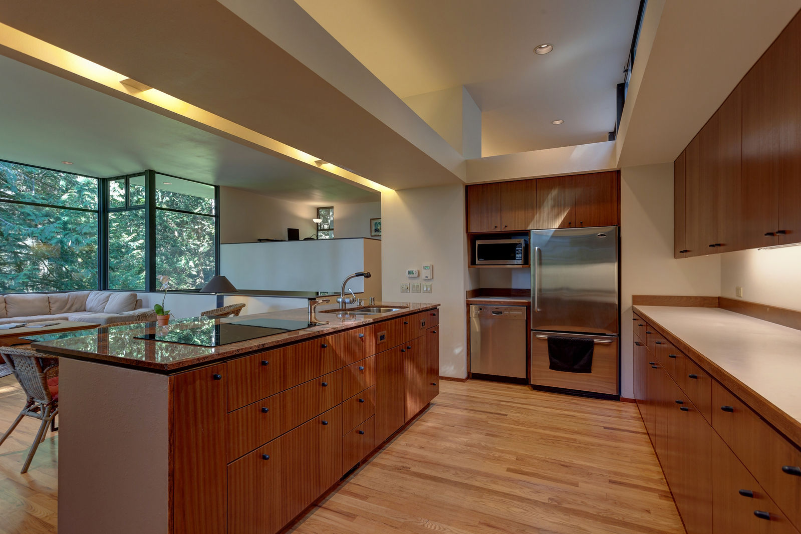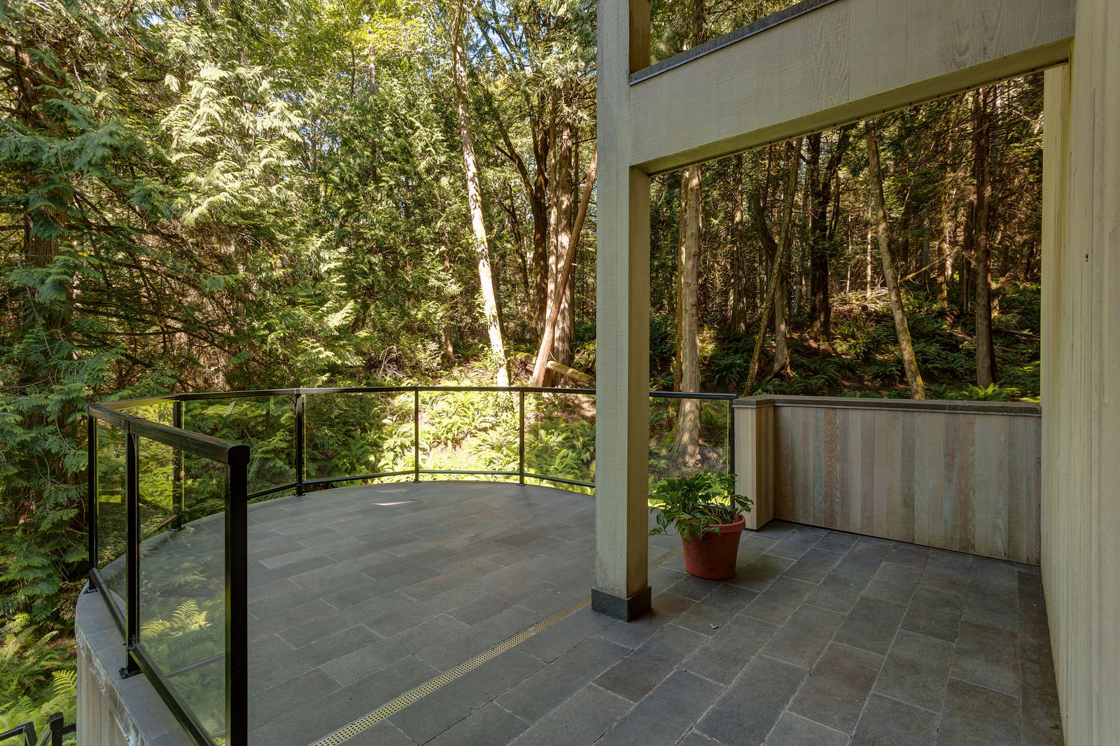 Dramatic, modern home inspired by Frank Lloyd Wright's Fallingwater on 11+ pristine acres. Enter thru the artistic copper front door to experience the harmoniously designed home with walls of glass overlooking the forest, ferns, creek, Puget Sound and the islands thru the trees. Unique, completely private retreat includes a main floor master suite with glass walls, fireplace and en-suite bath with a glass roof. Only minutes from all the activities that Fairhaven Village has to offer.