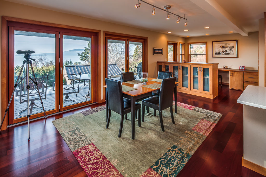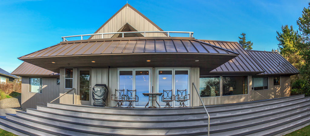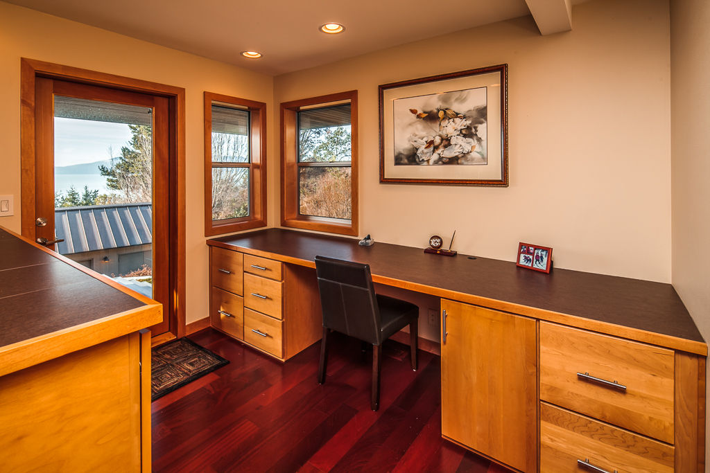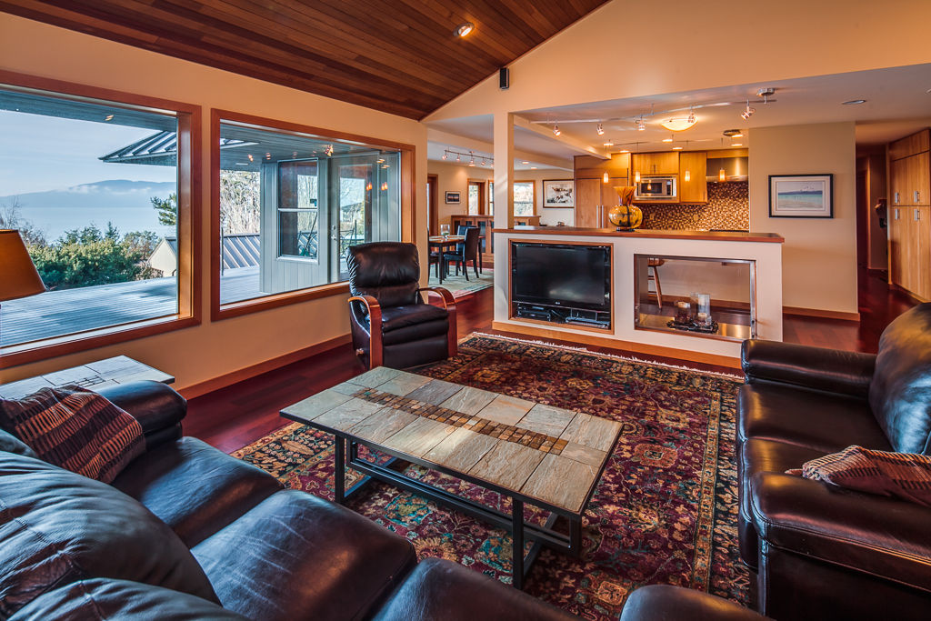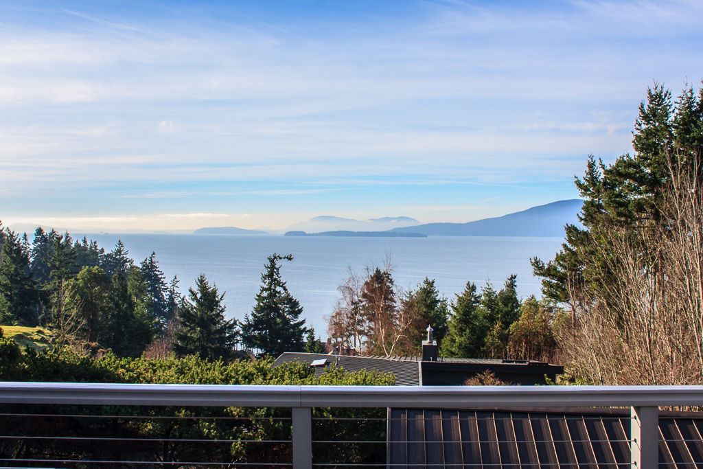 Amazing bay and island view from this custom-quality contemporary home. Located in a cul-de-sac of the desirable Edgemoor neighborhood, only minutes from historic Fairhaven Village. Custom features include: 2 master suites on main floor, “Nana Wall” doors for unobstructed views, a beautiful blend of mahogany floors and maple cabinets with high end appliances throughout. Steel siding and roof add to design but also make for minimal owner maintenance. Separate heated shop or office too!