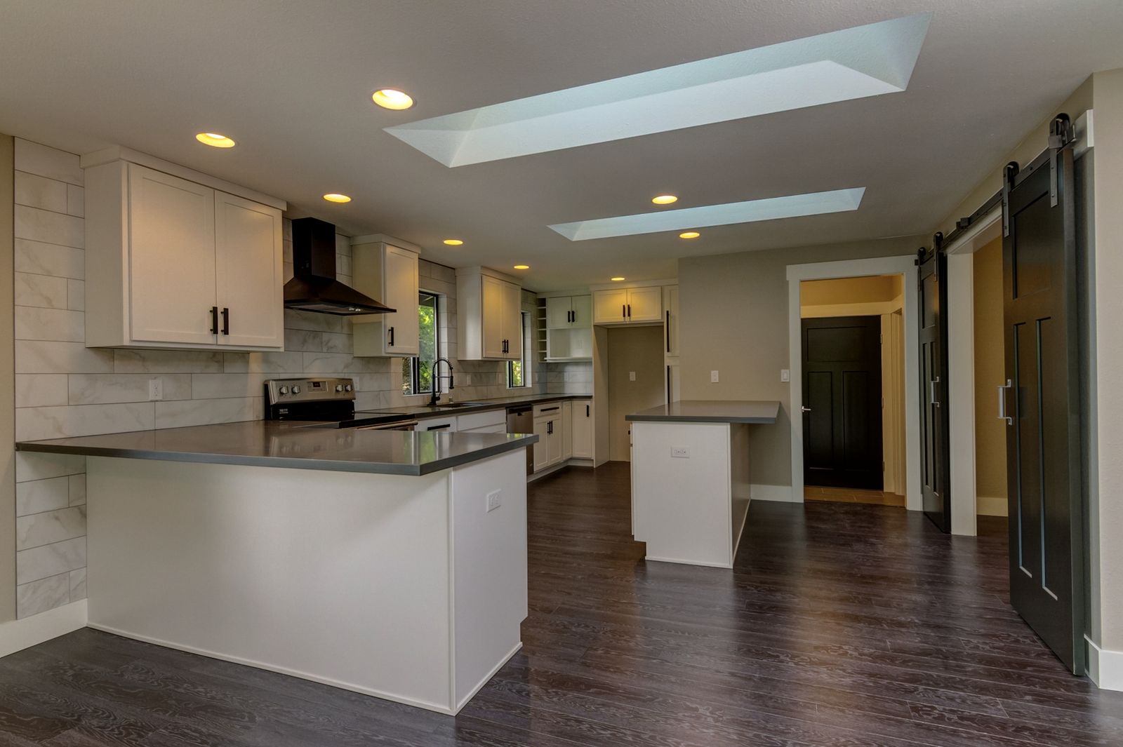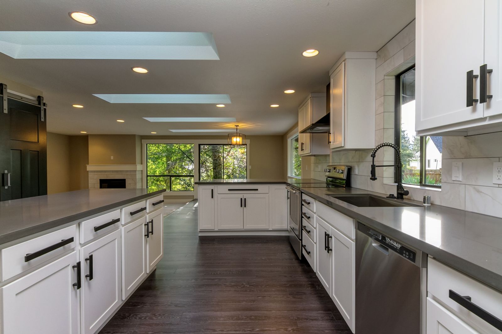 Completely remodeled Edgemoor one level home within walking distance to Fairhaven. Just completed: new paint, cabinets, appliances, countertops, doors, trim, flooring, carpet, tile, hardware, & much more. Designer touches throughout including extensive use of custom tile-work, quartz, chrome fixtures/hardware, barn door systems, and skylights set this home apart from the rest. All of this located on a sunny, corner lot with a level yard in one of Bellingham's most desirable neighborhoods.